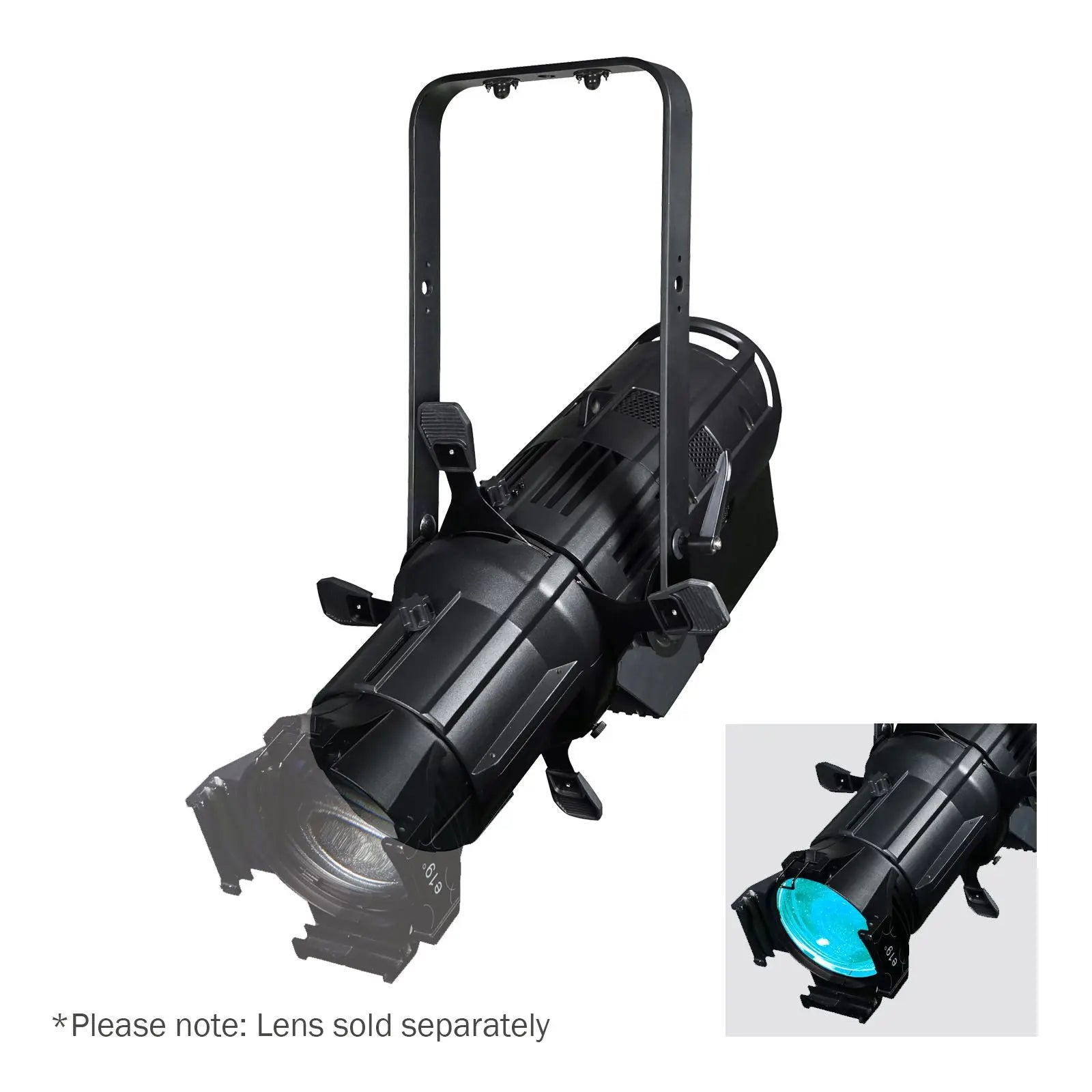 The Virtuoso 1000 HEX Profile features an advanced full colour LED system that outputs a flat and even field and is suitable for many applications. HSIC colour management allows you to create virtually any colour whilst the virtual colour wheel provides direct access to many colours along with a 1800K to 10000K colour temperature control. On board features include DMX RDM and adjustable PWM rate. Due to the design of the body many common and aftermarket lens tubes can fit directly onto the fixture allowing you to upgrade to LED without having to replace your existing lens tubes. Sold as the body only with optional lenses and accessories. Compatible with most industry standard lenses including Source 4. 2 year warranty 1 x 270W six-colour LED Array (RGBALC) Beam angle: 5°- 50° dependent on lens used 30105 Lux @ 2m (19° lens) 23075 Lux @ 2m (26° lens) 14005 Lux @ 2m (36° lens) 8393 Lux @ 2m (50° lens) 46519 Lux @ 2m (15-30° lens) (narrow) 16127 Lux @ 2m (15-30° lens) (wide) 20093 Lux @ 2m (25-50° lens) (narrow) 8165 Lux @ 2m (25-50° lens) (wide) CRI Ra: 95 CRI R9: 90 CQS: 95 TLCI: 80 Colour temperature: 1800K-10000K Refresh rate: 5 selectable presets between 1.2kHz-25kHz Beam framing shutters Instant fast focus mode DMX channels: 3/7/8/10/13 or 20 selectable RDM (Remote Device Management) 0 - 100% 8 or 16 bit dimming Variable strobe 4 dimming curves: Linear square law inverse square law and S-curve 4 button menu with LCD display PowerTwist TR1 input/output 5-Pin XLR input/output 3 selectable fan modes (live power and studio) Rear handle Quick release omega clamp included