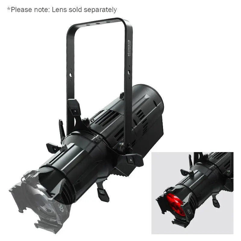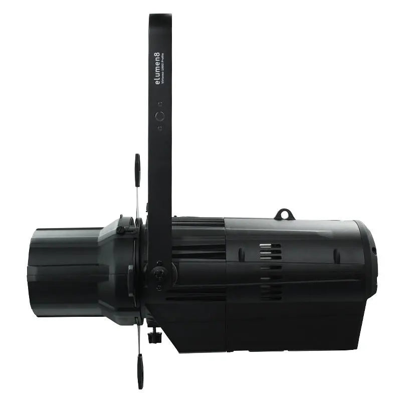 The Virtuoso 1000 RGBAL Profile features an advanced LED system that outputs a flat and even field and is suitable for many applications. HSIC colour management allows you to create virtually any colour whilst the virtual colour wheel provides direct access to many colours along with a 2700K to 8000K colour temperature control. On board features include DMX RDM and adjustable PWM rate. Due to the design of the body many common and aftermarket lens tubes can fit directly onto the fixture allowing you to upgrade to LED without having to replace your existing lens tubes. Sold as the body only with optional lenses and accessories. Compatible with most industry standard lenses including Source 4. 2 year warranty 1 x 250W five-colour LED Array (RGBAL) Beam angle: 5°- 50° dependent on lens used 23031 Lux @ 2m (full on 19° lens) 15200 Lux @ 2m (full on 26° lens) 10000 Lux @ 2m (full on 36° lens) 2589 Lux @ 2m (full on 50° lens) 26986 Lux @ 2m (full on 15-30° lens) (narrow) 12858 Lux @ 2m (full on 15-30° lens) (wide) 14620 Lux @ 2m (full on 25-50° lens) (narrow) 5250 Lux @ 2m (full on 25-50° lens) (wide) CRI ≥ 90 Colour temperature: 2700K-8000K Refresh rate: 600Hz 1.2kHz 2kHz 2.4kHz 6kHz or 25kHz selectable Beam framing shutters DMX channels: 3/6/8/8/10/12/17 or 18 selectable RDM (Remote Device Management) 0 - 100% 8 or 16 bit dimming Variable strobe 4 dimming curves: Linear square law inverse square law and S-curve 4 button menu with LCD display powerCON input/output 5-Pin XLR input/output 3-Pin XLR input/output 3 selectable fan modes (live power and studio) Rear handle