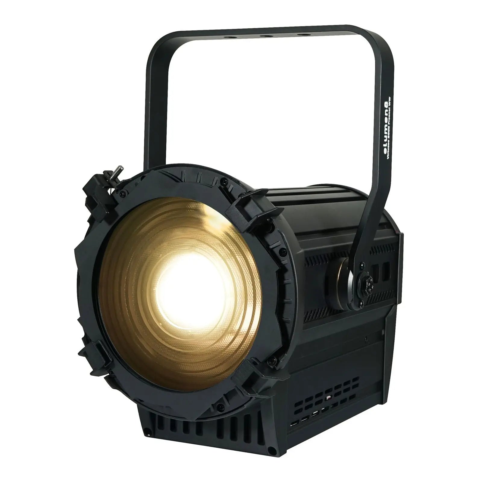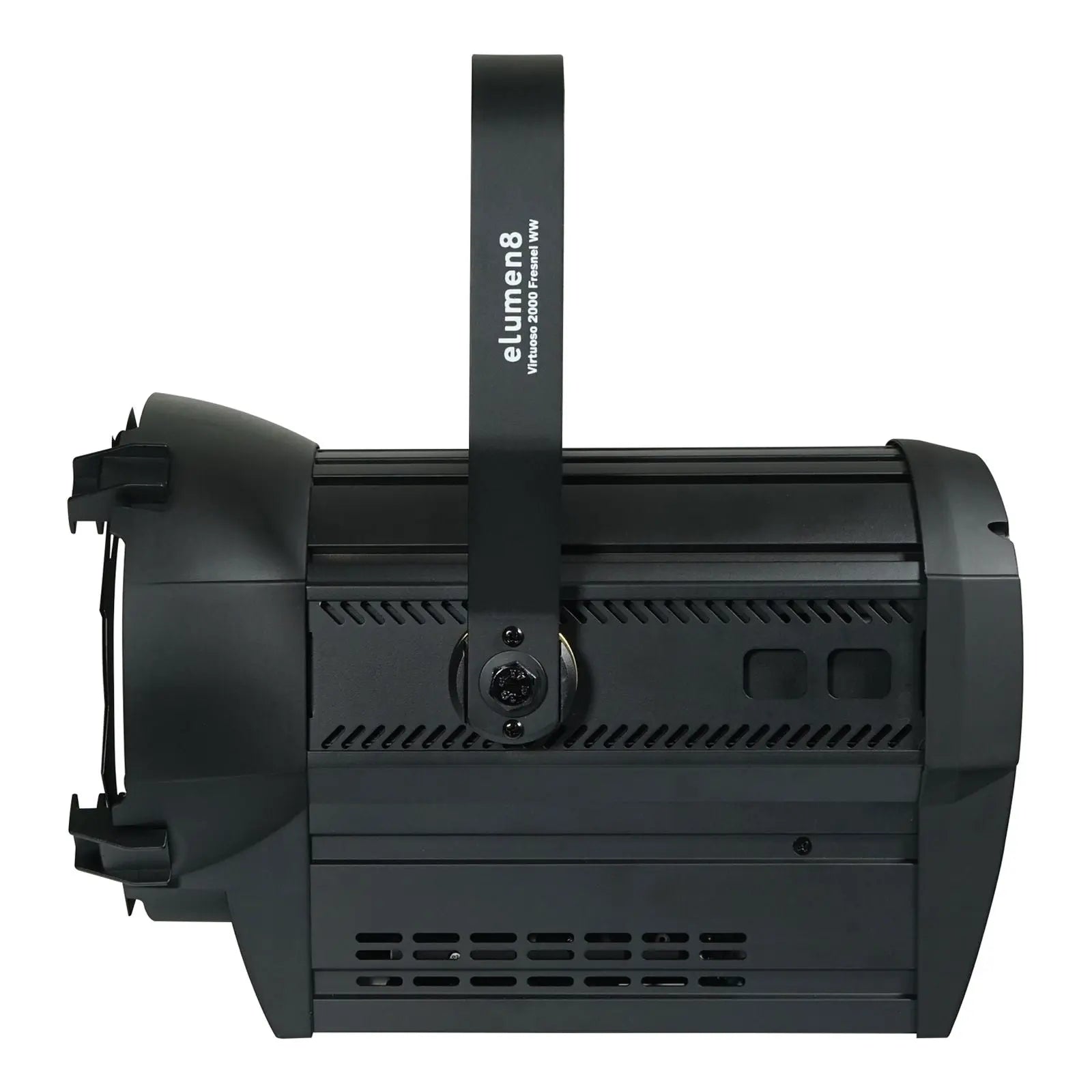 The Virtuoso 2000 Fresnel is a bright and compact lighting fixture featuring an advanced WW LED system which excels in delivering super smooth dimming and is suitable for multiple applications. On board features include DMX RDM and adjustable PWM rate. The fixture is enclosed in a compact robust chassis and features a motorised zoom with a 15° - 60° beam angle providing designers with remote adjustment for additional flexibility. 2 year warranty 1 x 220W warm white COB LED (3200K) Adjustable beam angle: 15°- 60° 15° - 13965 Lux @ 2m (full on) 60° - 2218 Lux @ 2m (full on) CRI: 96.1 Refresh rate: 600Hz 1.2kHz 2.4kHz 4kHz 6kHz or 25kHz selectable DMX channels: 1/2/3 or 5 selectable RDM (Remote Device Management) Can be used with a traditional dimmer pack Manual and master/slave modes 0 - 100% 8 or 16 bit dimming 4 dimming curves: Linear square law inverse square law and S-curve Variable strobe 4 button menu with LCD display PowerTwist TR1 input/output 5-Pin XLR input/output 3-Pin XLR input/output 3 selectable fan modes (live power and studio) Rear handle Filter frame included