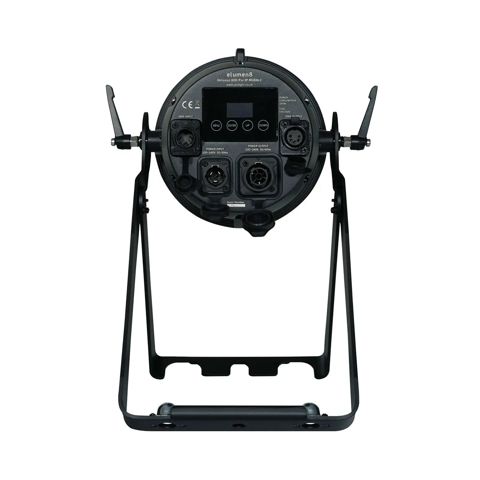 The Virtuoso 800 RGBALC is a powerful 150W six-colour COB LED (RGBALC) IP rated par perfect for both indoor and outdoor applications. The fixture offers all the features you would expect from the Virtuoso range including a high CRI of 95 for accurate colour rendering variable colour temperature presets selectable refresh rates RDM and 4 selectable fan modes. The robust IP65 rated housing features quick-release omega clamp Seetronic PowerTwist TR1 and 5-Pin DMX inputs and outputs to facilitate a problem-free connection. 2 year warranty 1 x 150W six-colour COB LED (RGBALC) Beam angle: 16° 12237 Lux @ 2m (full on) Refresh rate: 600Hz 1.2kHz 2kHz 4kHz 6kHz or 25kHz selectable Colour temperature: 1800K-8000K DMX channels: 3/6/9/13 or 20 selectable RDM (Remote Device Management) Auto static colour colour preset and master/slave modes CRI Ra: 95 0 - 100% 8 or 16 bit dimming Variable strobe Quick release omega clamp included 4 button menu with OLED display PowerTwist TR1 input/output IP rated 5-Pin XLR input/output 4 selectable fan modes Optional filter frame