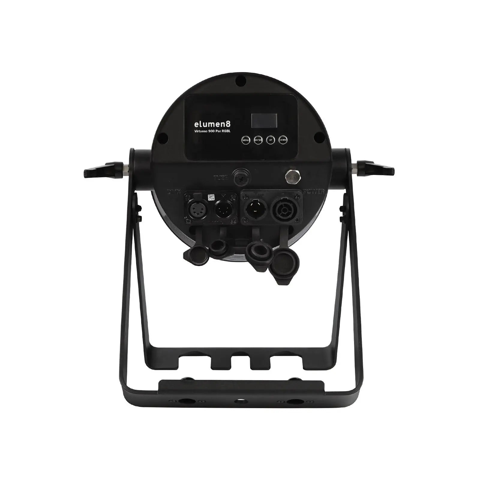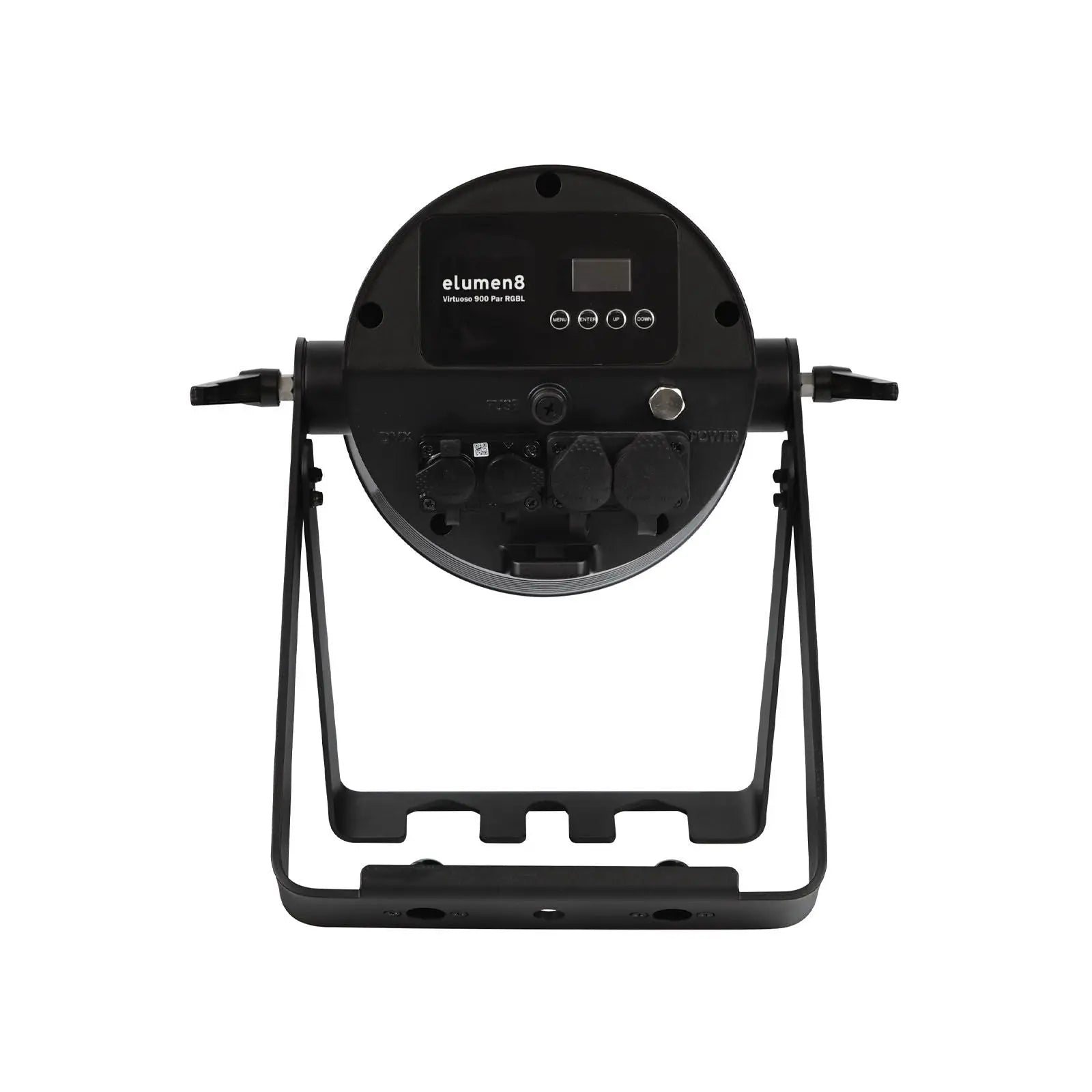 The Elumen8 Virtuoso 900 RGBL is a powerful 200W quad-colour COB LED (RGBL) IP rated par perfect for both indoor and outdoor applications. A clever twist to this fixture is an adjustable silent motor-free 15-45 degree beam angle via the variable frosted glass. The fixture offers all the features you would expect from the Virtuoso range including a high CRI of 85 for accurate colour rendering a dim to warm function variable colour temperature presets selectable refresh rates RDM and 3 selectable fan modes. The robust IP65 rated housing features quick-release omega clamp Seetronic PowerTwist TR1 and 5-Pin DMX inputs and outputs to facilitate a problem-free connection. 2 year warranty 1 x 200W quad-colour COB LED (RGBL) Beam angle: 15°- 45° via intelligent glass 15° - 12500 Lux @ 2m 45° - 1113 Lux @ 2m Refresh rate: 1.2kHz–25kHz (5 presets) Colour temperature: 1800K–10000K DMX channels: 4/7/8/11/12/17 selectable RDM (Remote Device Management) Auto static colour preset & primary/secondary modes CRI: ≥85 0–100% 8 or 16-bit dimming Variable strobe 4 dimming curves: Linear square law inverse square law S-curve Dim to warm function Quick release omega clamp included 4 button menu with OLED display PowerTwist TR1 input/output IP rated 5-Pin XLR input/output 3 selectable fan modes