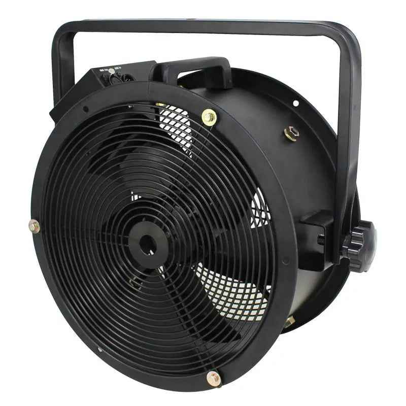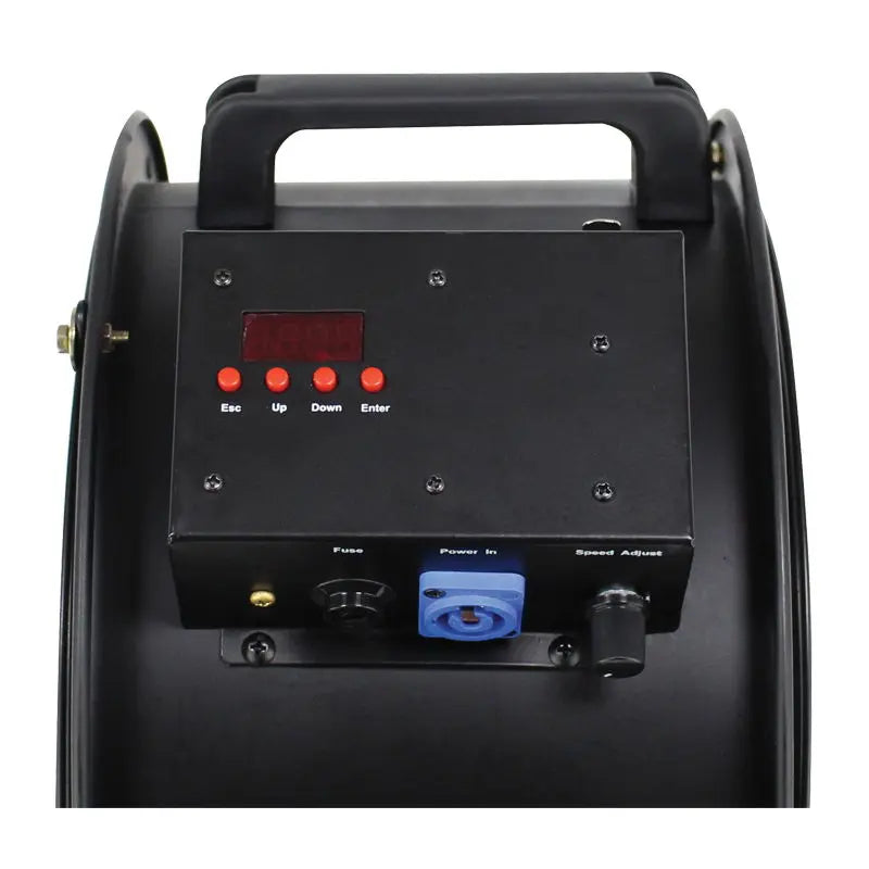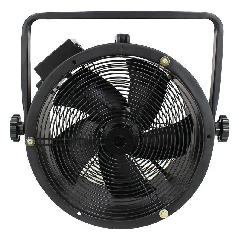 The Elumen8 Windstorm is a high-output wind machine ideal for stage theatre club and event use. Featuring powerful airflow with DMX control adjustable speed and robust construction it’s perfect for creating atmospheric wind effects in professional environments. Fan diameter: 310mm Max. air flow 55m³/min Noise: 83dB @ 2m (full output) DMX channels: 1 Manual mode adjustable in 1% increments via menu system or rotary control Tilt: 360° Brackets allow for multiple rigging or floor standing applications 4 push button menu with LED display PowerCON input 5-Pin XLR input/output
