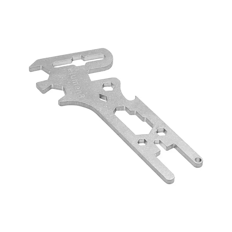 With 11 tools in 1 this robust stainless steel wingnut spanner multi-tool is a must have for riggers! It has been designed to cover the needs of anyone working with stage lighting equipment specifically for securing wingnuts and associated clamps yet will be useful for the professional rigging industry as a whole. 11-in-1 multi-tool ideal for the professional rigging industry Allows the user to tighten and loosen nuts with ease Tools included: 7mm (M4) 8mm (M5) 10mm (M6) 13mm (M8) 17mm (M10) 19mm (M12) nut tools 5mm eyelet for safety lanyard Wingnut tool Omega clamp tool T-knob tool Bottle opener
