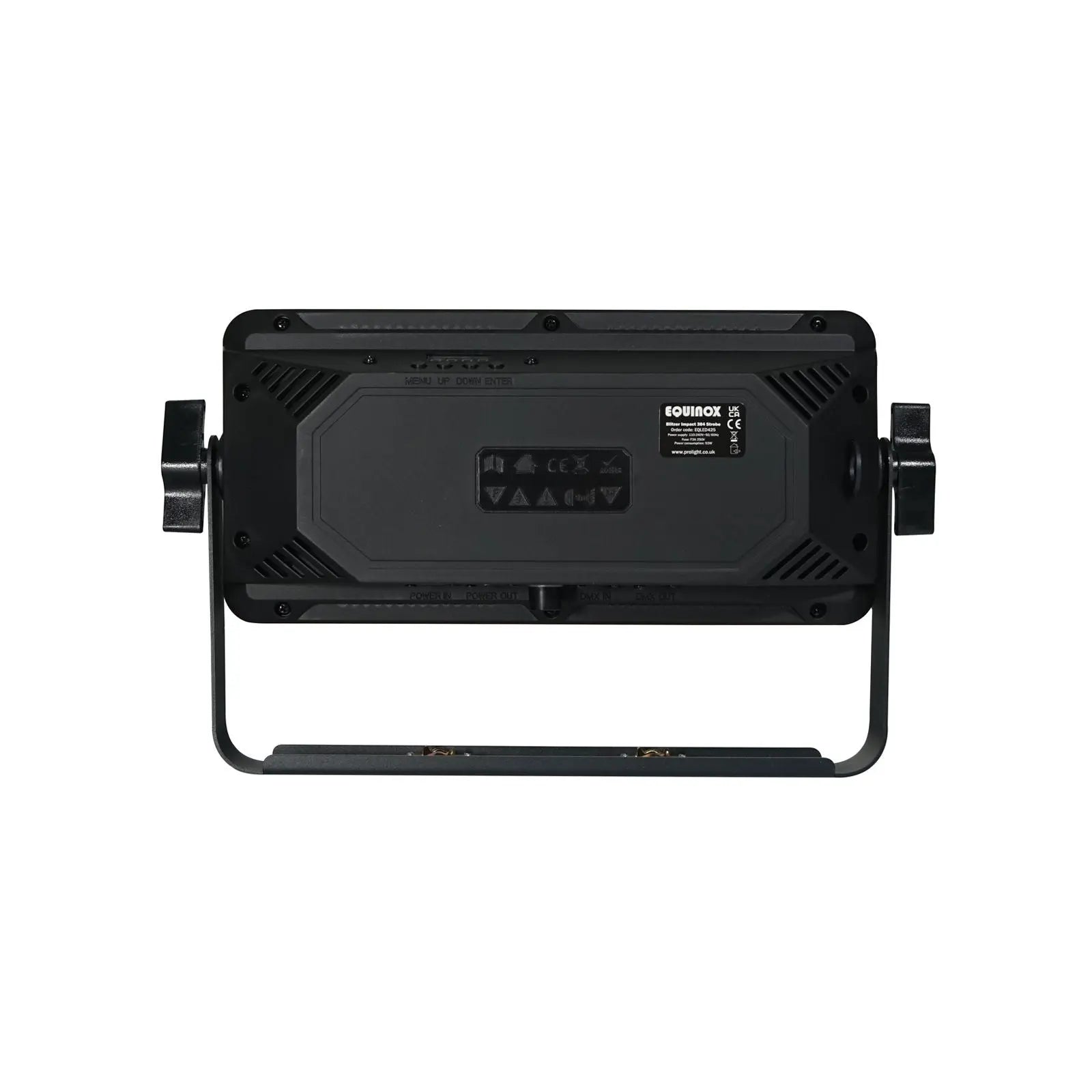 The Blitzer Impact 384 is a creative multi-function strobe loaded with 256 SMD 5050 RGB LEDs divided into 32 individually controlled segments. In addition there are 128 SMD 5730 white LEDs divided into 16 segments mounted horizontally across the centre of the fixture creating a traditional strobe effect. Multiple chases across the RGB zones produce stunning effects when combined with the white LEDs making it ideal for stages and events wanting to produce eye-candy effects from a compact fixture. 256 tri-colour SMD 5050 LEDs (RGB) plus 128 white 5730 LEDs (CW) Viewable angle: 135° Refresh rate: 10kHz DMX channels: 6/9/64 or 112 selectable Static colour auto sound active and master/slave modes plus built-in programs 0-100% dimming Variable strobe Bracket allows for multiple rigging or floor standing applications Quick release omega clamp included 4 button menu with LED display powerCON input/output 3-Pin XLR input/output Fan cooled