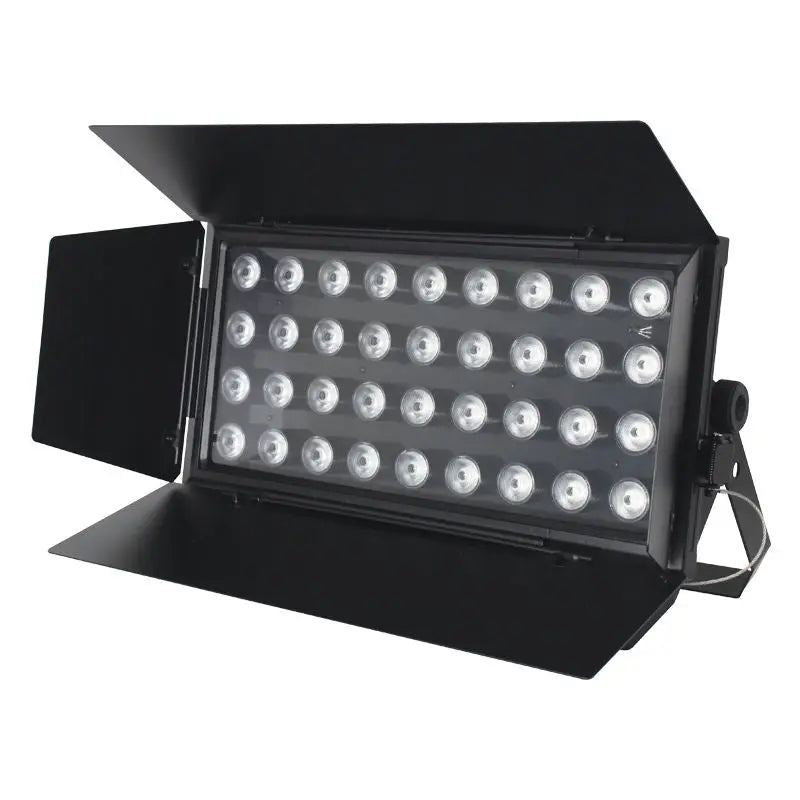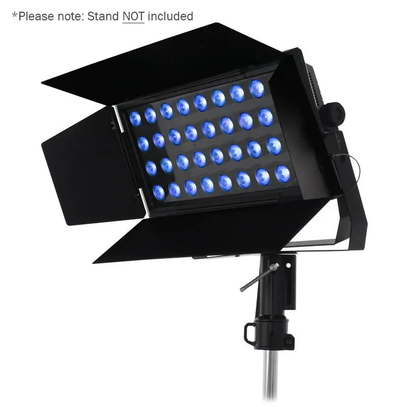 The Cabaret Colour HEX has been designed for entertainers on the go. The 36 six-colour LEDs are housed in an ultra slim and lightweight housing with an adjustable bracket which can be used for hanging stand mount and floor applications. A 40° beam angle easily covers wide areas with intense colours whilst the adjustable barn doors help direct and focus the light. On board control options include auto sound active and DMX. 36 x 8W six-colour LEDs (RGBWAUV) Beam angle: 40° 7428 Lux @ 2m Refresh rate: 11kHz DMX channels: 3/3/6/8 or 11 selectable Static colour colour mix colour change colour fade sound active and master/slave modes plus built-in programs 0 - 100% dimming Variable strobe Bracket allows for multiple rigging or floor standing applications 4 button menu with LED display powerCON input 3-Pin XLR input/output Fan cooled Barn doors included