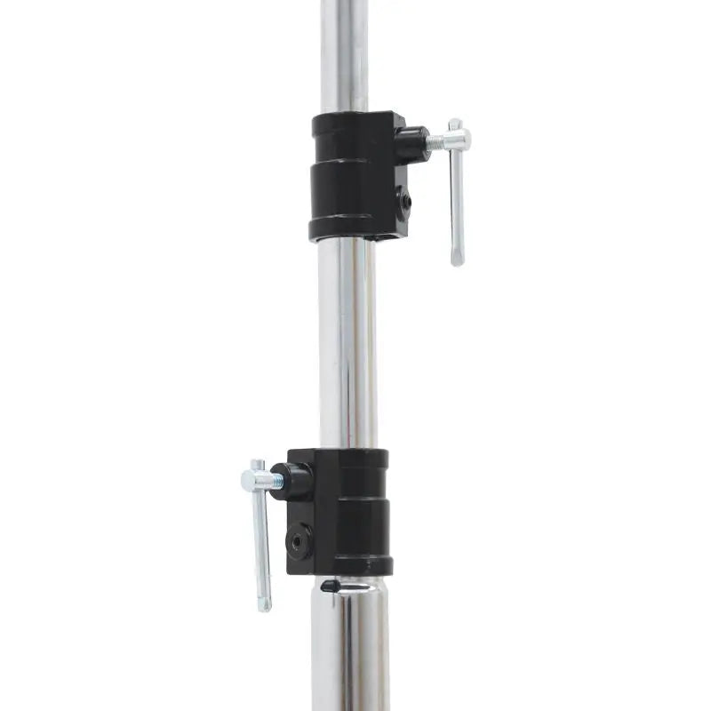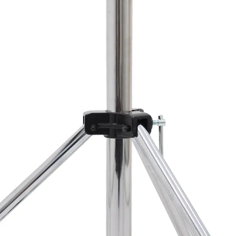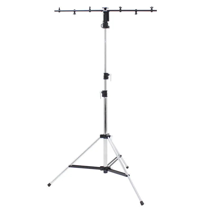 This heavy duty 3 section lighting stand with T-bar extends to 3m high yet also folds down to a compact and portable size. Each telescopic section is fitted with a spring damper. Protection shims are built into each of the cast sections to prevent over tightening and damage. Accepts 16mm or 28mm spigots to allow for various adaptors to be used and comes supplied with a T bar. Polished chrome finish All metal construction Supplied with T-bar and M10 bolts Spring damper in base Accepts 16mm or 28mm spigots