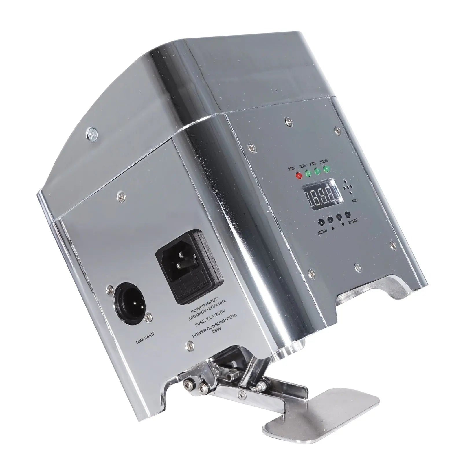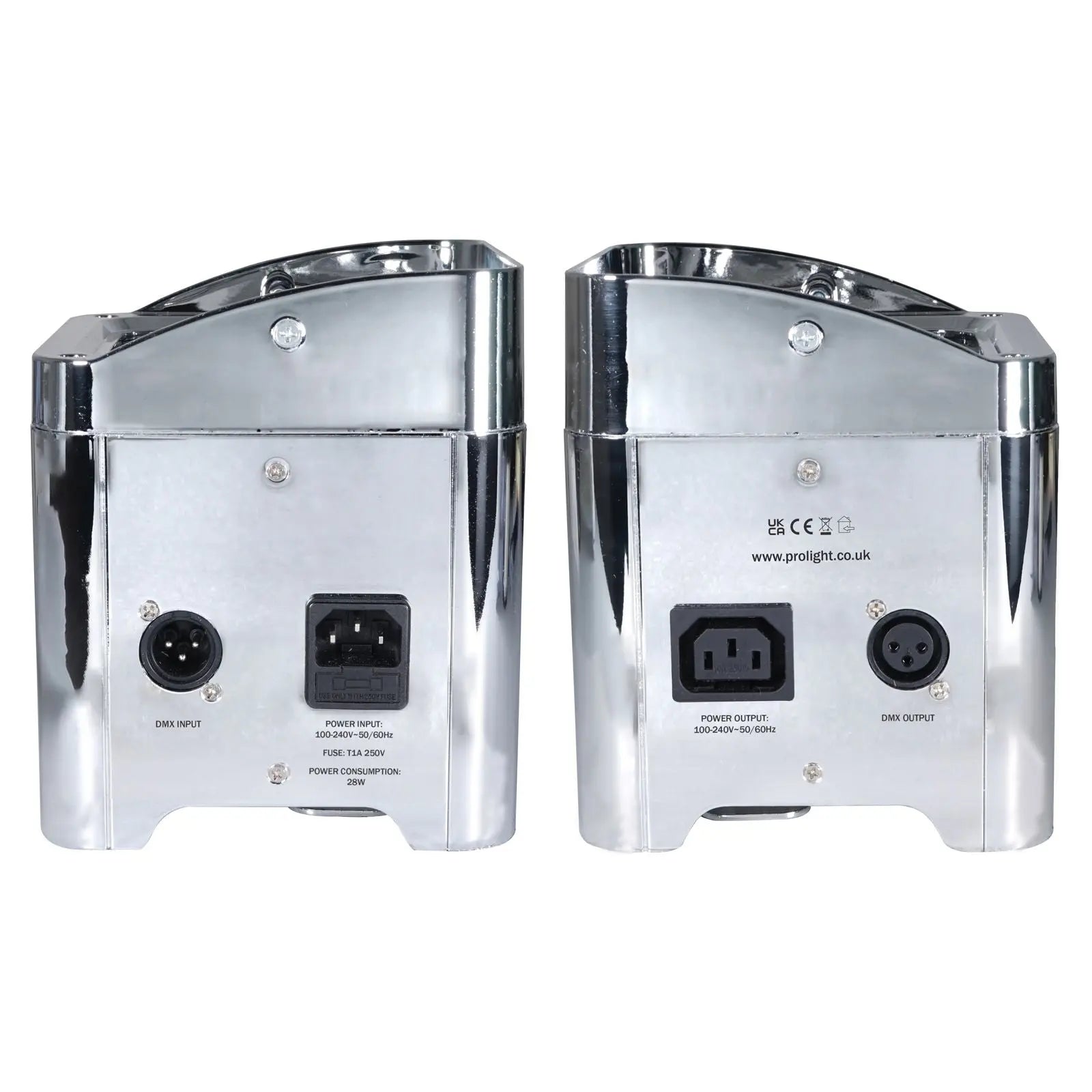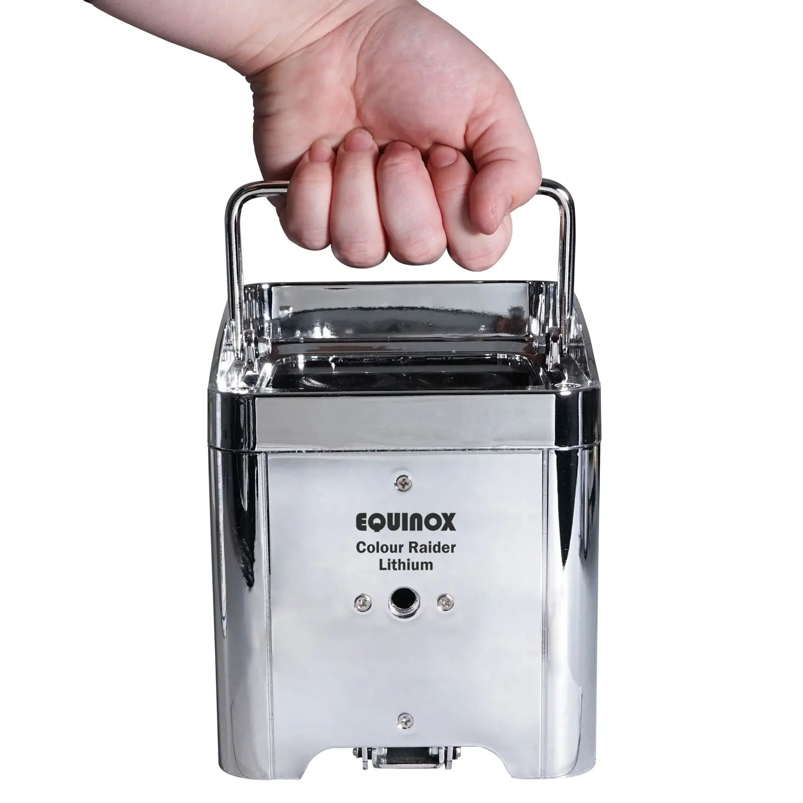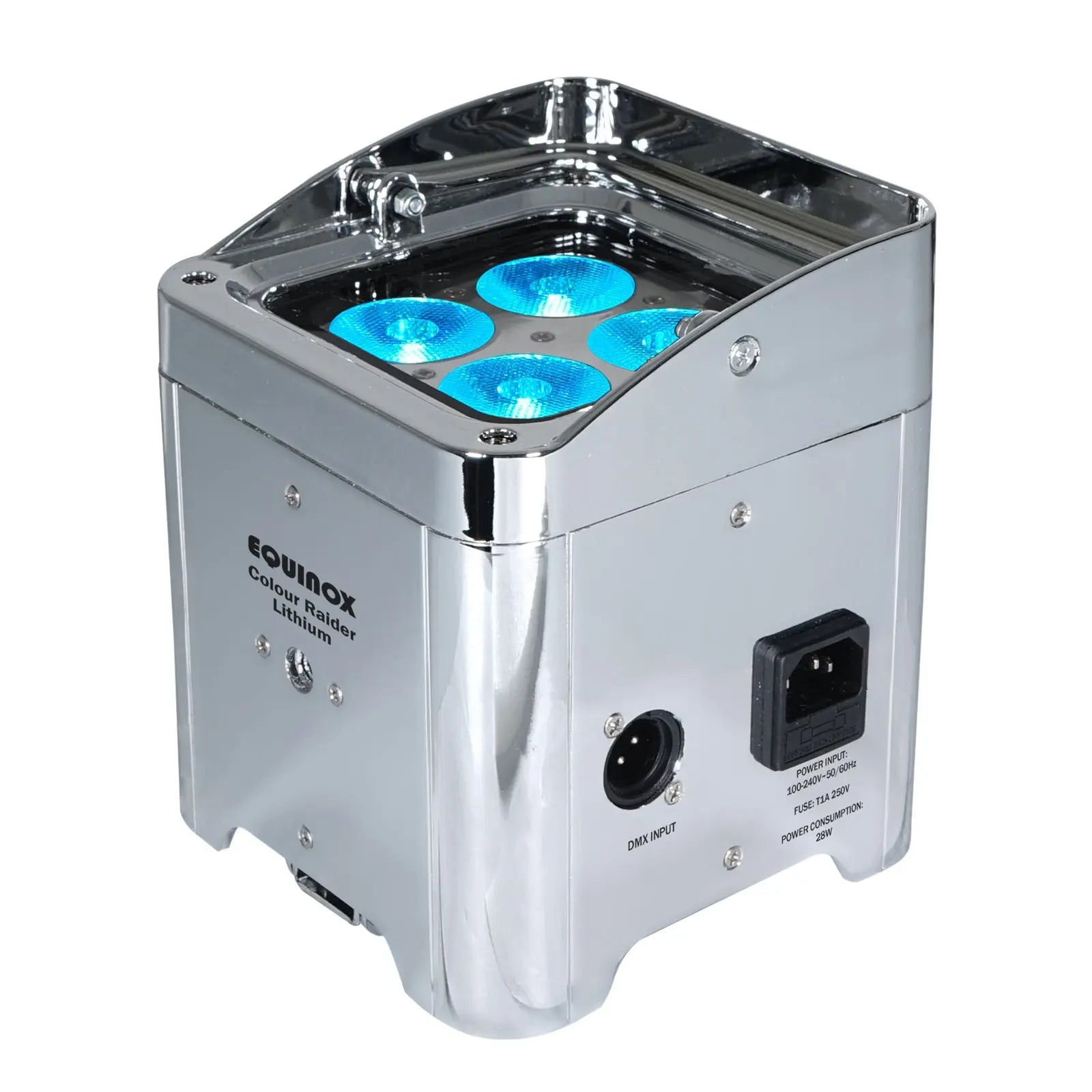 Versatile and lightweight the Colour Raider Lithium pack includes 4 portable battery powered uplighters ideal for uplighting walls features and facades. The housing design incorporates a snoot to stop glare and a sit flat carry handle. The internal lithium battery has autonomy of up to 12 hours in single colour mode and up to 8 hours of colour fading and chases while the charging time is only 5 hours. The light source is composed of 4 x 6W quad-colour RGBW LEDs and the extractable foot allows you to adjust the tilt angle. The on-board wireless DMX transceiver makes for a truly cable free operation and is W-DMX compatible. 4 x 6W quad-colour LEDs (RGBW) Beam angle: 25° 819 Lux @ 2m (full on) DMX channels: 2/3/4/4 or 8 selectable Wireless control (W-DMX Sweden compatible transceiver) Static colour colour change colour fade auto run sound active and master/slave mode 0 - 100% dimming Variable strobe M10 rigging point for clamp Adjustable foot support for angled floor standing applications (up to 25°) Carry handle for transportation 4 button menu with LED display Rechargeable battery for wireless applications Maximum run time: up to 12 hours (single colour) 8 hours (colour change/fade) 4 hours (full on) max. run times based on lowest brightness setting Charging time: 5 hours (max.) IEC power input/output 3-Pin XLR input/output Convection cooled Supplied with IR remote
