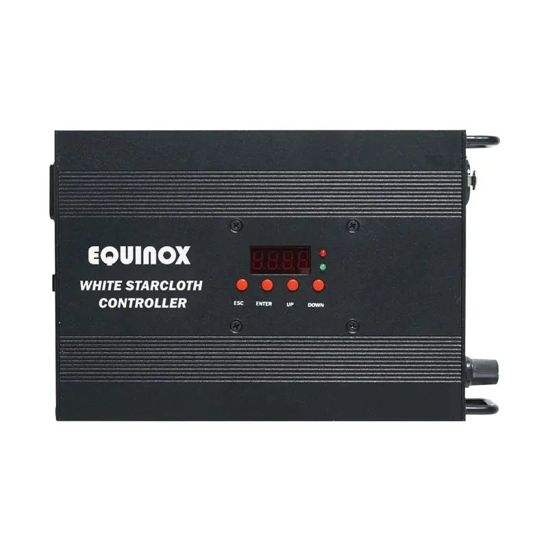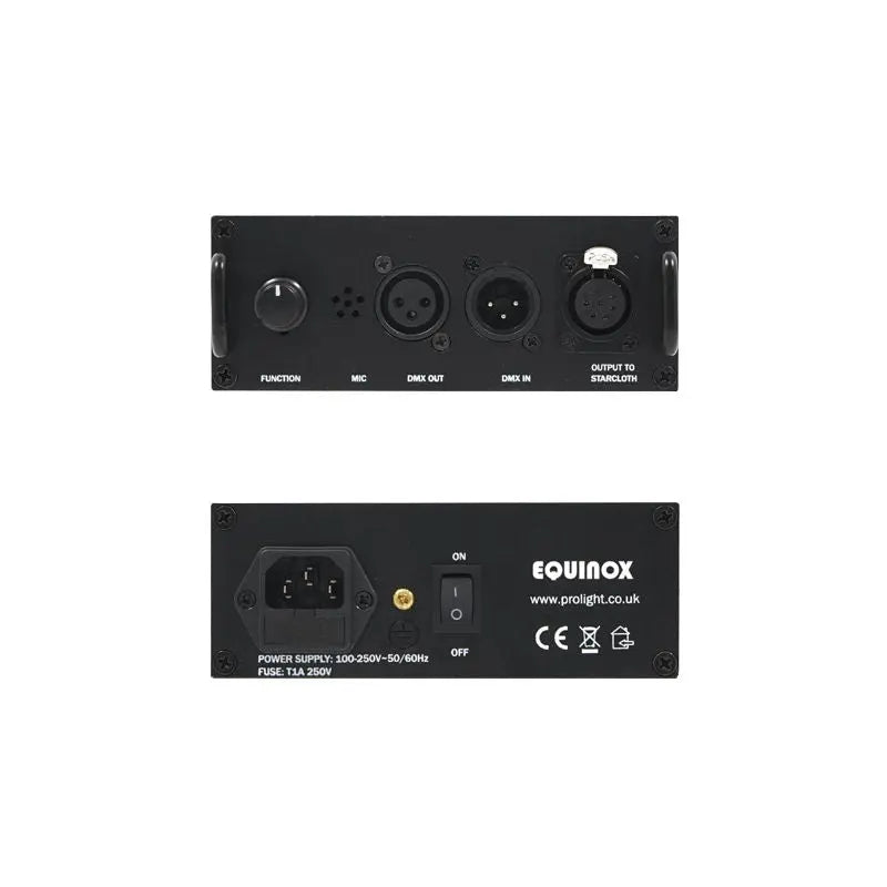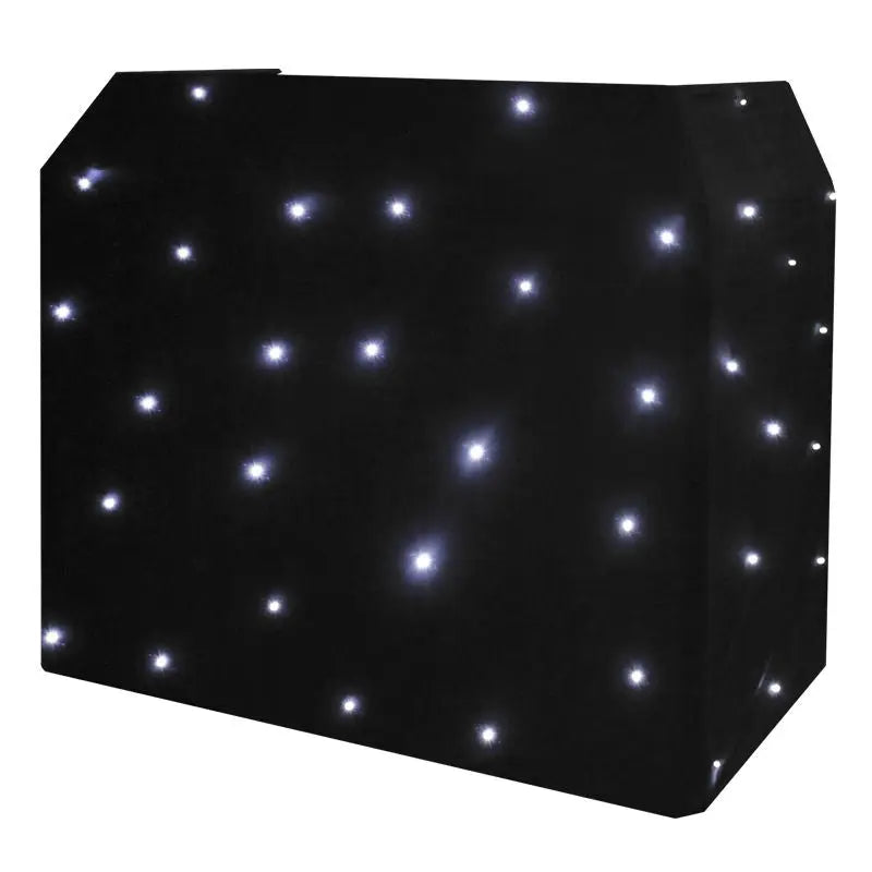 Upgrade your Equinox DJ Booth with this black starcloth featuring 72 white LEDs and an advanced DMX controller. Additionally you can create a white starcloth effect when combining the white lycra supplied with the EQLED12P and this black starcloth. Cloth: 72 x 5mm white LEDs Fast fixx™ velcro tabs Low reflection fire retardant material Includes an advanced DMX controller Carry bag included Controller: DMX channels: 5 Sound active auto run and auto fade modes IEC power input 3-Pin XLR input/output 6-Pin XLR output to starcloth Pin configuration: 1 - White 2 - Yellow 3 - Red 4 - Green 5 - Blue