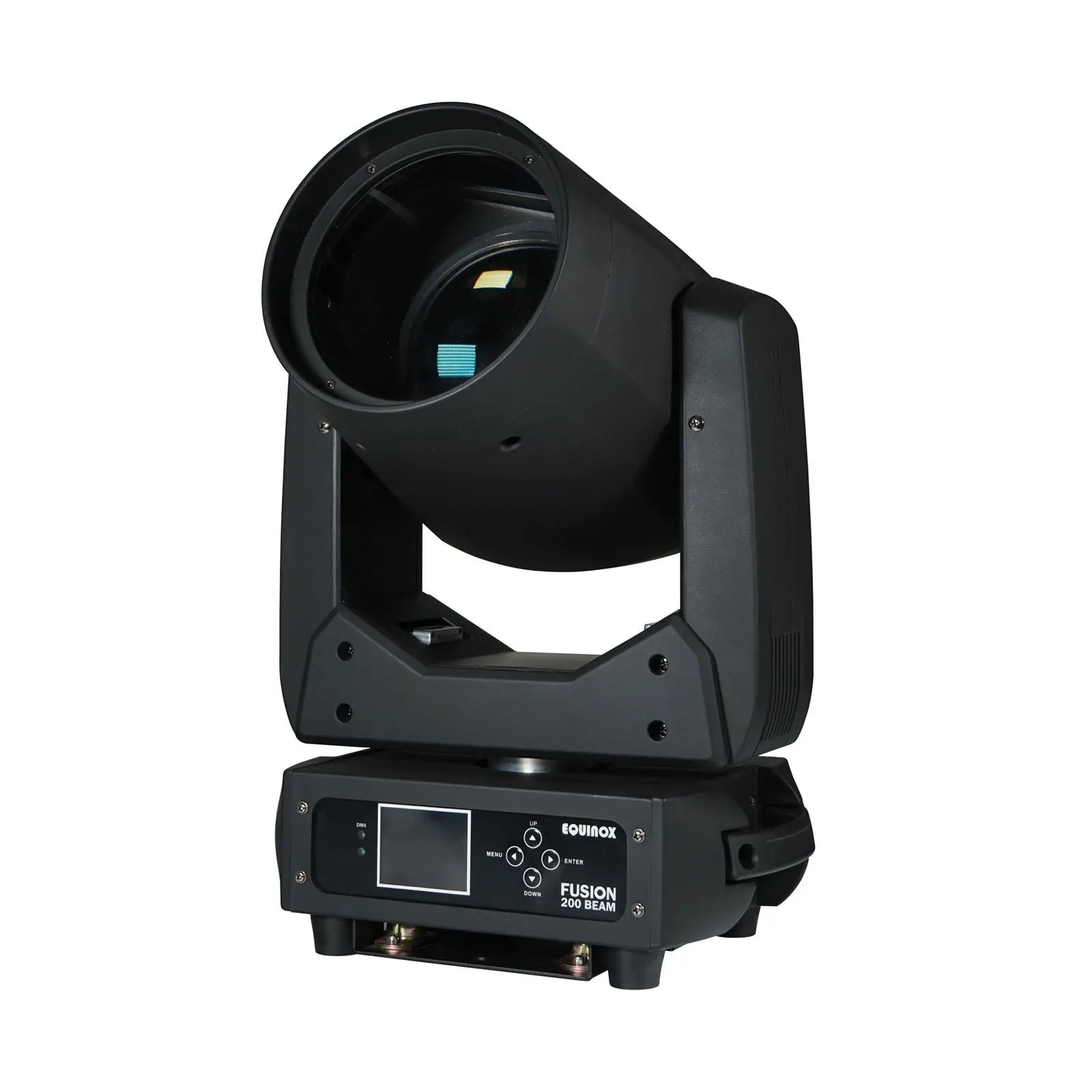 The Fusion 200 Beam features a single 100W LED and produces stunning light shows from its tight 2.5 degree beam. Featuring 11 colours (plus open) and 13 static gobos (plus open) paired with motorised focus allows users to create sharp well defined beams over long distances. Two bi-directional prisms (8 facet circular and 6 facet linear) allow for multi beam effects whilst a frost filter and 6 colour rainbow wheel further bolster the fixtures comprehensive features. An on-board 4 button menu allows for easy access to the functions including DMX auto sound active and master/slave modes. 1 x 100W white LED (8000K) Beam angle: 2.5° 132159 Lux @ 2m Refresh rate: 4.4kHz Motorised focus 8 facet circular rotating prism plus 6 facet linear rotating prism Frost filter (19°) Gobo wheel: 11 static gobos + open Colour wheel: 13 colours + open 6 colour rainbow effect wheel DMX channels: 2/15 or 19 selectable Auto sound active manual control and master/slave modes Forward facing show mode Pan/tilt auto correction 16-Bit pan/tilt positioning Pan: 540° Tilt: 270° 0-100% dimming Variable strobe Quick release omega clamps included Square hole spacing on omega clamp receivers allows for clamps to be mounted in all orientations 4 button menu with 2.6” LCD display powerCON input/output 3-Pin XLR input/output Fan cooled