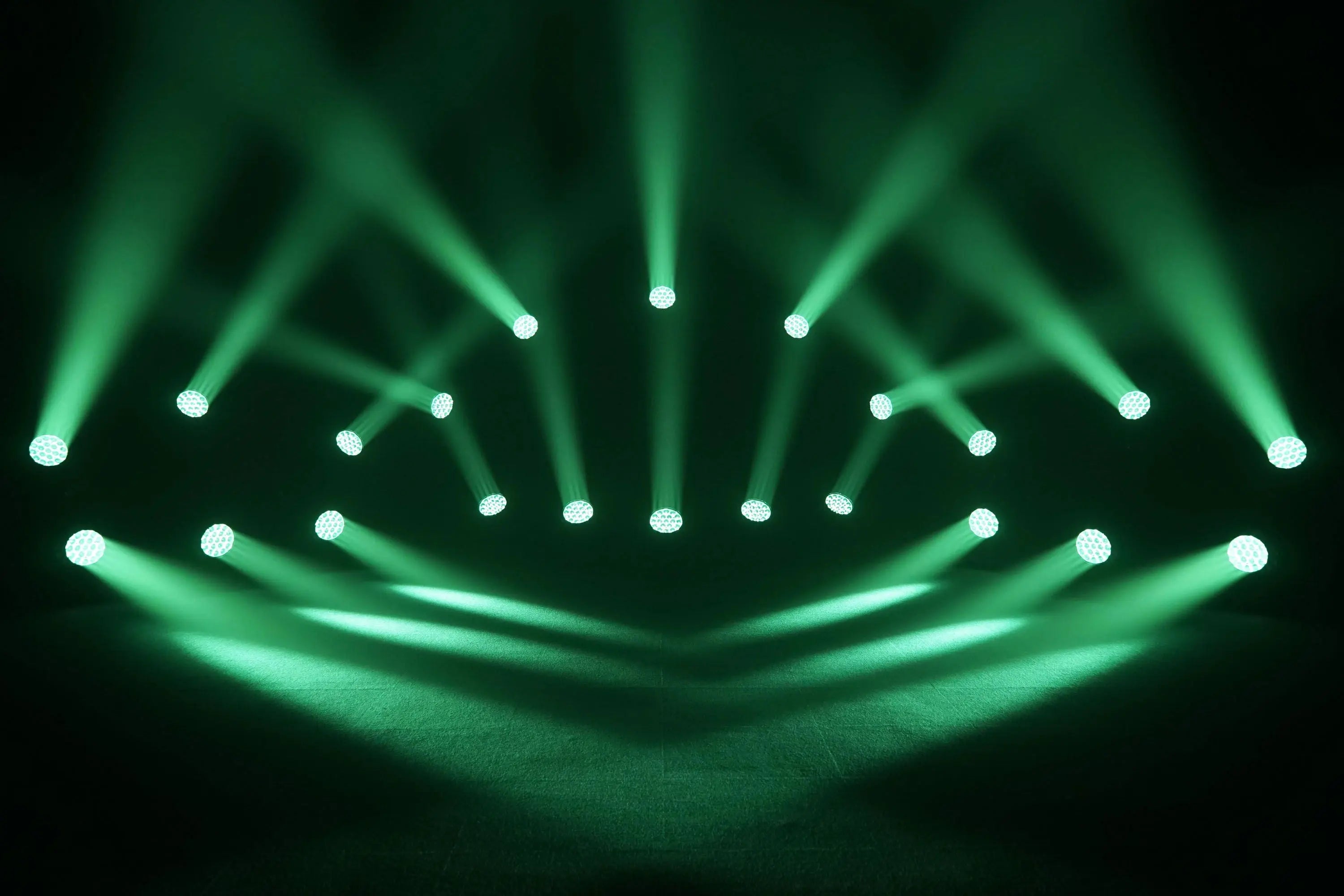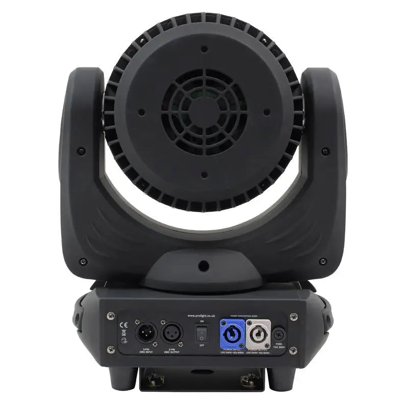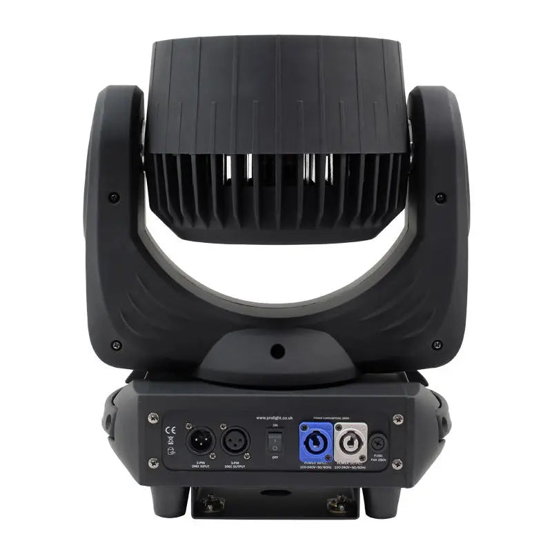 19 x 12W quad-colour LEDs (RGBW) Adjustable beam angle: 6°- 50° 6° - 40098 Lux @ 2m (full on) 50° - 6316 Lux @ 2m (full on) Refresh rate: 650Hz 1.5kHz 3.6kHz 12kHz or 25kHz selectable Motorised zoom Pixel zone mapping DMX channels: 2/8/17 or 25 selectable Auto sound active and master/slave modes Forward facing show modes Pan/tilt auto correction 16-Bit pan/tilt positioning Pan: 540° Tilt: 270° 0 - 100% dimming Variable strobe 4 dimming curves: Linear square law inverse square law and S-curve Supplied with quick release omega clamps Square hole spacing on omega clamp receivers allows for clamps to be mounted in all orientations 4 button menu with LCD display PowerTwist input/output 3-Pin XLR input/output Temperature controlled fans