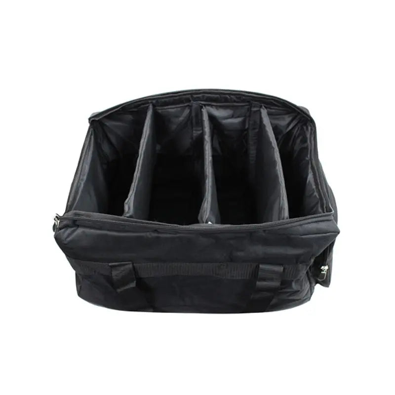 Our quality affordable padded carry bags come in a variety of sizes and styles some even have multiple compartments with movable and removable dividers making them ideal for many lighting fixtures. The bags protect the equipment inside while helping reduce the damage to vehicles and venues caused by hard flight cases. 4 compartments 3 removable dividers Ideal for slimline pars Suitable for the following products: 2 x EQLED372 LEDJ253 LEDJ254 LEDJ255 LEDJ85 EQLED131 EQLED088 A variety of other brand products will also fit. See Resources tab for a selection of compatible products.