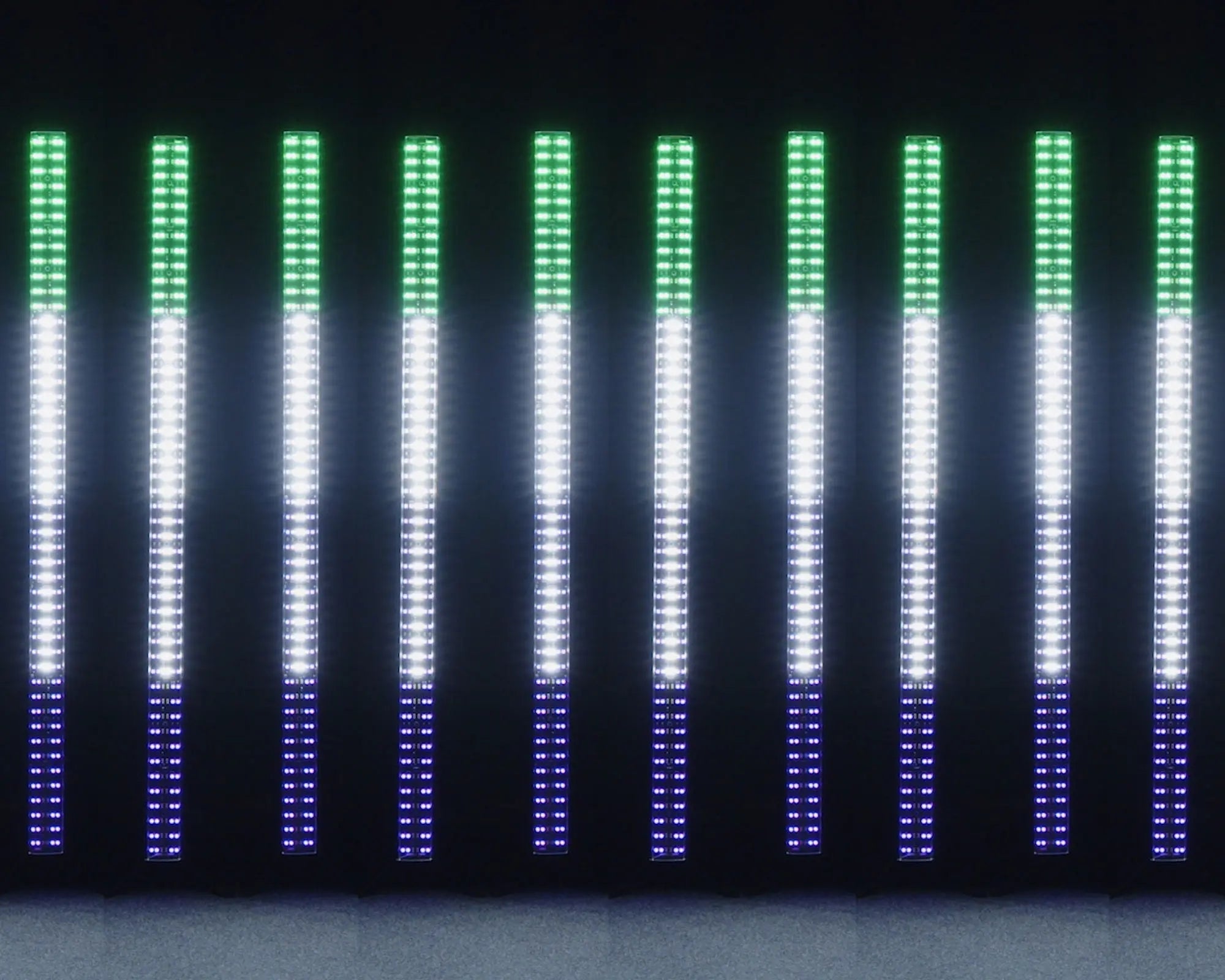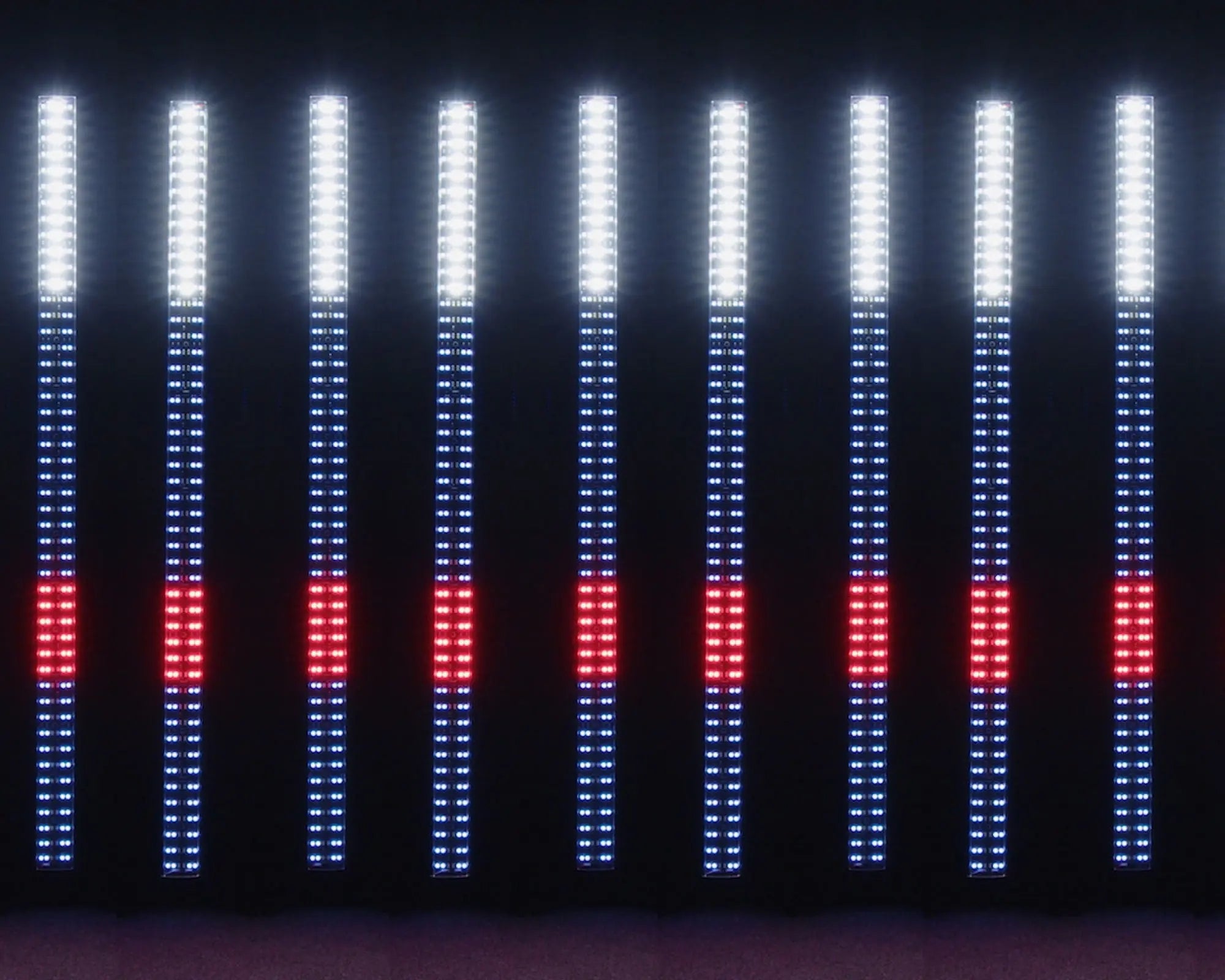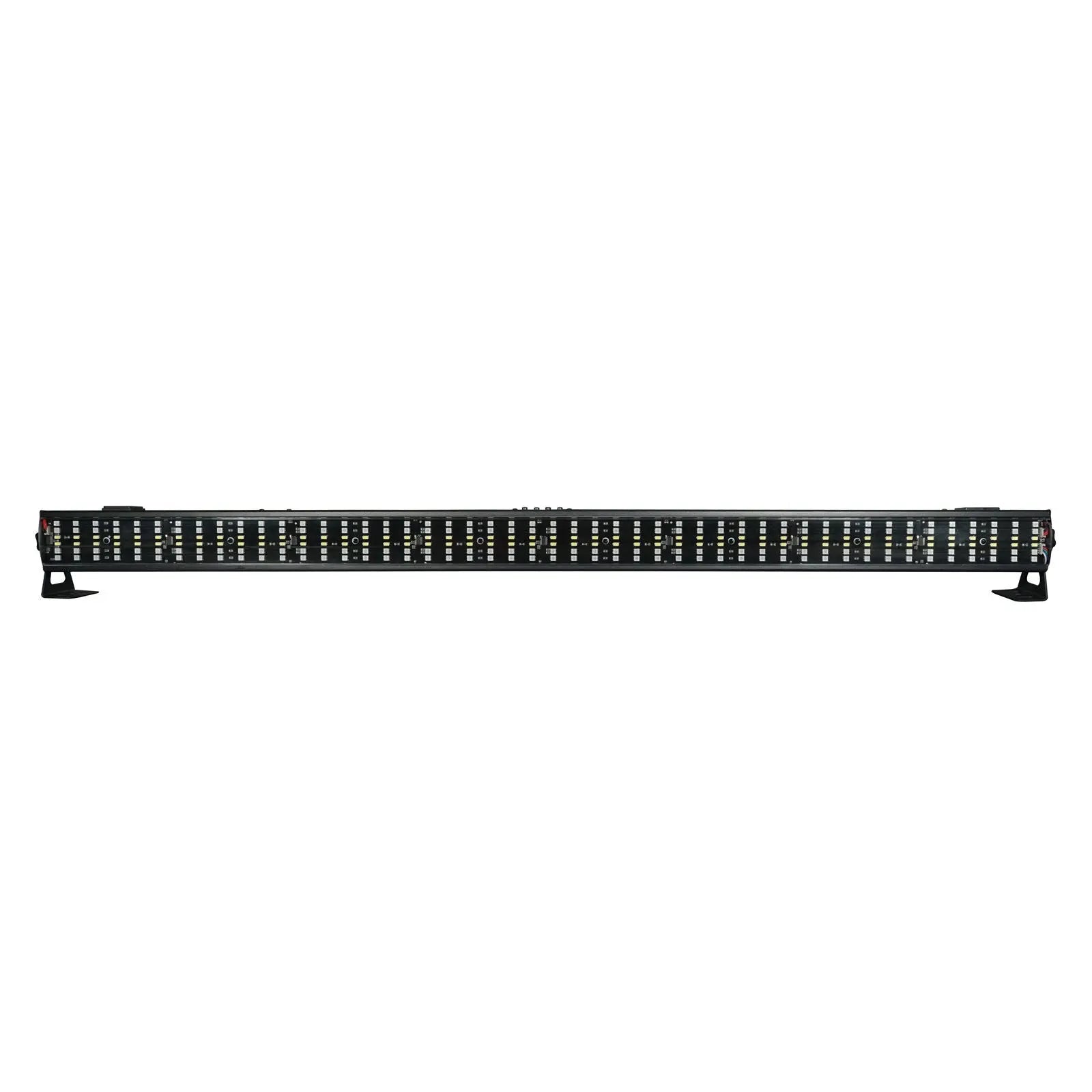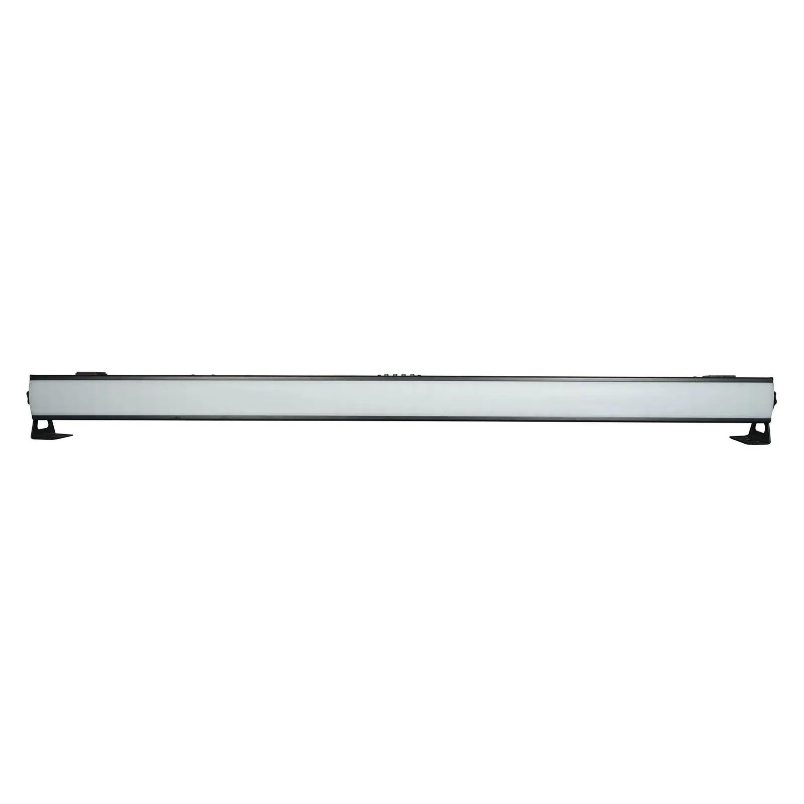 The Spectra Strobe Batten contains 192 SMD 5050 RGB LEDs divided into 16 segments plus a central strip of 96 white SMD 5630 LEDs. They feature a wide 135° viewing angle and milky frost effect front screen. A clear front screen is also included to further expand the versatility of this fixture. Onboard features allow the user to create soft washes from its rich colour palette as well as dynamic strobe effects. A number of chase programs are included and can be selected by the control panel along with speed and variable strobe. 192 tri-colour SMD 5050 LEDs (RGB) plus 96 white SMD 5630 LEDs (CW) Viewing angle: 135° Refresh rate: 10kHz DMX channels: 6/9/12/32 or 64 selectable Static colour auto sound active and master/slave modes plus built-in programs 0-100% dimming Variable strobe Bracket allows for multiple rigging or floor standing applications 4 button menu with LED display IEC power input/output 3-Pin XLR input/output Convection cooled