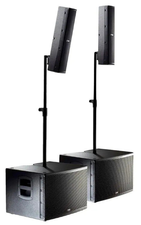 A bi-amplified design, the system comprises a long excursion 12” bass reflex subwoofer and a passive mounted satellite, linked via a Neutrik SPEAKON connector and equipped with six full-range neodymium 3” drivers. Onboard the subwoofer is a Class-D, two channel amplifier, complete with switch-mode power supply, delivering 600W RMS to the subwoofer and 400W RMS to the satellite, both of which are housed in birch plywood enclosures.For ease of use, a storage compartment is provided within the subwoofer enclosure to securely house both the satellite speaker and its supplied mounting pole for storage and transport. A dedicated locking system holds all of the equipment in place.