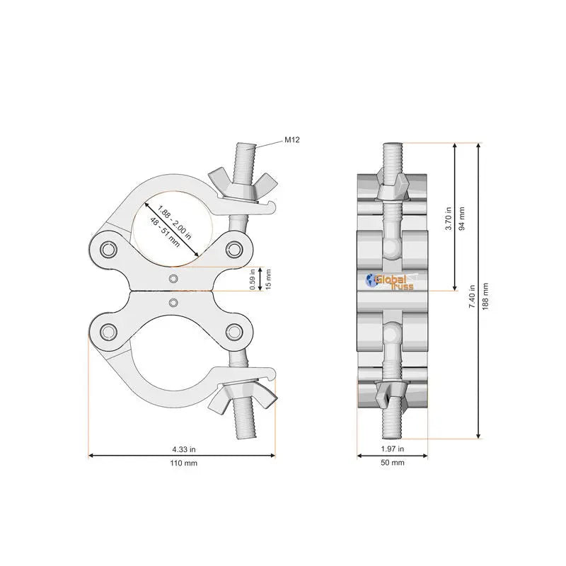Fixed Swivel Coupler 90° Black (8231-90-B)