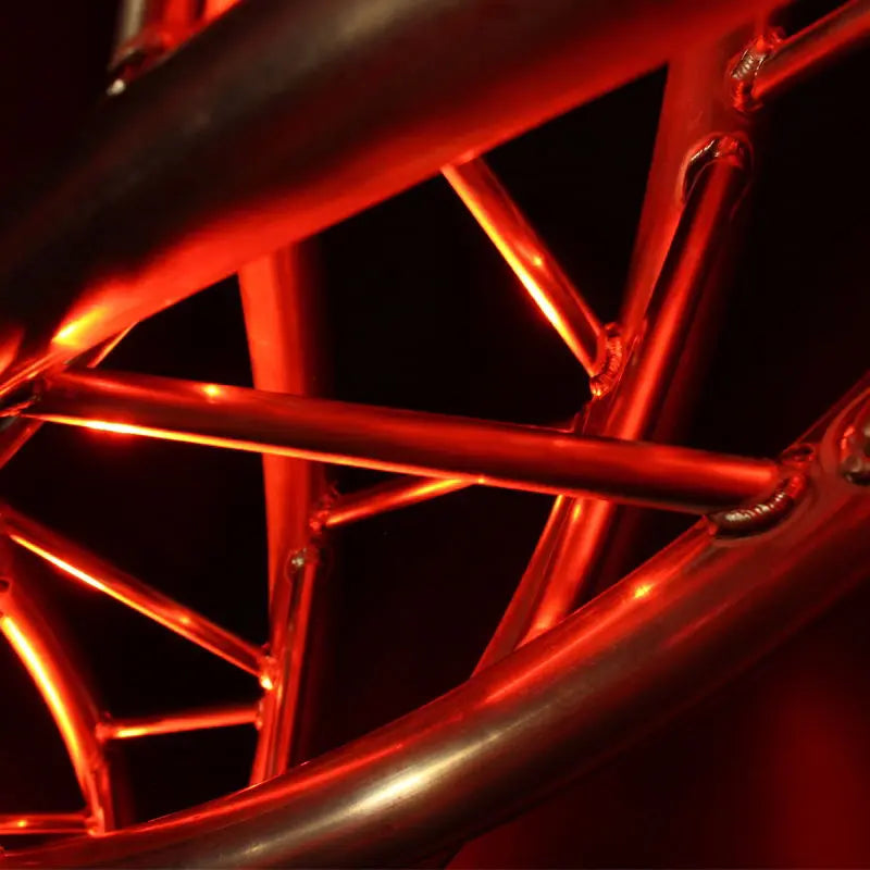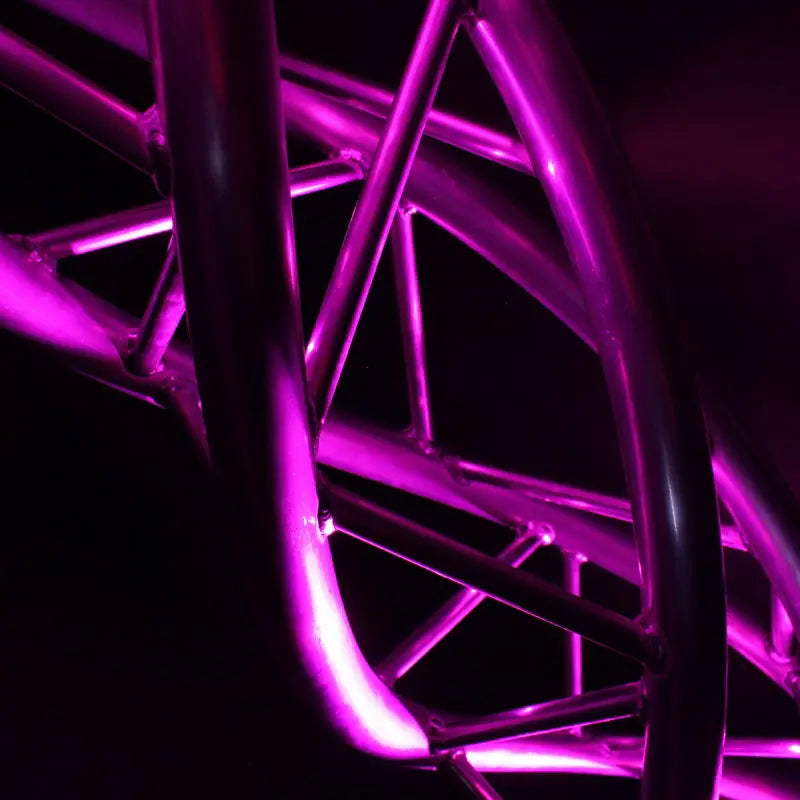 A completely unique twisted truss design. The DNA Truss has been designed to take truss to another dimension creating a stunning contrast to the traditional style and is compatible with the existing F34 standard truss range. Adaptor pieces can be attached which bring the DNA’s twist back into square ensuring the DNA truss can fit seamlessly into most F34 truss designs. DNA Truss retains the standard tube diameter of 1.96in (50mm) allowing them to fit together using a conical coupler and locking pin. The truss can be used for a variety of applications including: exhibitions corporate events retail environments and live productions. Supplied with 4 x Conicals 8 x Pins and 8 x R-Clips 2mm wall thickness aluminium Produced according to: EN 1090-1:2009 + A1:2011 EN 1090-3