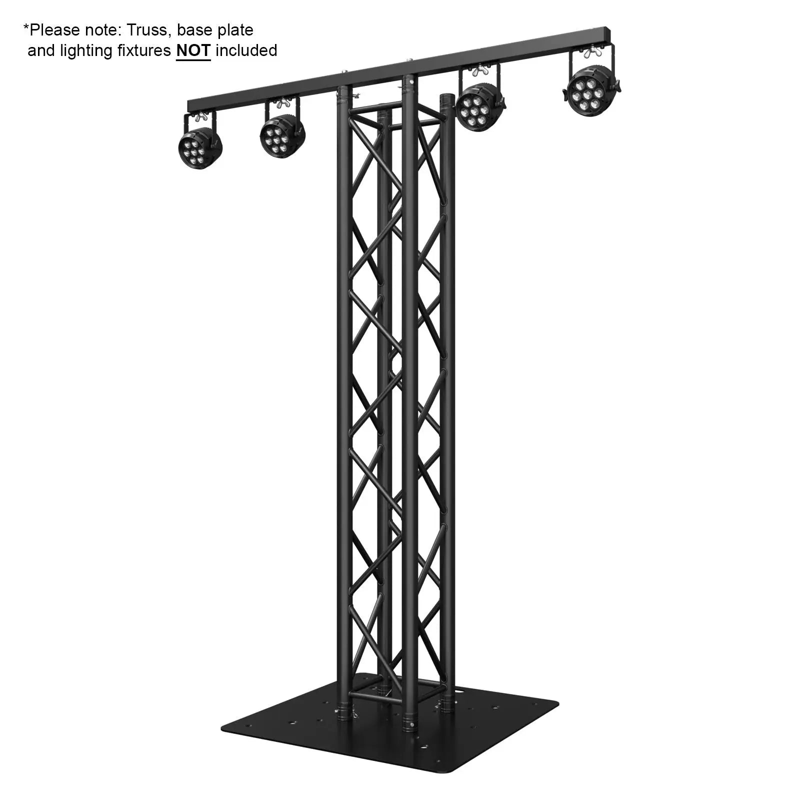 Transform your podiums with the T-Bar from Global Truss. The T-Bar attaches directly onto a length of F32 F33 or F34 Standard Truss whilst the four M10 bolts allow for pars or similar fixtures to be mounted. Each mounting point can bear a maximum load of 10kg with even load distribution. Designed for use with F32 F33 or F34 Standard Truss Supplied with 2 x half conicals 2 x Pins and 2 x R-Clips Conicals can be swapped for PL 4 x M10 mounting points supplied with wing-nuts Max. weight loading: 10kg per mounting point (evenly distributed)