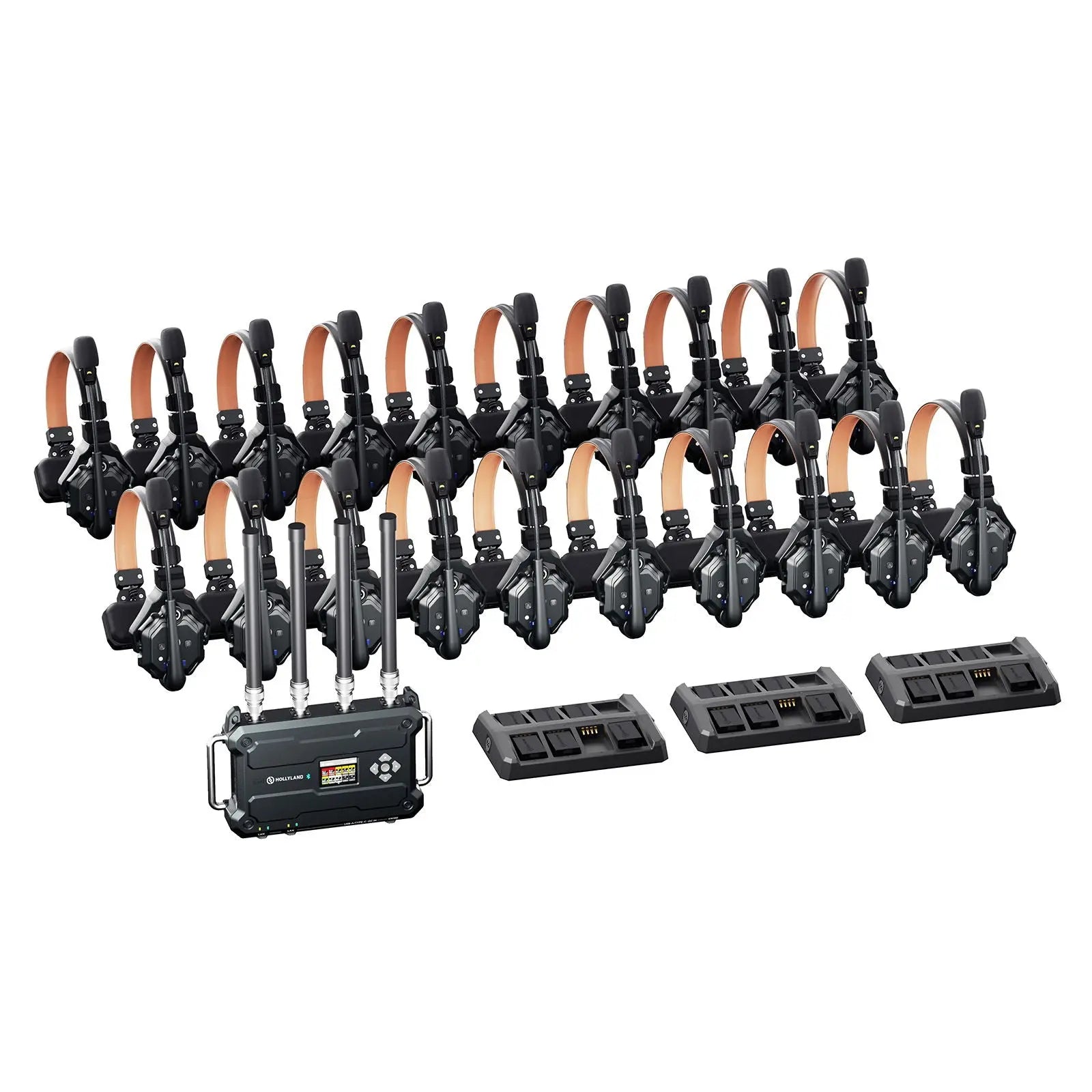 Designed for larger productions the 20S Kit scales on one hub to manage up to 20 active users across six groups keeping departments organised (e.g. cameras lighting stage RF producers). Seamless roaming preserves conversations as crew move between coverage areas preventing call drops at the worst moments.