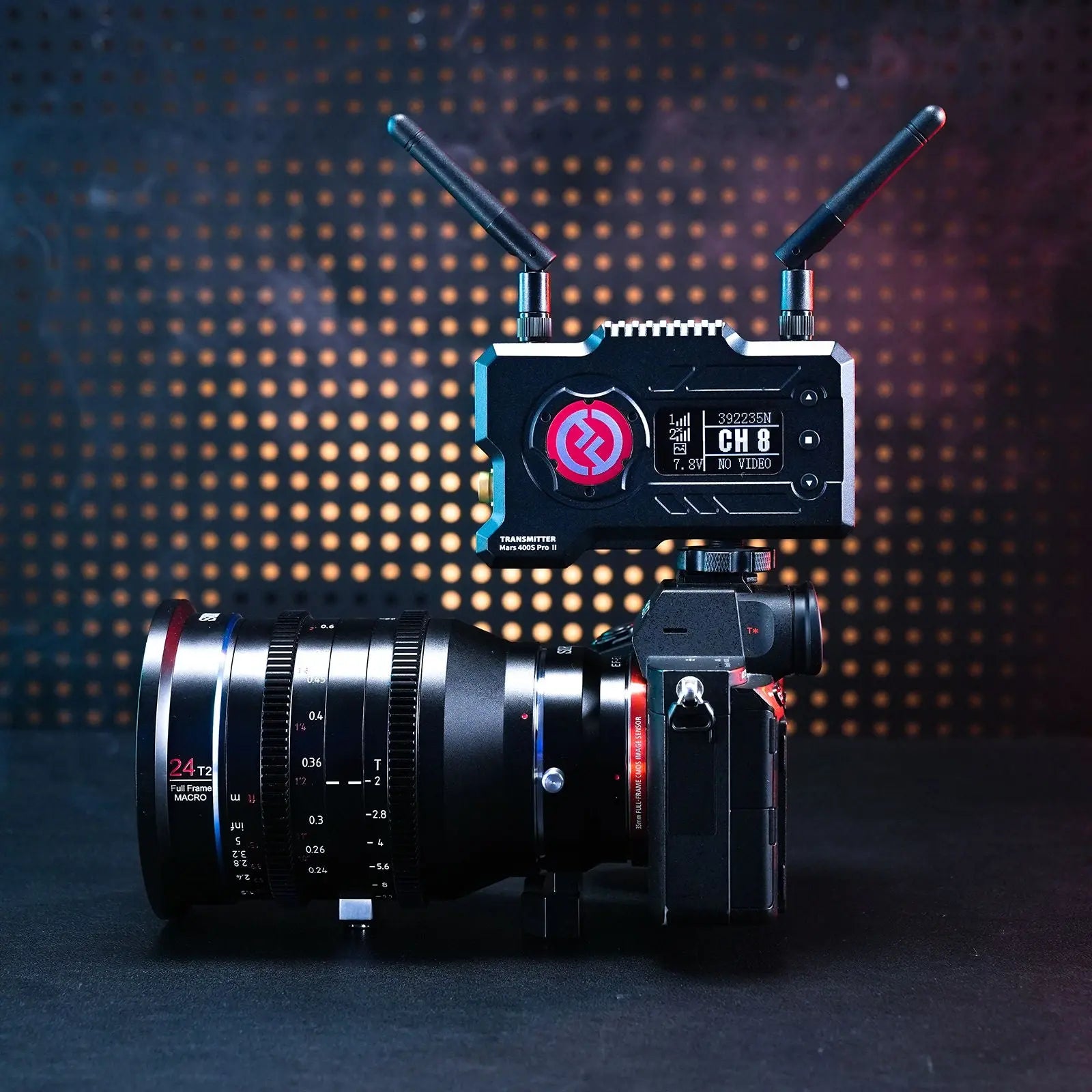 The Hollyland Mars 400S PRO II is a next-gen wireless video transmission system delivering ultra-low 70ms latency a 450ft LOS range and support for both SDI and HDMI interfaces. Ideal for filmmakers live production teams and broadcast applications this versatile system supports up to two receivers or four app-based monitors simultaneously. Features include 12Mbps high-quality data rate smart channel scanning integrated cold shoe mounting and whisper-quiet fan modes for flexible on-set use.