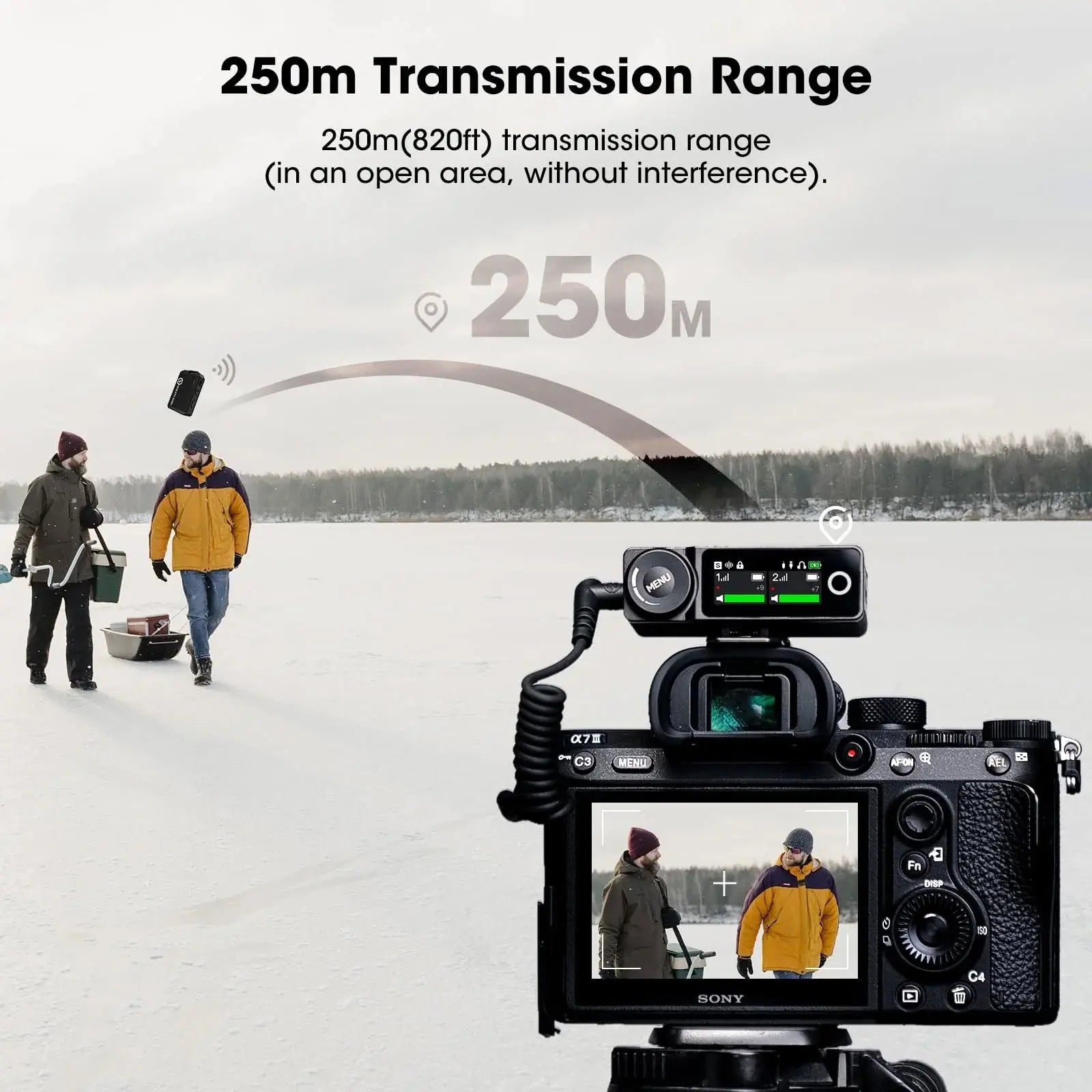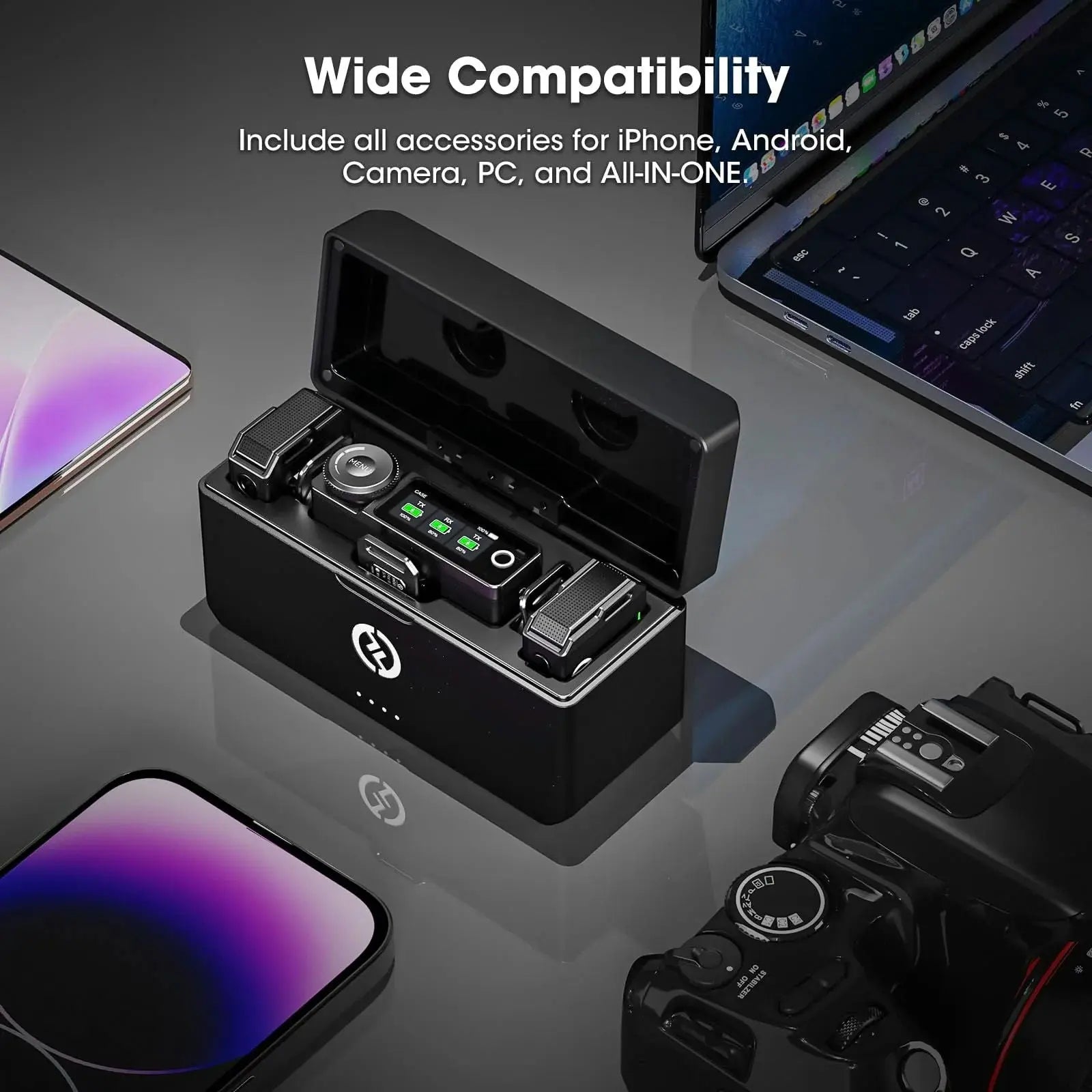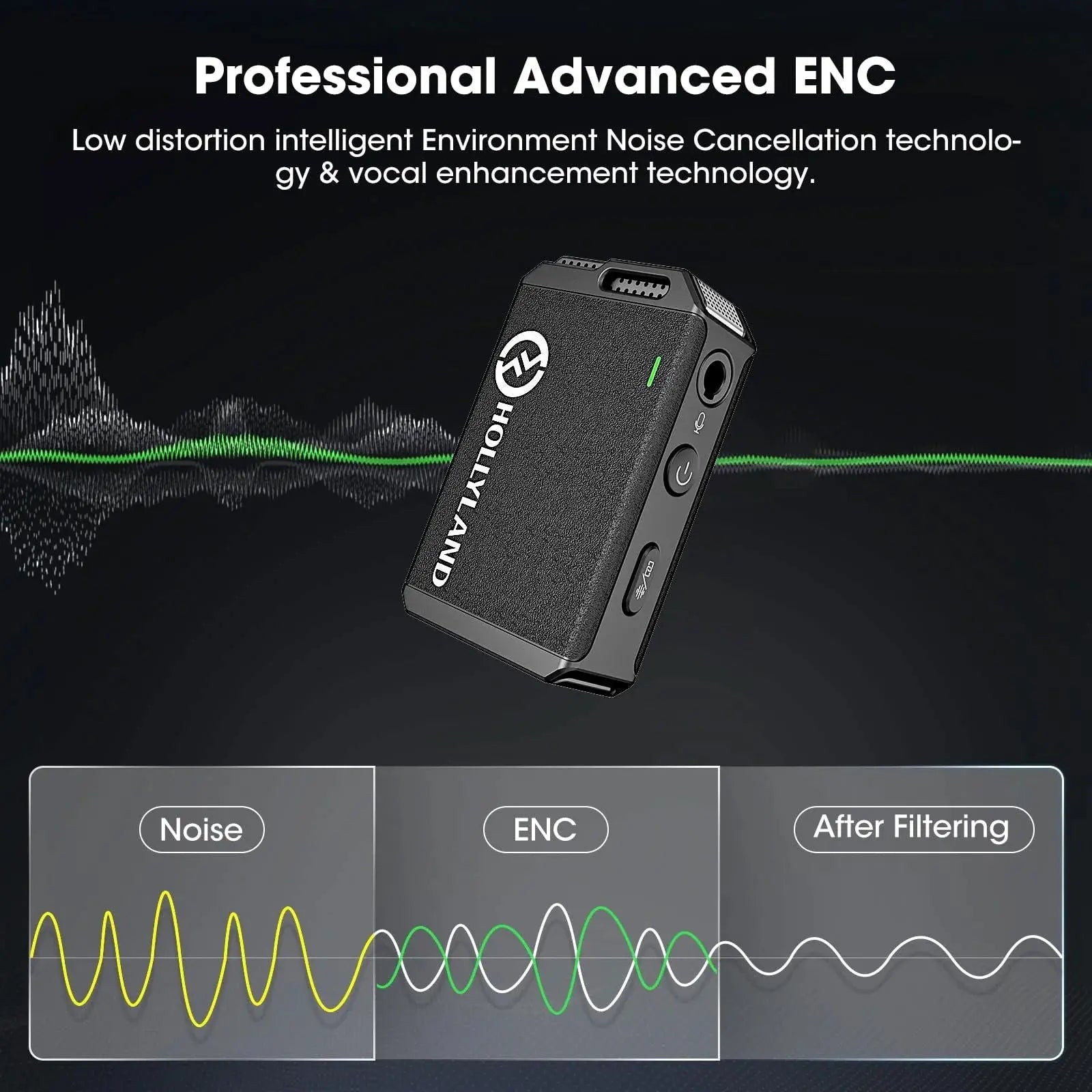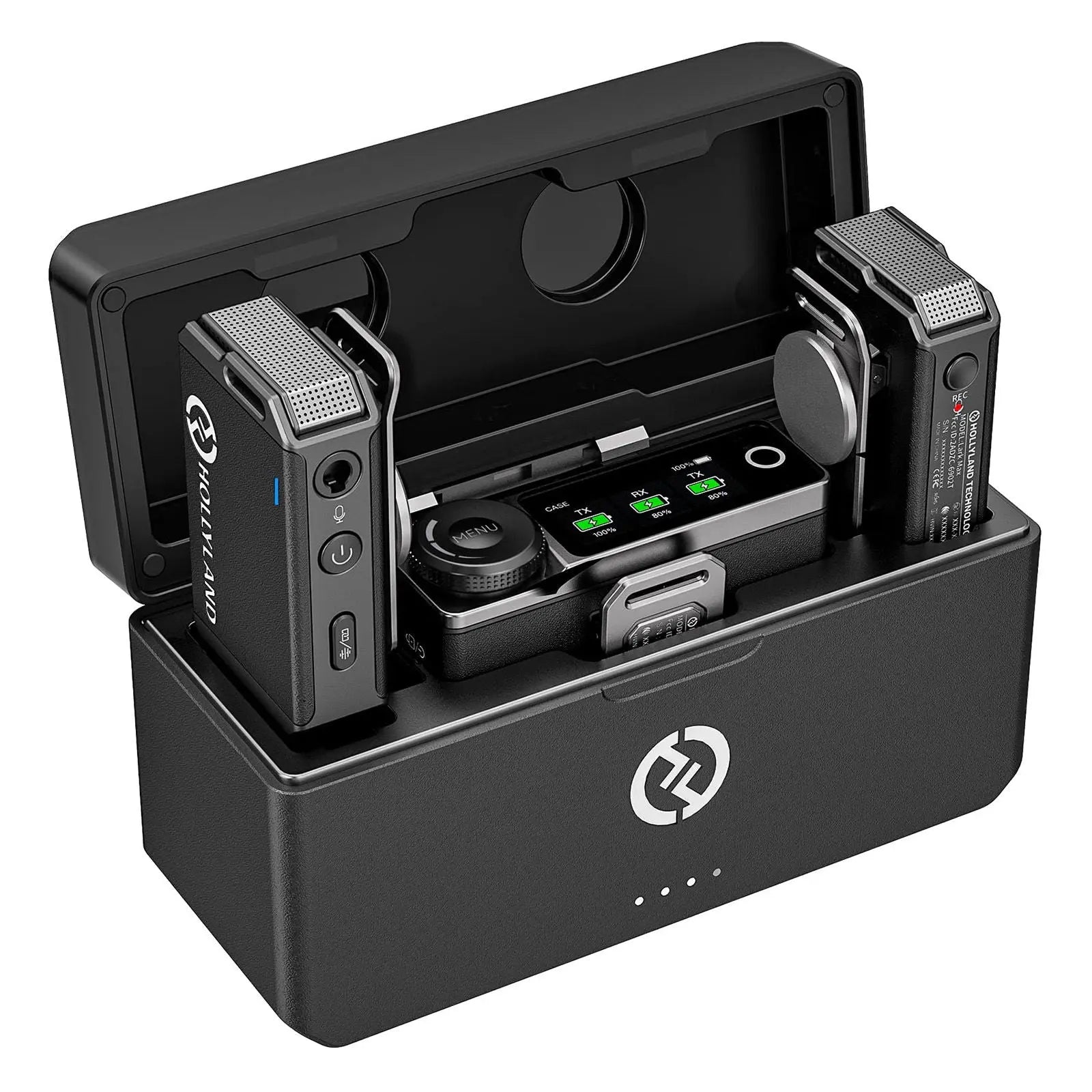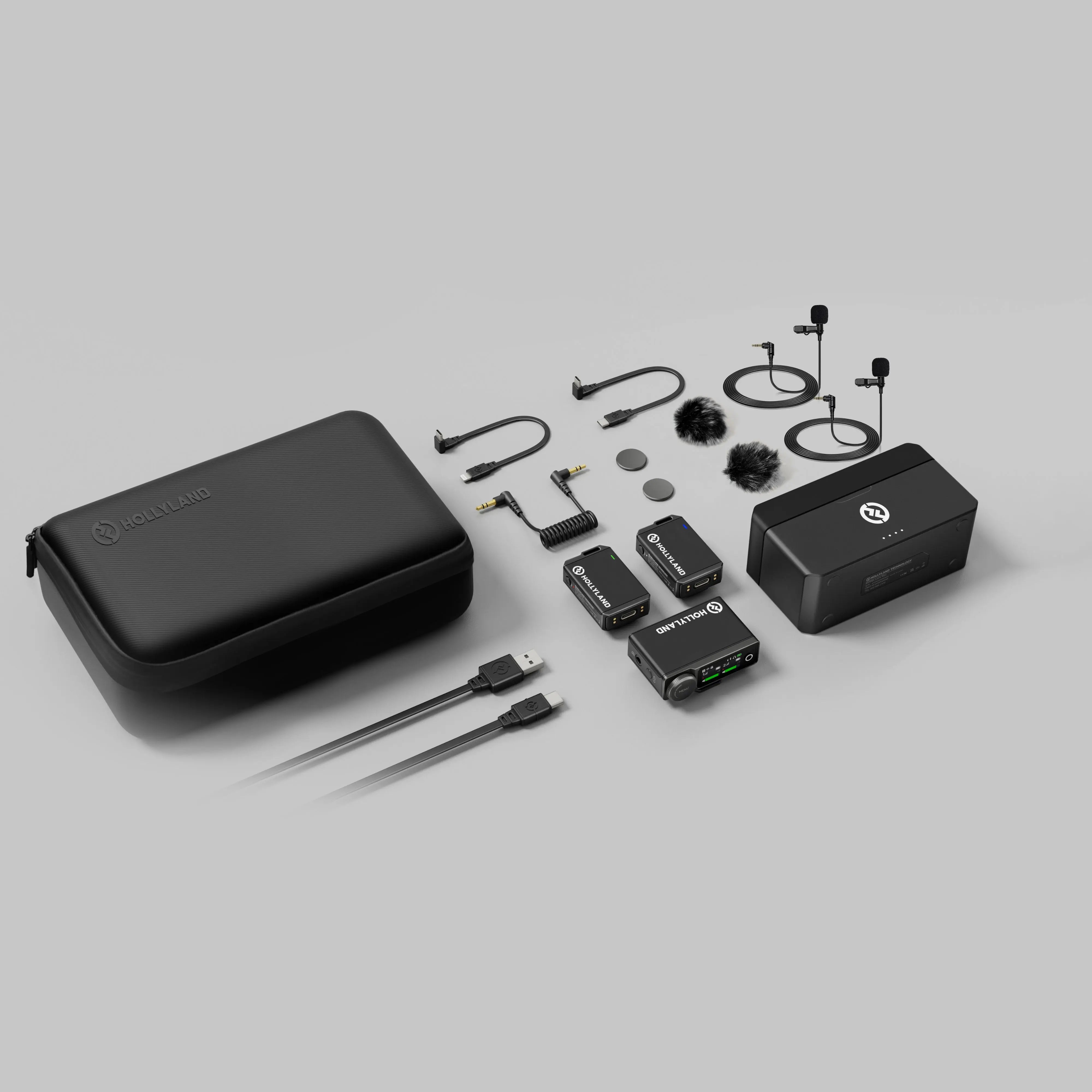 The Hollyland LARK Max Duo is a premium all-in-one wireless lavalier microphone system designed for content creators videographers and professionals needing broadcast-quality audio. Featuring industry-first MaxTimbre Mic technology advanced ENC (Environmental Noise Cancellation) and 2.4GHz digital wireless transmission it delivers crystal-clear sound with a range of up to 250m (LOS). Each transmitter includes 8GB internal storage offering up to 14 hours of backup recording ensuring your content is never lost. With its AMOLED touchscreen receiver ultra-compact design and versatile connectivity including XLR camera and mobile device compatibility the LARK Max Duo is ideal for interviews vlogs podcasts streaming and field production. Includes 2 transmitters 1 receiver and a charging case. Industry-first MaxTimbre Mic technology Advanced DSP processing Pro-grade wireless audio specs 2.4GHz digital wireless transmission Adaptive frequency hopping Auto switch to external mic Ultra-compact and portable Charging case included Supports 2 TX + 1 RX and 1 TX + 1 RX AMOLED touchscreen receiver Contents: 2 x transmitters 2 x external lavalier wired microphones 2 x furry windshields 2 x clip magnets 1 x receiver 1 x charging case 1 x storage case 1 x USB-A to USB-C Cable 1 x USB-C to USB-C cable 1 x UCB-C Lightning cable 1 x 3.5mm TS to 3.5mm TRS cable