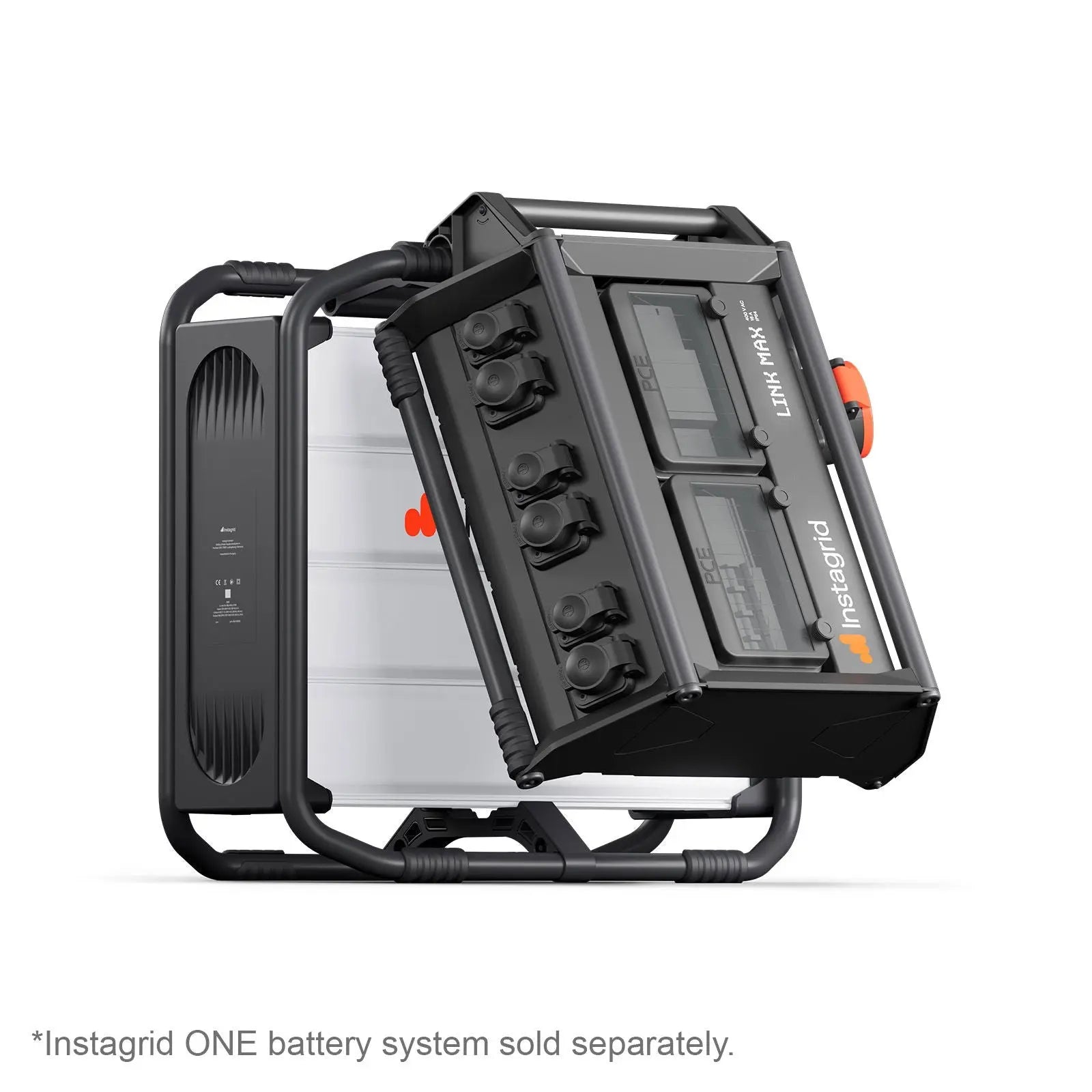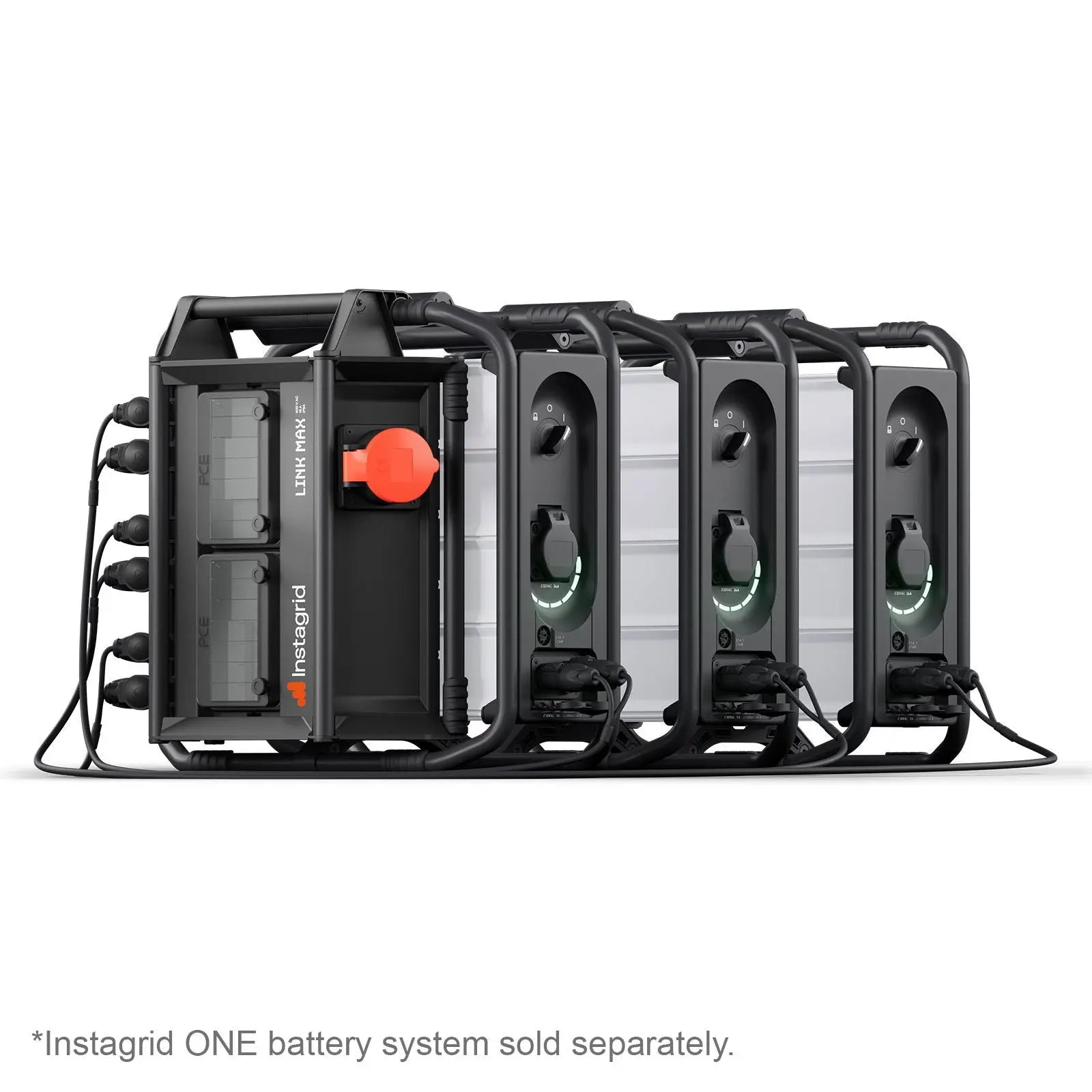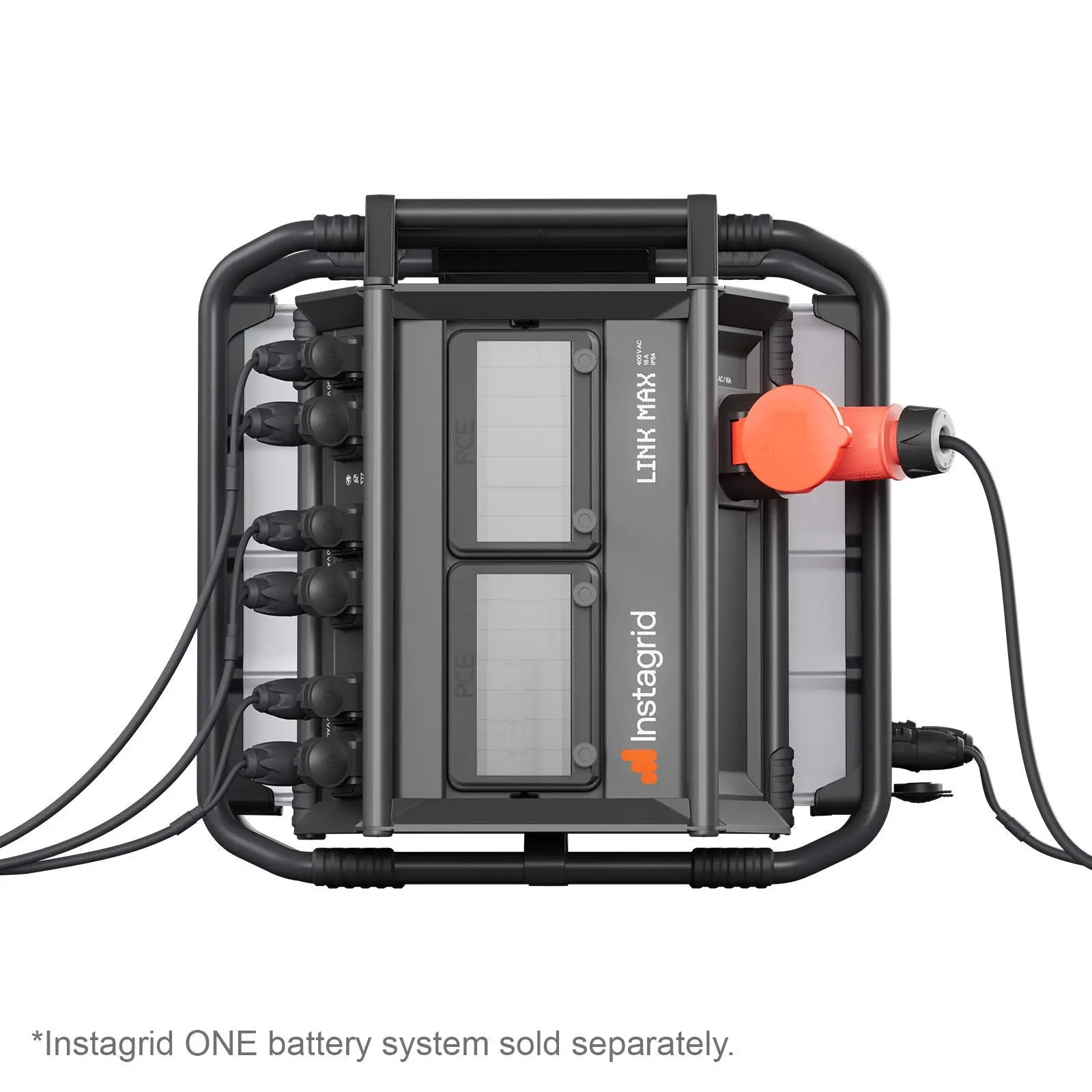 Instagrid LINK MAX transforms three Instagrid ONE units into a high-performance 400V 3-phase power supply delivering an impressive 11kW rated output and up to 54kW peak power. Designed for professionals in events film live production and mobile infrastructure LINK MAX unlocks applications previously limited to industrial diesel generators — now in a silent portable format.Weighing just 5.1kg the LINK MAX unit can be carried by hand and paired with three Instagrid ONE units to create the world’s most compact and convenient 3-phase power system (total weight: 65kg). It features a plug-and-play design tool-free setup and rugged IP54 construction — eliminating the need for noisy engines cables or heavy lifting.Run chain hoists 400V coffee machines or entire truss systems with confidence without the safety risks of extension leads or voltage drops. Combines 3 Instagrid ONE units into 400V / 3-phase / 16A output 11000W rated output | 54000W peak output Powers 400V tools such as hoists kitchen appliances and lighting rigs Compact & carryable: LINK MAX weighs just 5.1kg Set up anywhere – zero emissions zero noise Advanced protection with built-in IMD PMD and MCB Up to 66% lower total cost of ownership vs. 12kVA generator Smart safety & connectivity:3x dual Neutrik TRUE1 inputs for correct connection 1x CEE 400V / 16A output Optional use of Instagrid ONE’s 230V outputs simultaneously Insulation and phase monitoring devices for extra safety Use cases:Events: Chain hoists backline infrastructure temporary catering equipment Film & Media: High-demand lighting rigs production trucks Touring: Mobile setups pop-ups outdoor stages with no mains