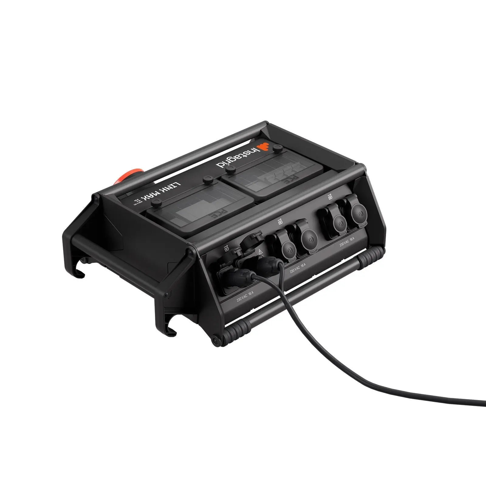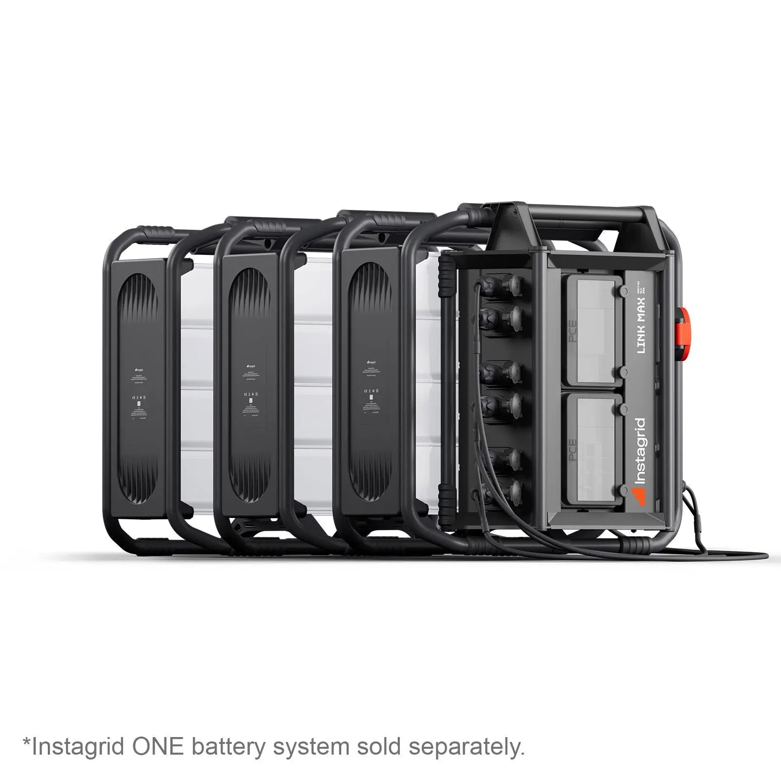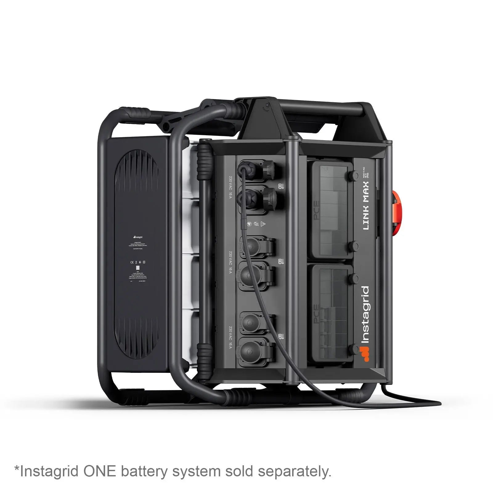 Instagrid LINK MAX transforms three Instagrid ONE units into a high-performance 400V 3-phase power supply delivering an impressive 11kW rated output and up to 54kW peak power. Designed for professionals in events film live production and mobile infrastructure LINK MAX unlocks applications previously limited to industrial diesel generators — now in a silent portable format.Weighing just 5.1kg the LINK MAX unit can be carried by hand and paired with three Instagrid ONE units to create the world’s most compact and convenient 3-phase power system (total weight: 65kg). It features a plug-and-play design tool-free setup and rugged IP54 construction — eliminating the need for noisy engines cables or heavy lifting.Run chain hoists 400V coffee machines or entire truss systems with confidence without the safety risks of extension leads or voltage drops. Combines 3 Instagrid ONE units into 400V / 3-phase / 16A output 11000W rated output | 54000W peak output Powers 400V tools such as hoists kitchen appliances and lighting rigs Compact & carryable: LINK MAX weighs just 5.1kg Set up anywhere – zero emissions zero noise Advanced protection with built-in IMD PMD and MCB Up to 66% lower total cost of ownership vs. 12kVA generator Smart safety & connectivity:3x dual Neutrik TRUE1 inputs for correct connection 1x CEE 400V / 16A output Optional use of Instagrid ONE’s 230V outputs simultaneously Insulation and phase monitoring devices for extra safety Use cases:Events: Chain hoists backline infrastructure temporary catering equipment Film & Media: High-demand lighting rigs production trucks Touring: Mobile setups pop-ups outdoor stages with no mains