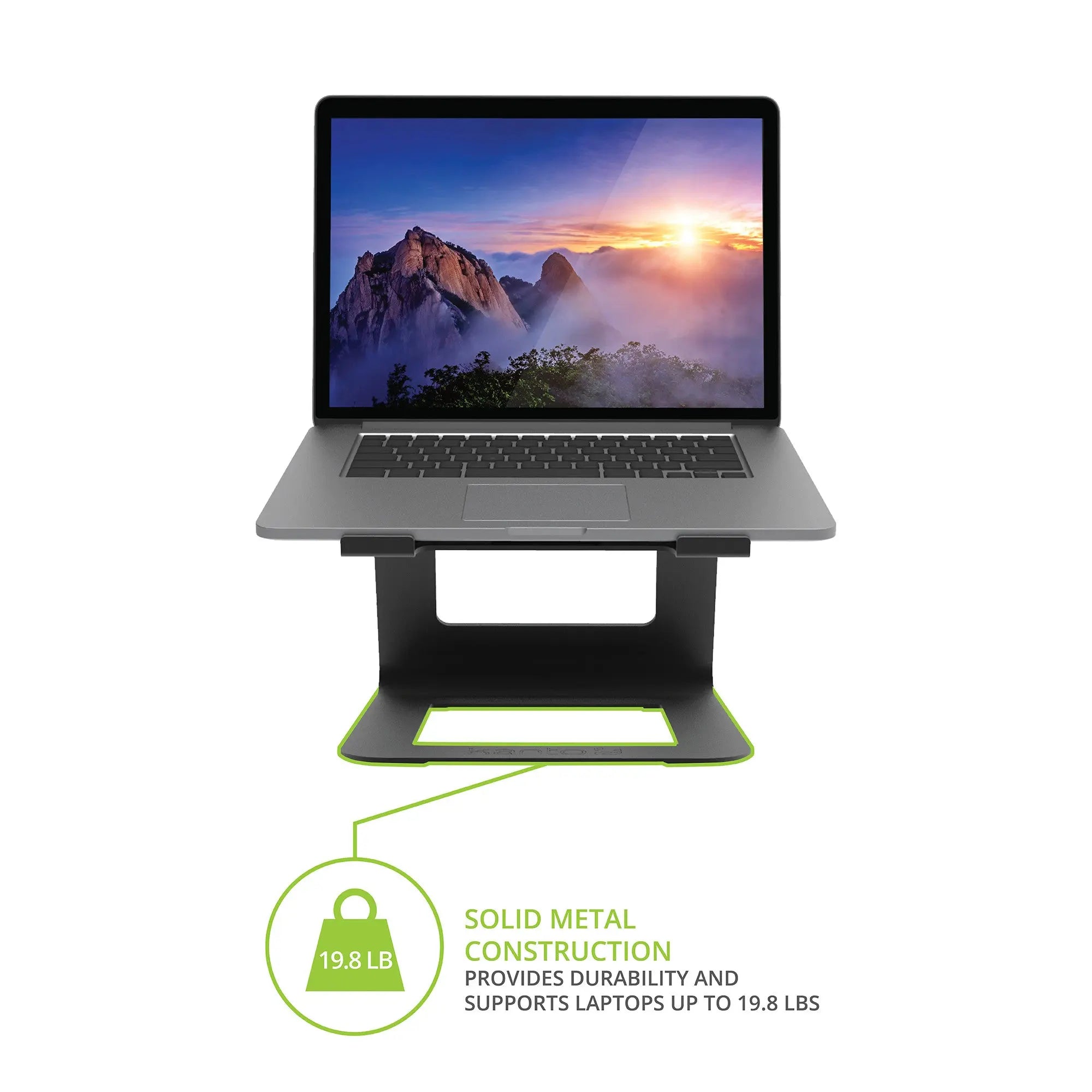 Ergonomic Elevated Design: With its elevated and cantilevered design, this premium laptop stand raises your laptop to eye level, directly promoting better posture and effectively reducing neck and eye strain during long hours of work.