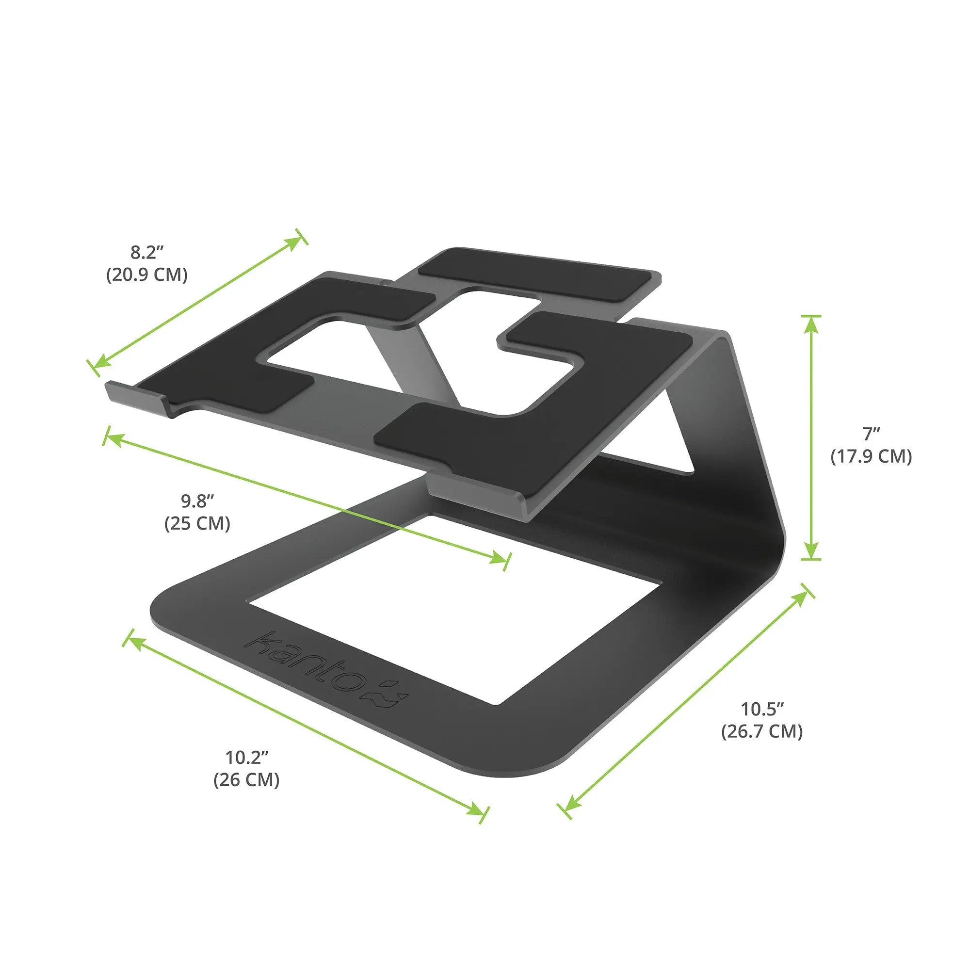 Create a beautiful and highly ergonomic workspace with the Kanto LE1 Universal Riser Laptop Stand. This premier laptop stand features an elevated and cantilevered design that not only raises your laptop to eye level for improved posture but also significantly reduces eye and neck strain. Its open platform design actively improves and encourages airflow, leading to reduced laptop temperatures, increased performance, and an extended device lifespan. Built with high-grip silicone for security and thoughtful cable management, the LE1 is the perfect blend of modern design, comfort, and functionality for any desk.