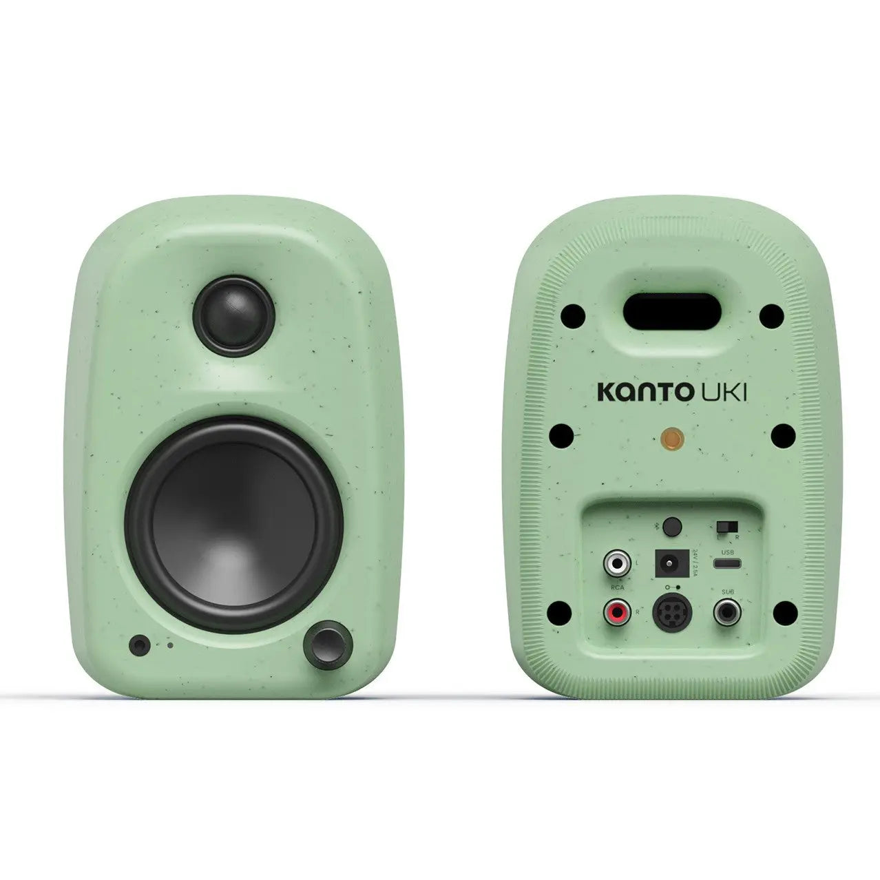 The Kanto UKI desktop speakers in Sage Green are a compact and stylish pair that bring vibrant sound and thoughtful design to your workspace. Raising the bar for what a desktop speaker should be, UKI provides rich detail for music, immersive depth for games, and accuracy for content creation—all without listening fatigue. With a 100W bi-amplified design and a comprehensive selection of inputs, including Bluetooth, USB-C, and RCA, the UKI effortlessly integrates into your life, making high-fidelity sound as accessible as it is inspiring.