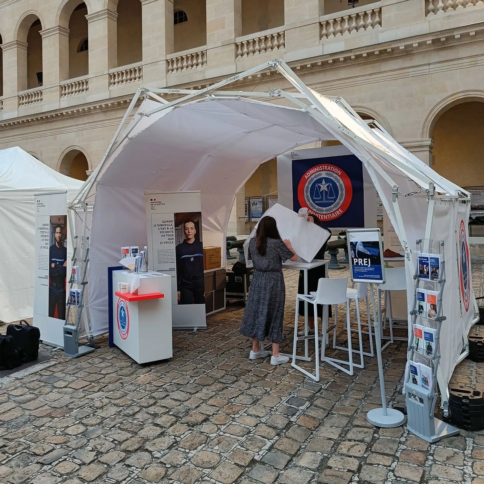 The KL0002 Inside Membrane Kit is a tailored solution for the Arko470 folding structure combining an inner roof membrane with a protective ground cover. Designed to enhance both function and presentation this kit creates a clean enclosed internal space ideal for exhibitions hospitality zones or backstage areas. The included membrane fits seamlessly within the structure’s framework while the ground cover provides additional surface protection against dust and moisture. Together they improve the aesthetic and environmental control of the setup making the Arko470 more versatile for indoor or sheltered outdoor events. Provides overhead and ground coverage for the Arko470 Enhances the structure’s interior appearance Ideal for clean and enclosed event environments
