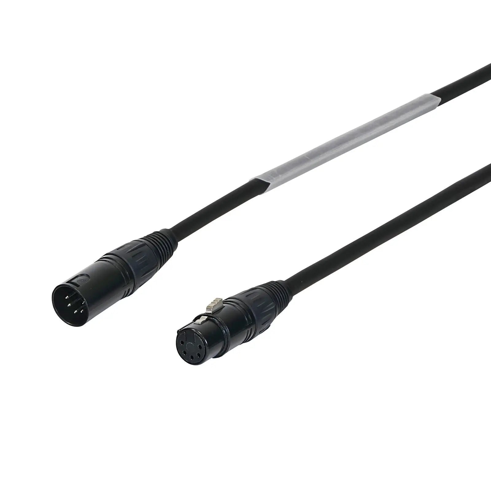 LEDJ DMX cables are high quality cables with 5-Pin XLR connectors that are used to run the signal from a lighting control console to dimmers or any other device that requires DMX to operate. A durable water-resistant PVC jacket protects the inner workings of the cable from harsh environments. In addition the inner liners have heat resistant materials to protect the integrity of the signal even when subjected to high temperatures. PVC outer jacket 5 Pin Male XLR to 5-Pin Female XLR Heat resistant 110Ω impedance cable Double shield with foil and braid for greater interference rejection Clear heatshrink suitable for identification or asset label Length: 20m