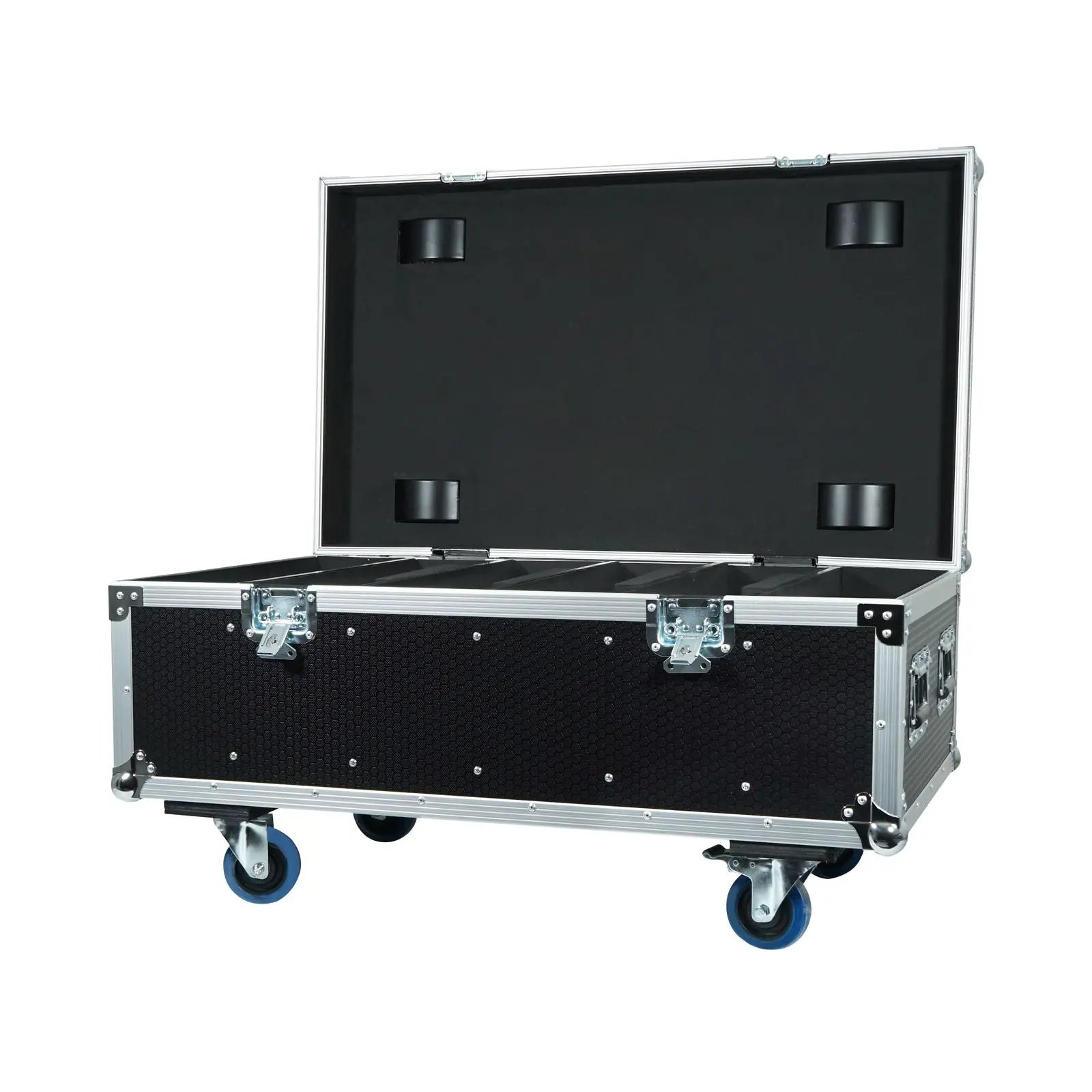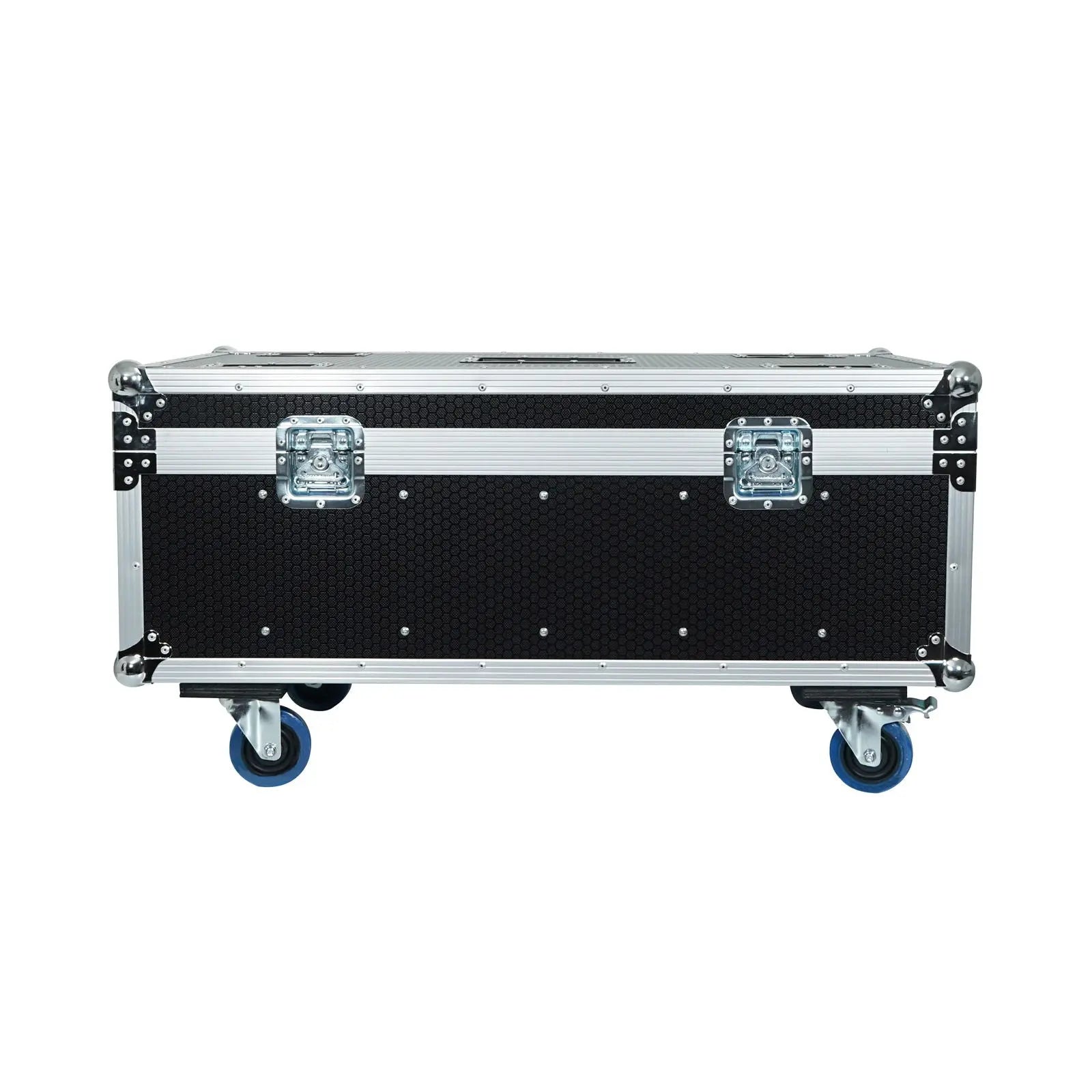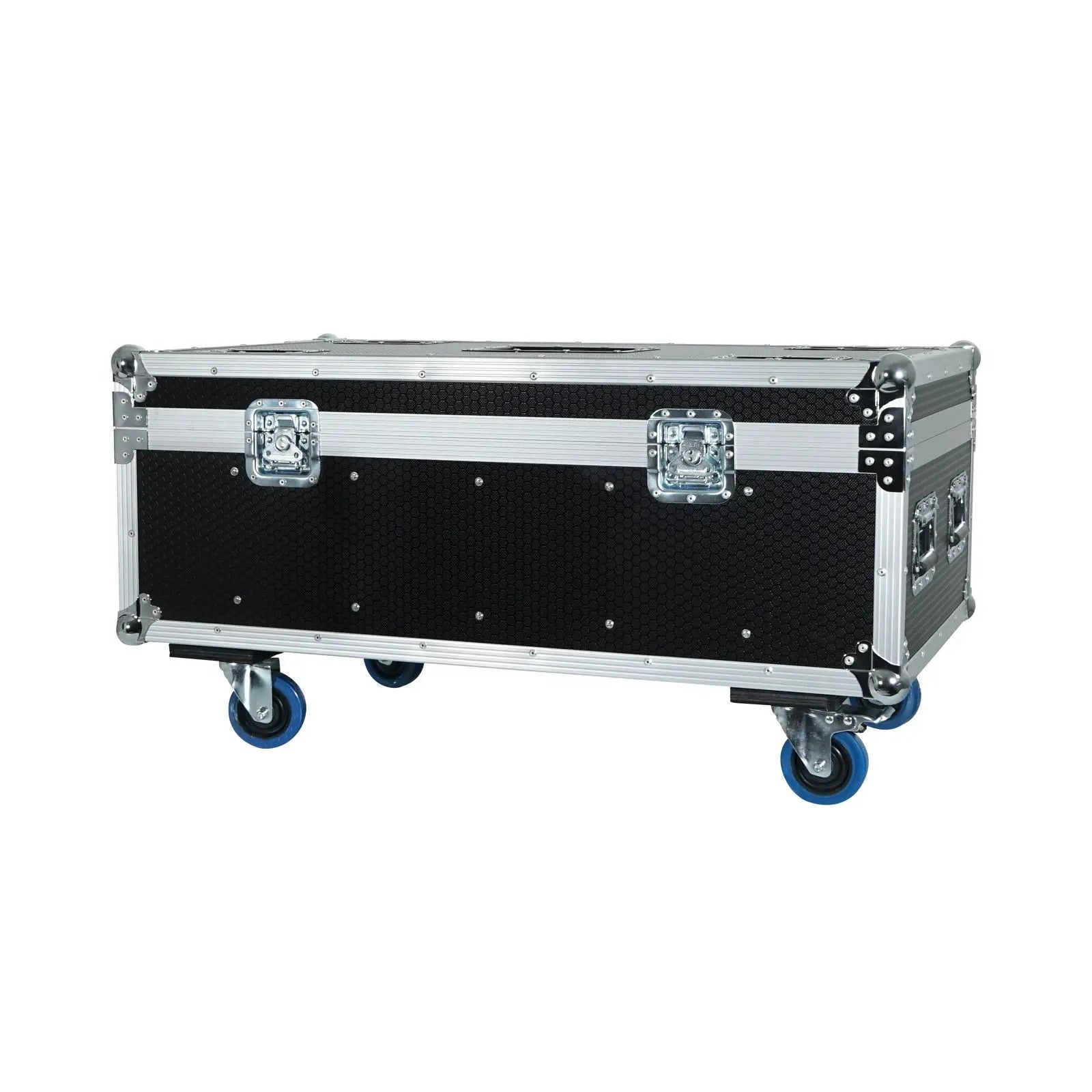 This professional flight case has been designed to fit 4 of the LEDJ Spectra QX40 Pixel or Q40 MKII exterior fixtures. An additional 2 accessory compartments are also included one to hold lenses barn doors and snoots and the other for power and DMX cables. Please note: Shipping charges may apply Features 4 compartments for Spectra QX40 Pixel or Q40 MKII plus 2 accessory compartments Interlocking tongue and groove edging ensuring that all lids and covers stay secure even in an impact and form a fully dust proof seal 9mm hexaboard plywood panels Fitted with metal tour label dish Heavy duty industrial grade handles and Penn Elcom butterfly catches All handles feature heavy duty rubber grips for comfort and non slip safety Riveted 35mm aluminium profile edge strips provide rigidity strength and durability Heavy duty ball corners for added impact protection Castors included (2 braked 2 non-braked)