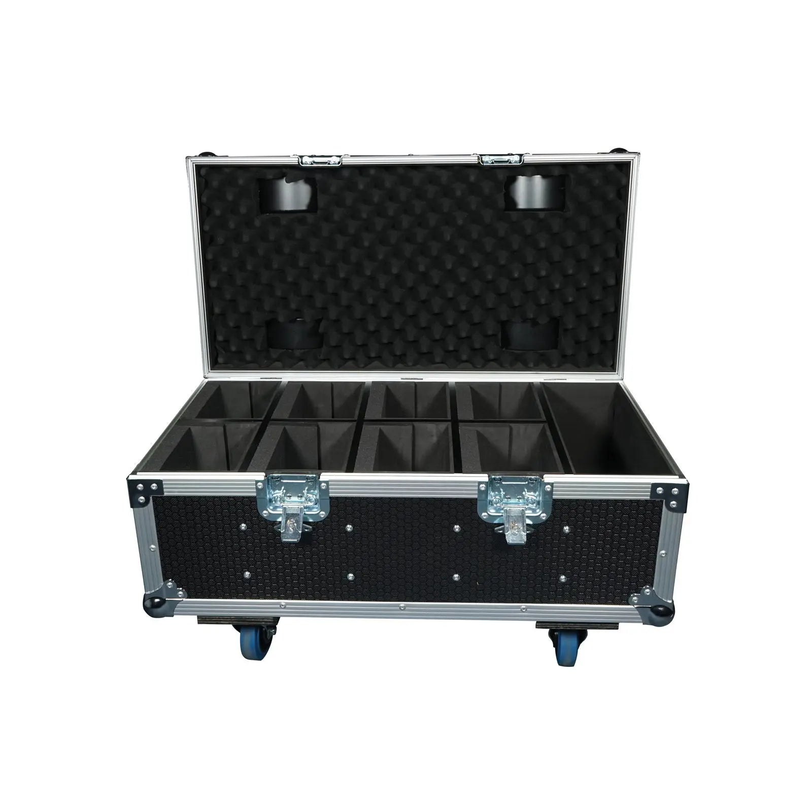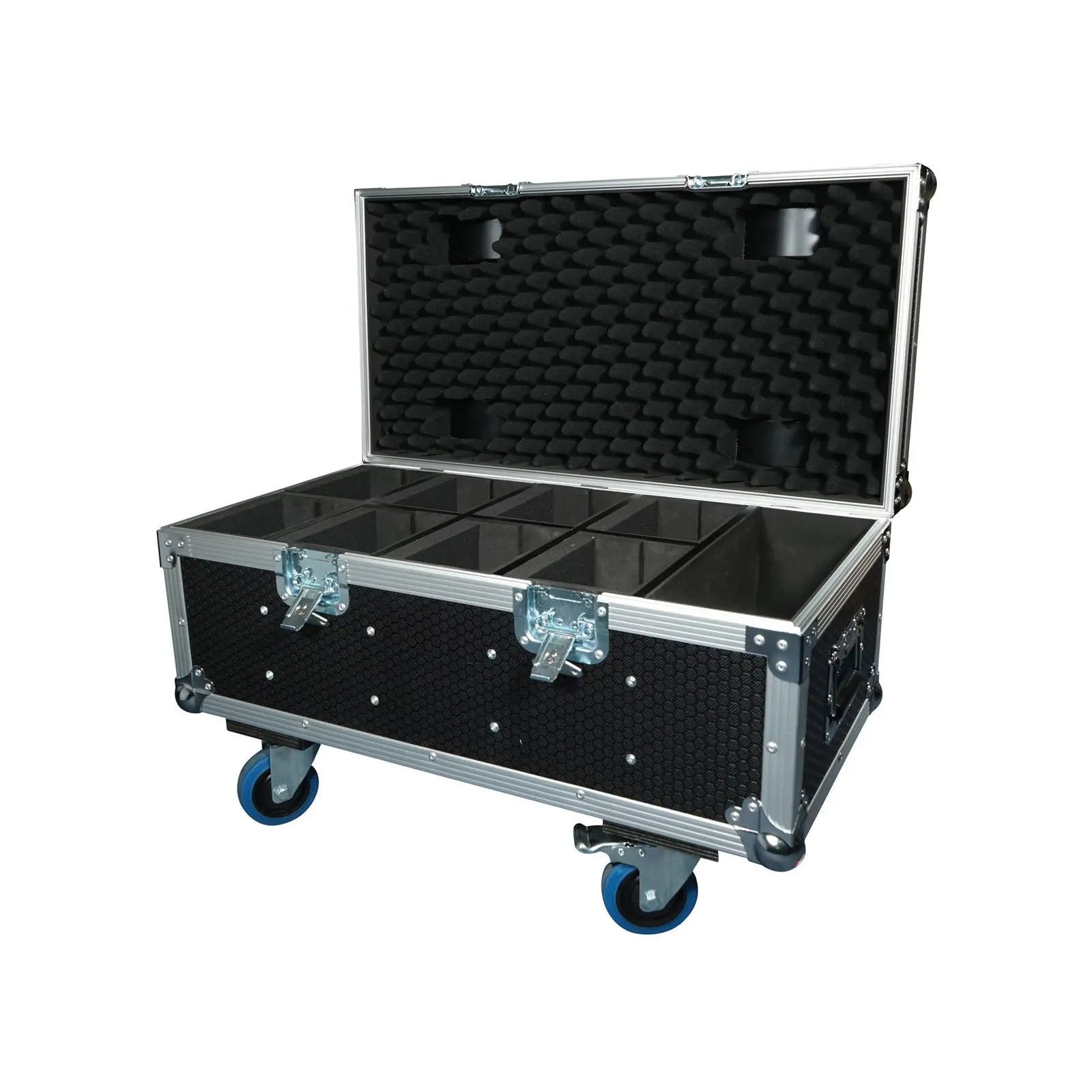 Touring grade cases from LEDJ are a professional range of cases made to the highest quality and standards and built to withstand the rigours of the road. Features 8 compartments for Spectra Q6's plus an accessory compartment Interlocking tongue and groove edging ensuring that all lids and covers stay secure even in an impact and form a fully dust proof seal 9mm hexaboard plywood panels Fitted with metal tour label dish and label Heavy duty industrial grade handles and Penn Elcom butterfly catches All handles feature heavy duty rubber grips for comfort and non slip safety Riveted 35mm aluminium profile edge strips provide rigidity strength and durability Heavy duty ball corners for added impact protection Castors included (2 braked 2 non-braked)