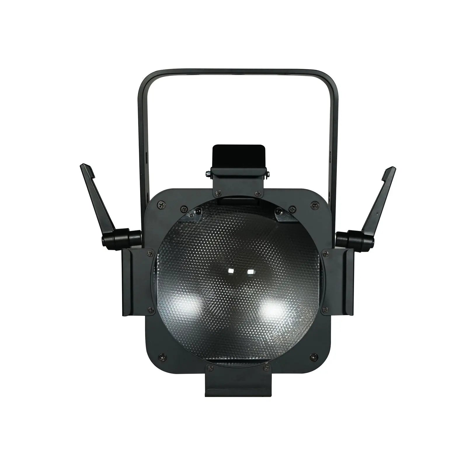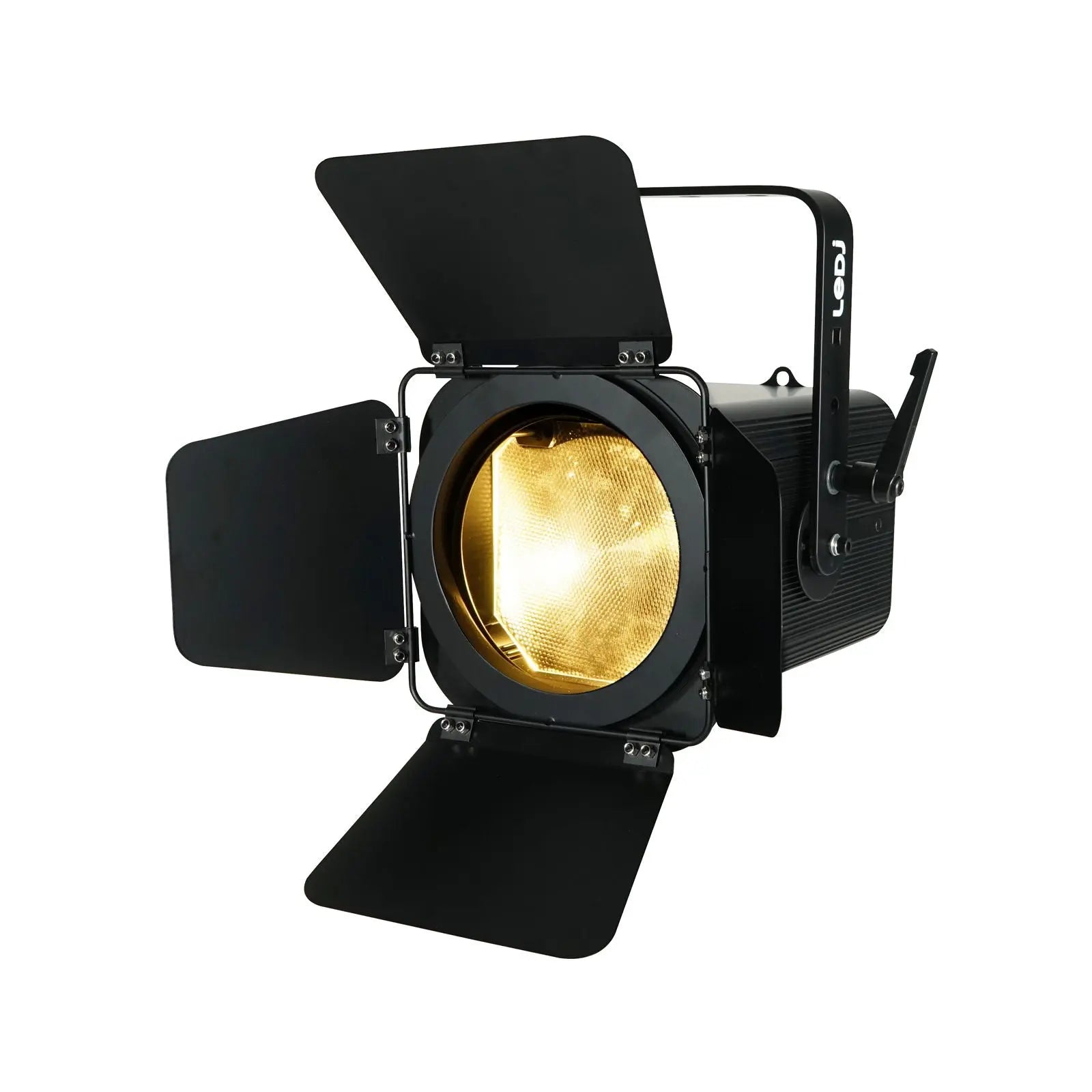 The Artisan 1000 WW Fresnel with a 100W warm white COB LED is ideal for schools churches and stages and making it an ideal replacement for tungsten fixtures. The beam angle is manually adjustable with all other features being controllable via the 4 button menu and OLED display or by DMX. The USB socket on the back panel allows for an optional W-DMX compatible transceiver further expanding the fixtures versatility with wireless master/slave or DMX control. 1 x 100W warm white (3200K) COB LED (WW) Manually adjustable beam angle: 15°- 45° 15° - 7011 Lux @ 2m (full on) 45° - 1768 Lux @ 2m (full on) Refresh rate: 1.2kHz 2.4kHz 4kHz 6kHz or 10kHz selectable DMX channels: 1/2 or 4 selectable W-DMX USB compatibility for wireless master/slave or DMX control W-DMX USB can be used to receive wireless DMX and relay the DMX signal via the XLR output 0-100% dimming 4 dimming curves: Linear square law inverse square inverse square law and S-curve Variable strobe 4 button menu with OLED display powerCON input/output 5-Pin XLR input/output Temperature controlled fan for whisper quiet operation Handle on rear panel Filter frame and barn doors included