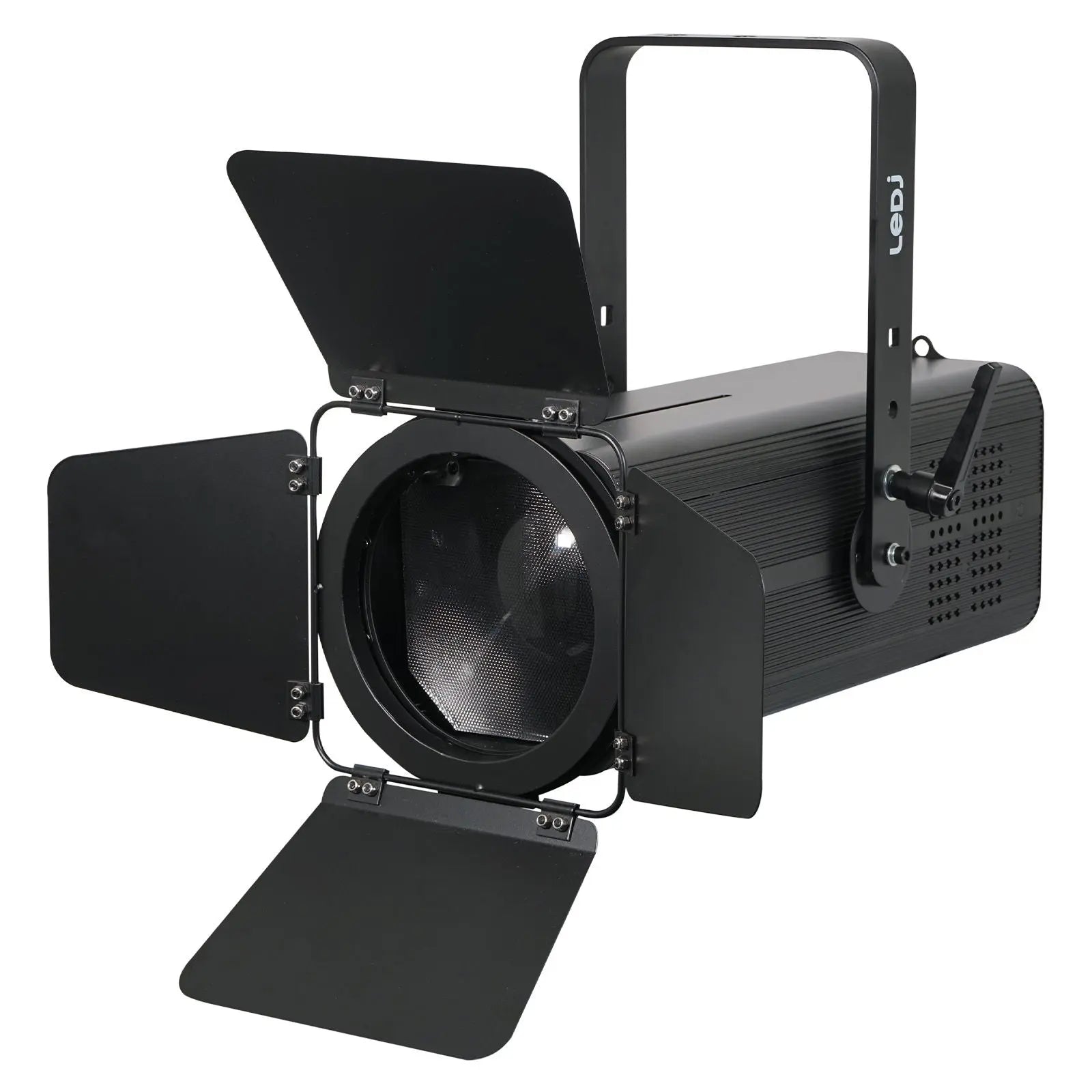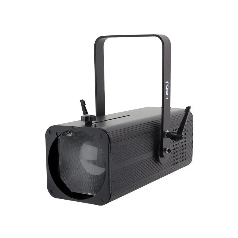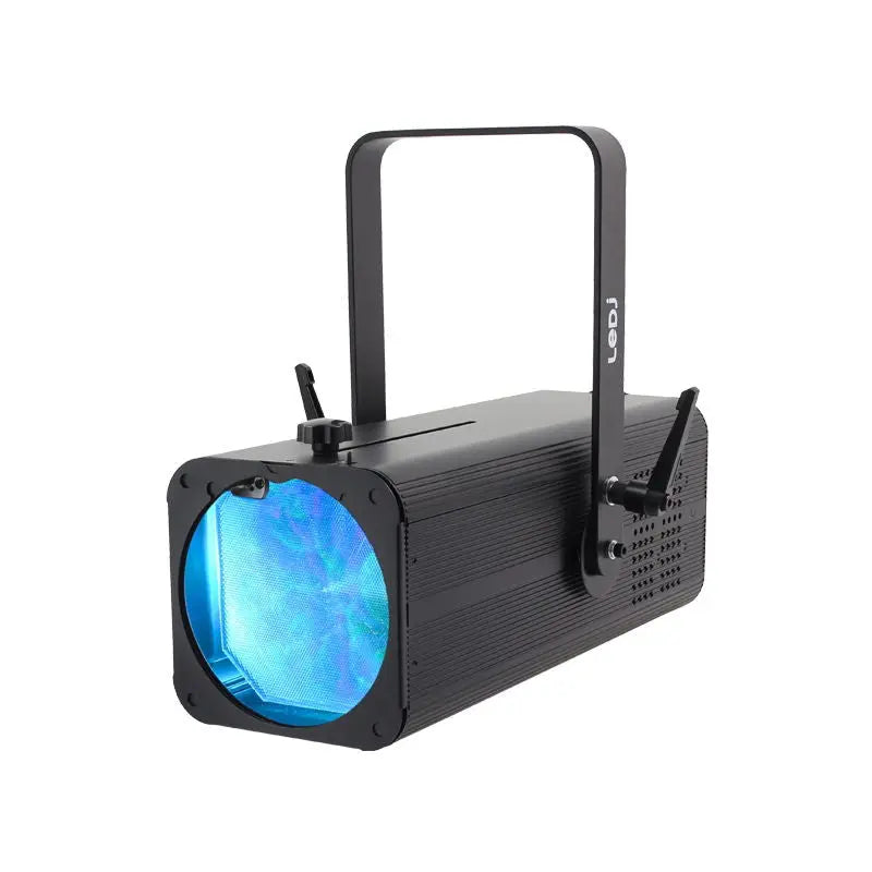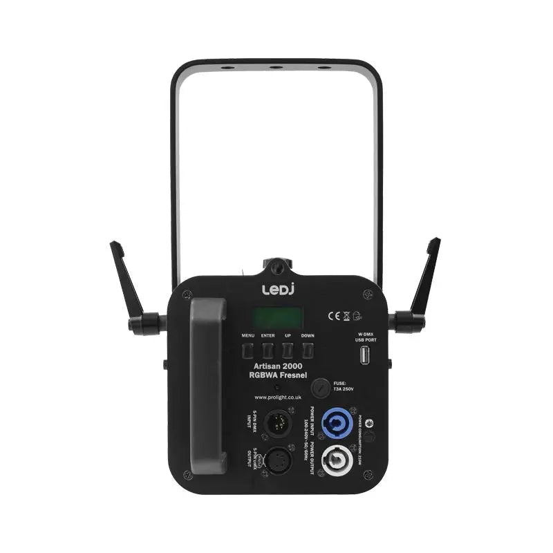 The Artisan 2000 RGBWA Fresnel is ideal for schools churches and stages and makes an ideal replacement for tungsten fixtures. The beam angle is manually adjustable with all other features being controllable via the 4 button menu and OLED display or by DMX. A handy IR remote control is included and a USB socket on the back panel allows for an optional W-DMX compatible transceiver further expanding the fixtures versatility with wireless master/slave or DMX control. 1 x 200W five-colour COB LED (RGBWA) Manually adjustable beam angle: 20°- 50° 20° - 9498 Lux @ 2m (full on) 50° - 2680 Lux @ 2m (full on) Refresh rate: 2.8kHz DMX channels: 5/6/7 or 9 selectable W-DMX USB compatibility for wireless master/slave or DMX control W-DMX USB can be used to receive wireless DMX and relay the DMX signal via the XLR output 0 - 100% dimming Variable strobe 4 dimming curves: Linear square law inverse square law and S-curve 4 button menu with LCD display powerCON input/output 5-Pin XLR input/output Temperature controlled fan for whisper quiet operation Handle on rear panel Filter frame and barn doors included Supplied with IR remote