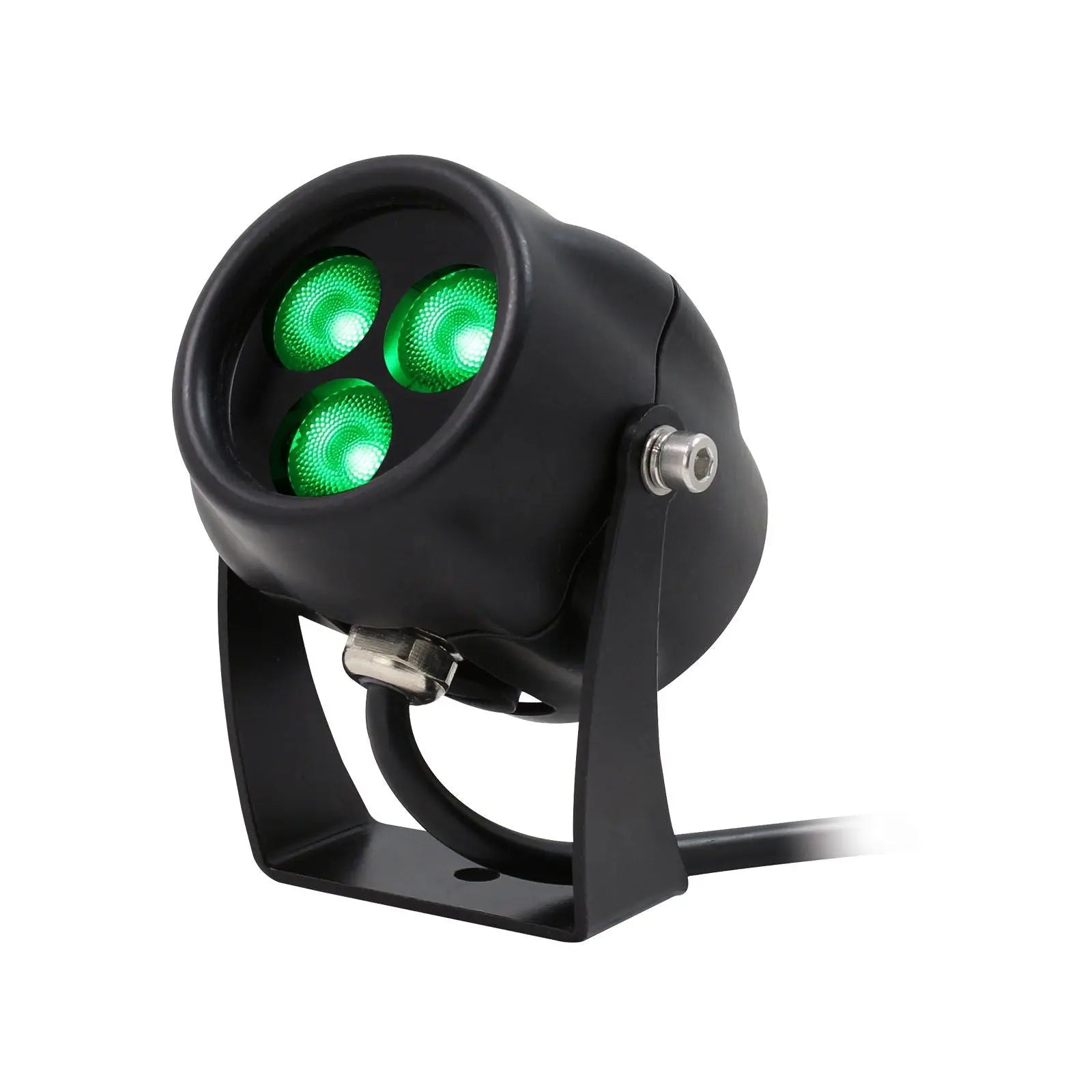This stylish compact feature light has 3 x 1W LEDs that produce a bright beam of light to illuminate and highlight outdoor areas including gardens paths foliage and facades. This IP65 rated fixture comes in a die-cast alloy housing and has a Hydralock 0.75m power input/output linkable trailing connections for professional installation. 3 x 1W green LEDs Beam angle: 35° 244 Lux @ 2m Hydralock power input/output linkable trailing connections (75cm) 7mmØ mounting hole Convection cooled Hydralock power cable not included