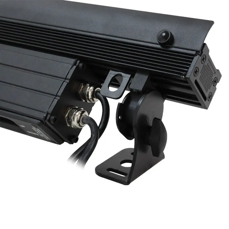 This sleek IP65 batten is perfectly suited for wall washing and cyclorama applications and is manufactured using superior quality components to ensure smooth colour mixing and optimum reliability. Utilising an innovative optical arrangement combined with a specially designed light source the 15° x 37° beam angle produces an unprecedented chromatic performance. The 4 button backlit LCD display facilitates control over static colours colour mixing changes fades DMX and master/slave and offers an access lock to prevent unauthorised setting changes. The rugged aluminium exterior ensures years of use in most weather conditions while the integral mounting brackets complete the fixtures sleek modern appearance. 12 x 3W quad-colour LEDs (RGBW) Beam angle: 15° x 37° 1421 Lux @ 2m (full on) Refresh rate: 1.1kHz DMX channels: 3/4/6/8 or 10 selectable RDM (Remote Device Management) Static colour colour change colour fade and master/slave modes 0 - 100% dimming Variable strobe Bracket allows for multiple rigging or floor standing applications Eyebrow supplied to reduce glare and hide the LEDs when uplighting 4 button menu with LCD display Hydralock power input/output trailing connections Hydralock DMX input/output trailing connections Convection cooled