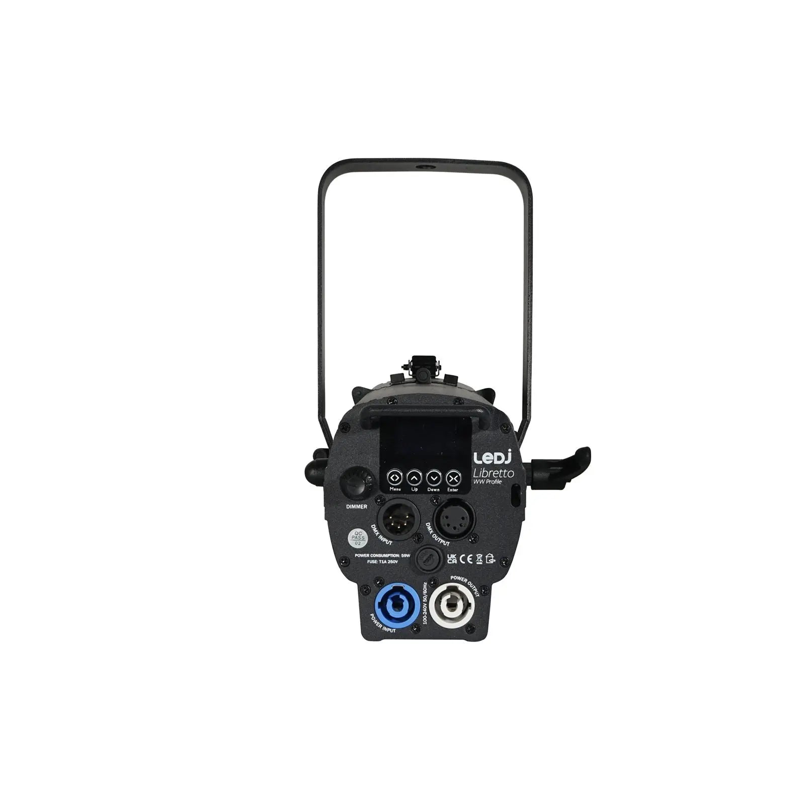 The Libretto WW is a 50W warm-white COB LED Profile with a high CRI. Ideally suited to gallery museum and theatre applications it operates with a manually adjustable zoom of 14-32 degrees and a focus control to offer a precise hard-edge beam or soft-edged washes. Control is via DMX the on-board menu and a manual adjustment knob for dimming on the rear panel. Beam shaping is possible with the four-blade shutter system and either metal or glass gobos can be installed. Five metal gobos are included with the fixture. 1 x 50W warm white COB LED (3200K) Manually adjustable beam angle: 14° - 31° Lumens – Source: 3970 Lumens – Output: 1159 14° - 5381 Lux @ 2m 31° - 2956 Lux @ 2m Refresh rate: 2kHz CRI: 95 Beam framing shutters Zoom and focus adjustment Gobo slot DMX channels: 1 or 2 selectable Manual dimming mode via rotary control or menu 0 - 100% dimming Variable strobe 4 dimming curves: Linear square law inverse square law and S-curve 4 button menu with OLED display powerCON input/output 5-Pin XLR input/output Fan cooled Rear positioning handle Includes 5 metal gobos Filter frame included