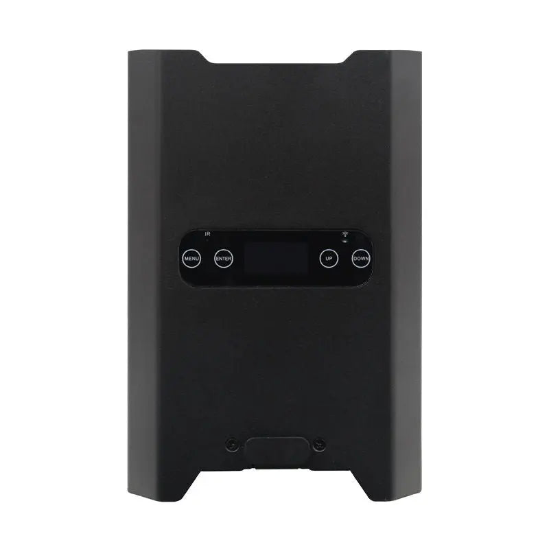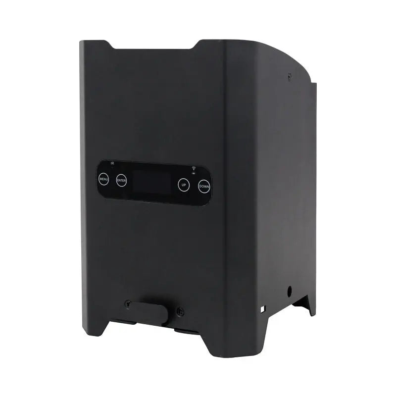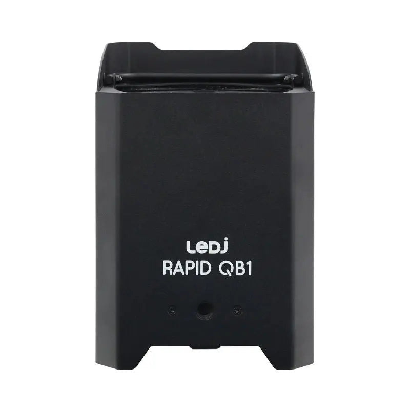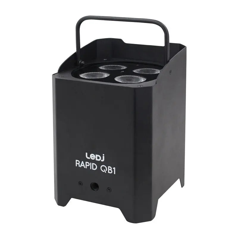 Rapid QB1 HEX IP is a portable battery powered uplighter outputting ultra-smooth colours from rich saturated hues to subtle pastel shades. The temporary outdoor rated compact and robust housing repels water snow and dirt for all-weather applications and is easily concealable. The internal lithium battery has autonomy of up to 18 hours in single colour mode and up to 5.5 hours of colour fading and chases while the charging time is only 5 hours. The fixture is IP54 rated (IP65 from the top) has a powerCON TRUE1 input and features an extractable foot that allows users to adjust the tilt angle. The on-board wireless transceiver and W-DMX compatibility make for a truly cable free operation. 4 x 12W six-colour LEDs (RGBWAUV) Beam angle: 25° (field angle: 45°) 1230 Lux @ 2m Refresh rate: 1.2kHz DMX channels: 6/8 or 11 selectable Wireless control (W-DMX Sweden compatible transceiver) Static colour colour change colour fade auto and master/slave modes 0 - 100% dimming Variable strobe M10 rigging point for clamp Adjustable foot support for angled floor standing applications (up to 25°) Carry handle for transportation Safety bond/security chain point 4 button menu with OLED display Rechargeable battery for wireless applications Maximum run time: up to 18 hours (single colour) 5.5 hours (colour change/fade) 3 hours (full on) Charging time: 5 hours (max.) powerCON TRUE1 input Convection cooled Supplied with IR remote