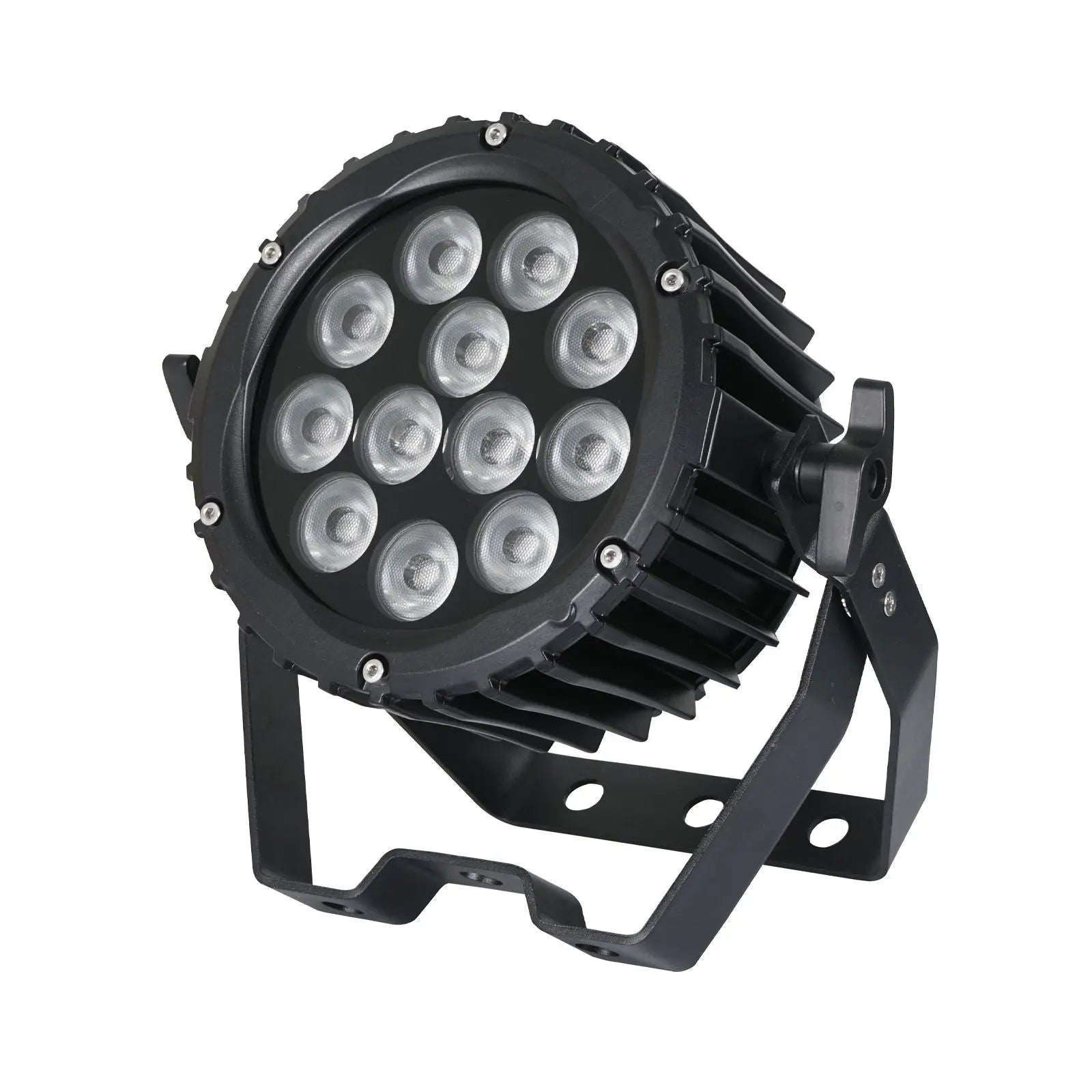 The exterior Spectra Par 12T3 features 12 x 3W tri-colour LEDs delivering a strong punch of colour ranging from intense rich saturated hues through to pastel shades. Controllable via the onboard 4 button LED menu system for auto static colour or master/slave modes with the option of DMX control for larger installations. The silent running convection cooled heavy-duty alloy enclosure features Hydralock connectors for both DMX and mains input/output. 12 x 3W tri-colour LEDs (RGB) Beam angle: 28° 2157 Lux @ 2m (full on) Refresh rate: 7.8kHz DMX channels: 1/3/4/5 or 6 selectable Static colour colour change colour fade and master/slave modes 0 - 100% dimming Variable strobe Bracket allows for multiple rigging or floor standing applications 4 button menu with LED display Hydralock power input/output trailing connections Hydralock DMX input/output trailing connections Convection cooled