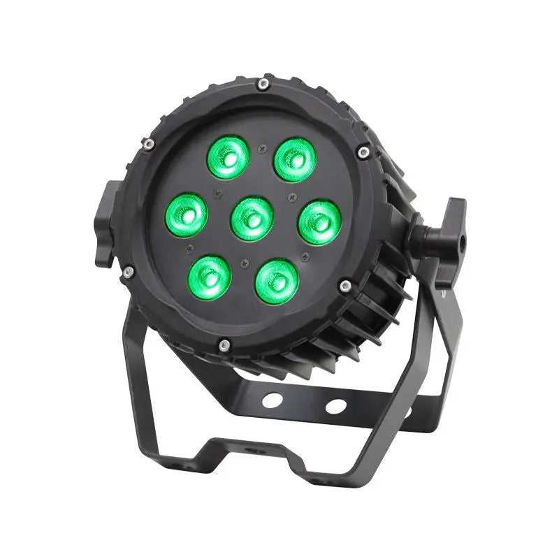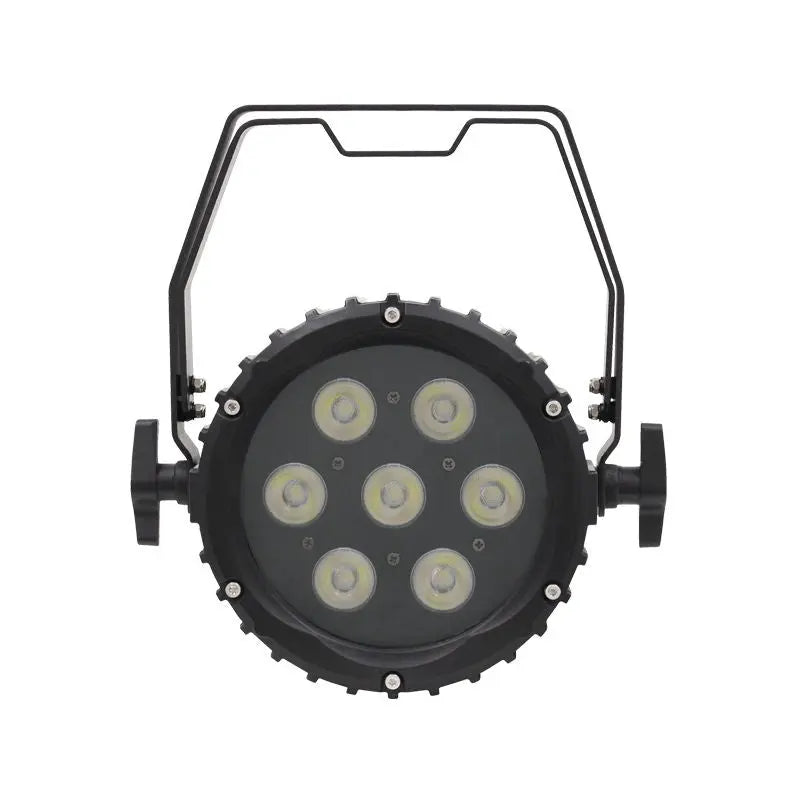 The exterior Spectra Par 7Q8 features 7 x 8W quad-colour LEDs delivering a smooth wash of colour ranging from intense rich saturated hues through to pastel shades. Controllable via the onboard 4 button LED menu system for auto static colour or master/slave modes with the option of DMX control for larger installations. The silent running convection cooled heavy-duty alloy enclosure features Hydralock connectors for both DMX and mains input/output. 7 x 8W quad-colour LEDs (RGBW) Beam angle: 28° 1762 Lux @ 2m (full on) Refresh rate: 7.8kHz DMX channels: 4/6 or 8 selectable Static colour colour change colour fade and master/slave modes 0 - 100% dimming Variable strobe Bracket allows for multiple rigging or floor standing applications 4 button menu with LED display Hydralock power input/output trailing connections Hydralock DMX input/output trailing connections Convection cooled