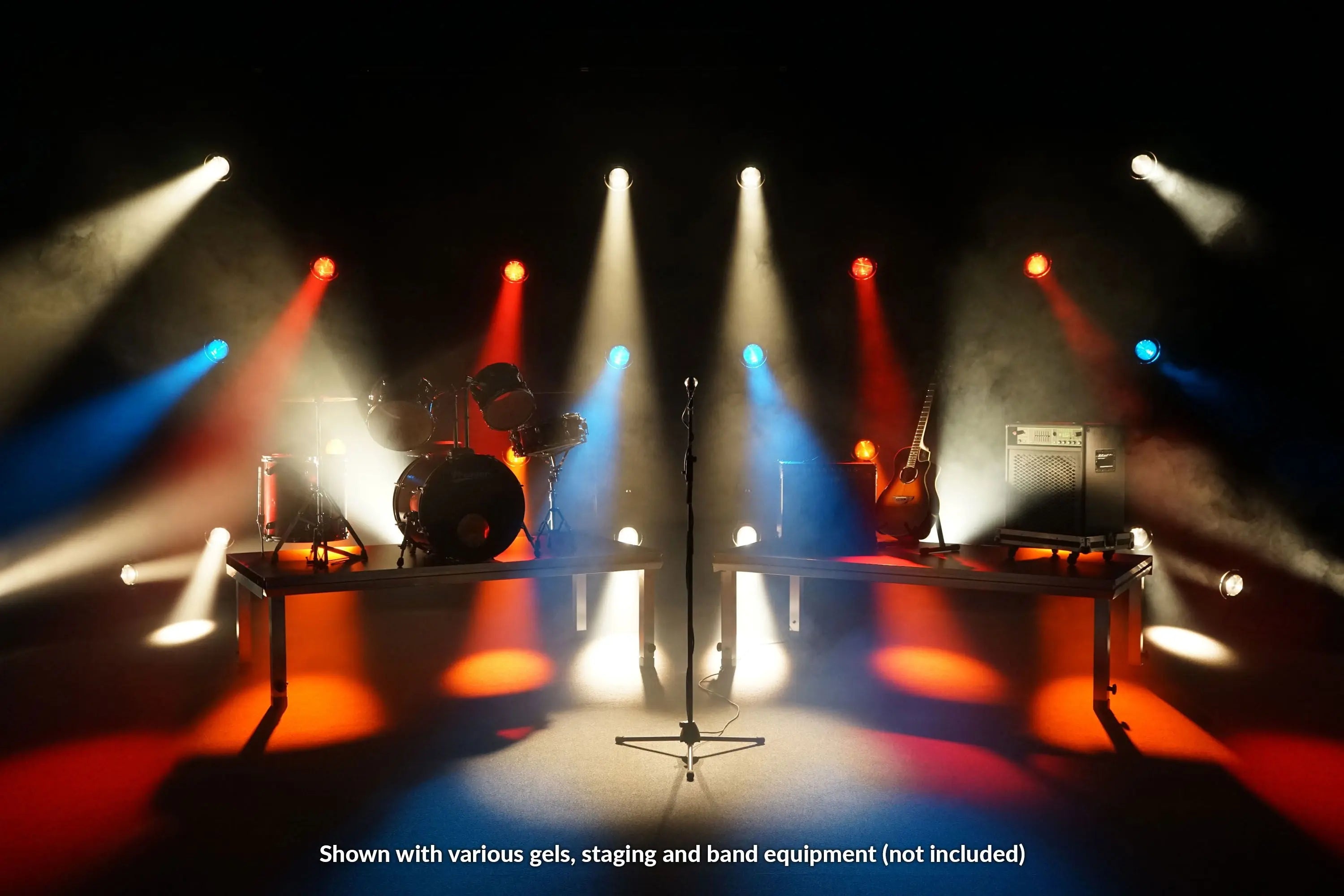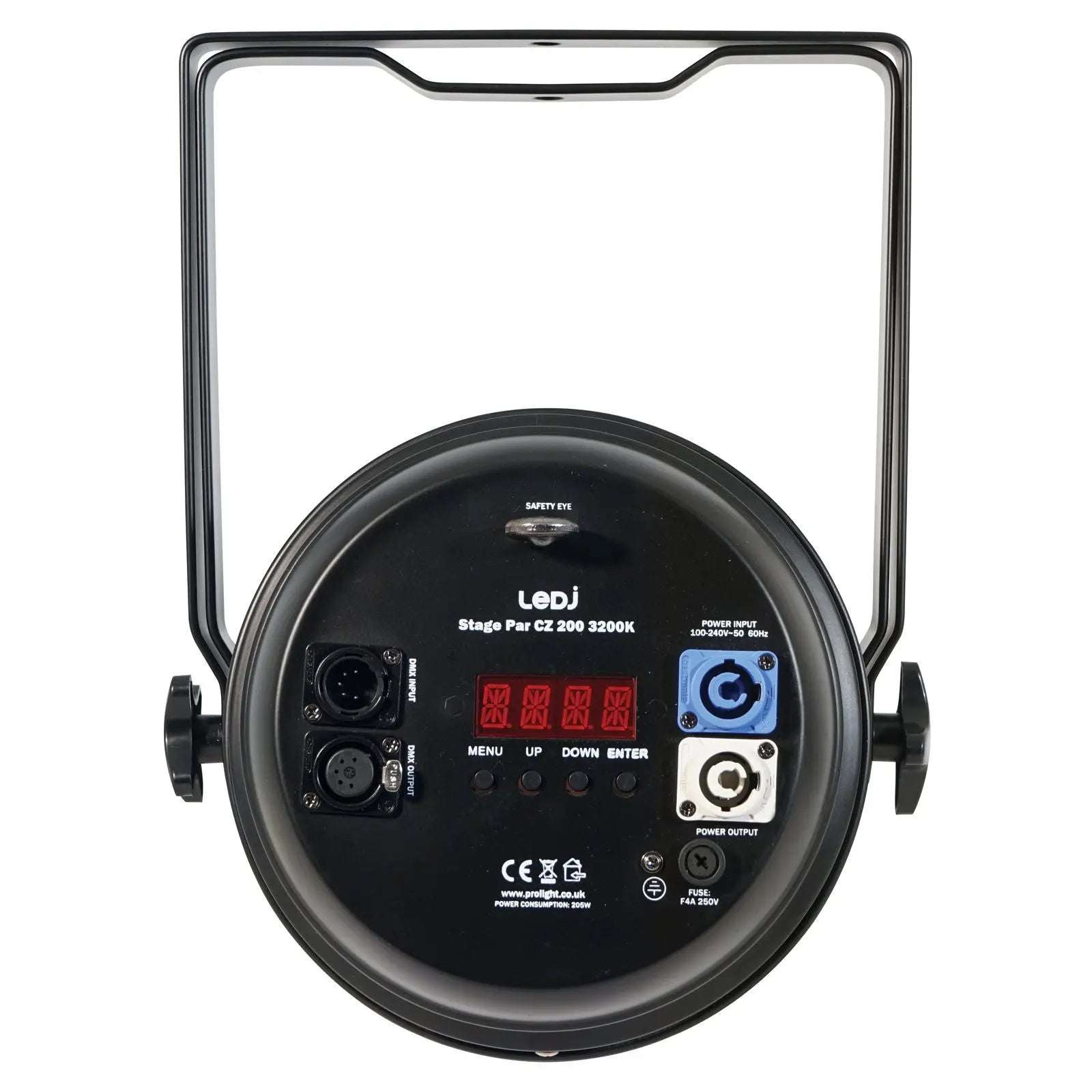 The CZ200 3200K Stage Par is powered by a high output 200W white COB (chip-on-board) LED ideal for stage productions concerts or theatre applications. The motorised zoom allows the beam angle to be adjusted via DMX or manual modes between 13° and 50° and on-board controls offer 4 different dimmer curve options whilst the 5-pin DMX and powerCON input/output allow for easy connections adding to the host of professional features on these fixtures. A gel frame holder is supplied enabling diffusion filters to be fitted. 1 x 200W warm white LED (3200K) Adjustable beam angle: 13°- 50° 13° - 39362 Lux @ 2m 50° - 5877 Lux @ 2m CRI: 95 Refresh rate: 11.8kHz Motorised zoom DMX channels: 2/3 or 5 selectable Manual mode 0 - 100% dimming Variable strobe Supplied with hanging bracket 4 button menu with LED display powerCON input/output 5-Pin XLR input/output Fan cooled Supplied with filter frame
