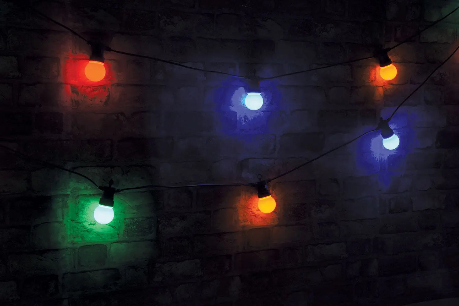 Weatherproof 10 LED festoon lights, great for parties, festivals and summer BBQs. Hang these lights around your marquee or gazebo or light up your walkways and paths to add a little fun to your outdoor lighting scheme. Powered by a low voltage power adaptor via weatherproof rubber cable. Waterproof connectors enable festoons to be connected together for extended runs.