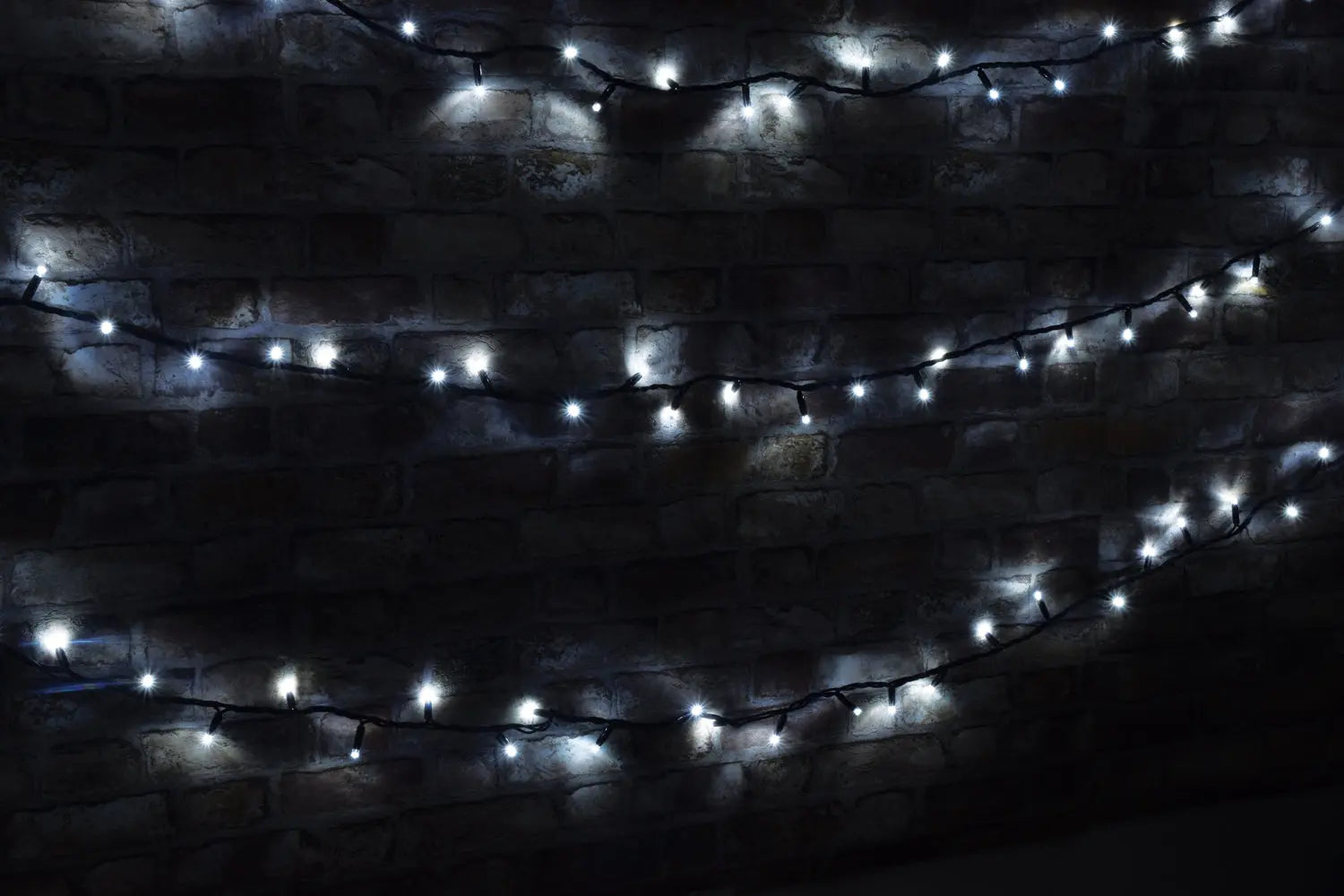 Outdoor LED string lights for the festive season, special events and atmospheric evenings all year round. Up to 50 sets can be connected together and powered from a single plug. The long life, energy efficient LEDs are fitted with concave heads for consistent and uniform brightness at all angles. Ideal for indoor and outdoor use.