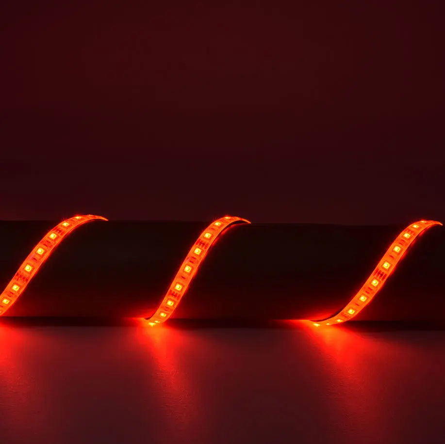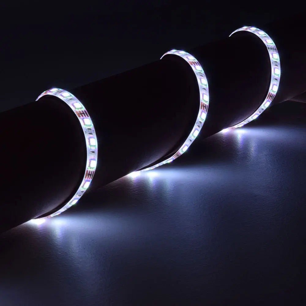 Super-bright IP65 rated RGB LED tape which when connected to a controller can produce any colour of the rainbow. Supplied on 5m reel with an adhesive back this tape is easy to setup and quick to install. Its low voltage supply and low power consumption makes it suitable for a wide variety of applications from homes to vehicles and from shops to bars and nightclubs. The LEDs will last up to 50,000 hours and are covered with an epoxy coating to protect the tape from general wear and tear as well as being water resistant, making cleaning an easy task.