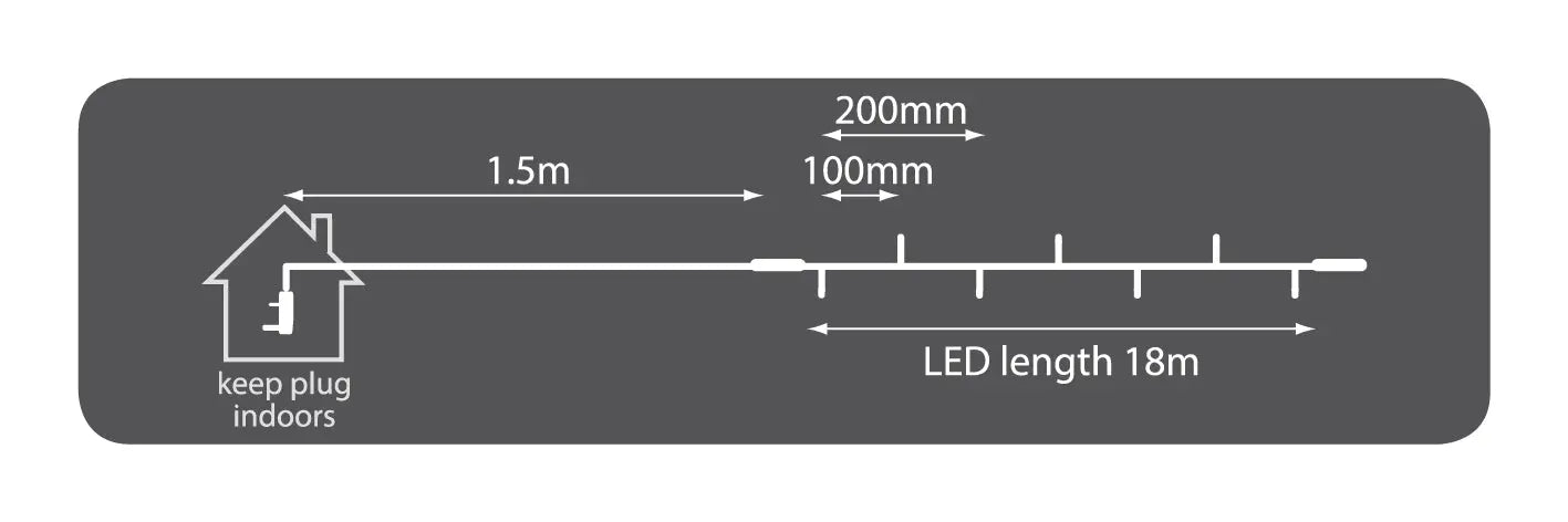 High quality outdoor LED string lights with heavy duty black cable. You may extend the cable from the mains power supply by using our 5m power extension lead. The high quality LEDs have a long lifespan and are energy efficient making them ideal for decorating homes, shops etc.