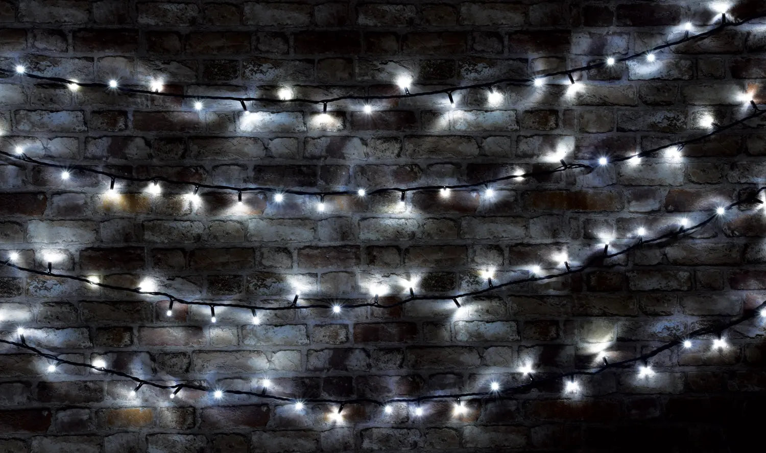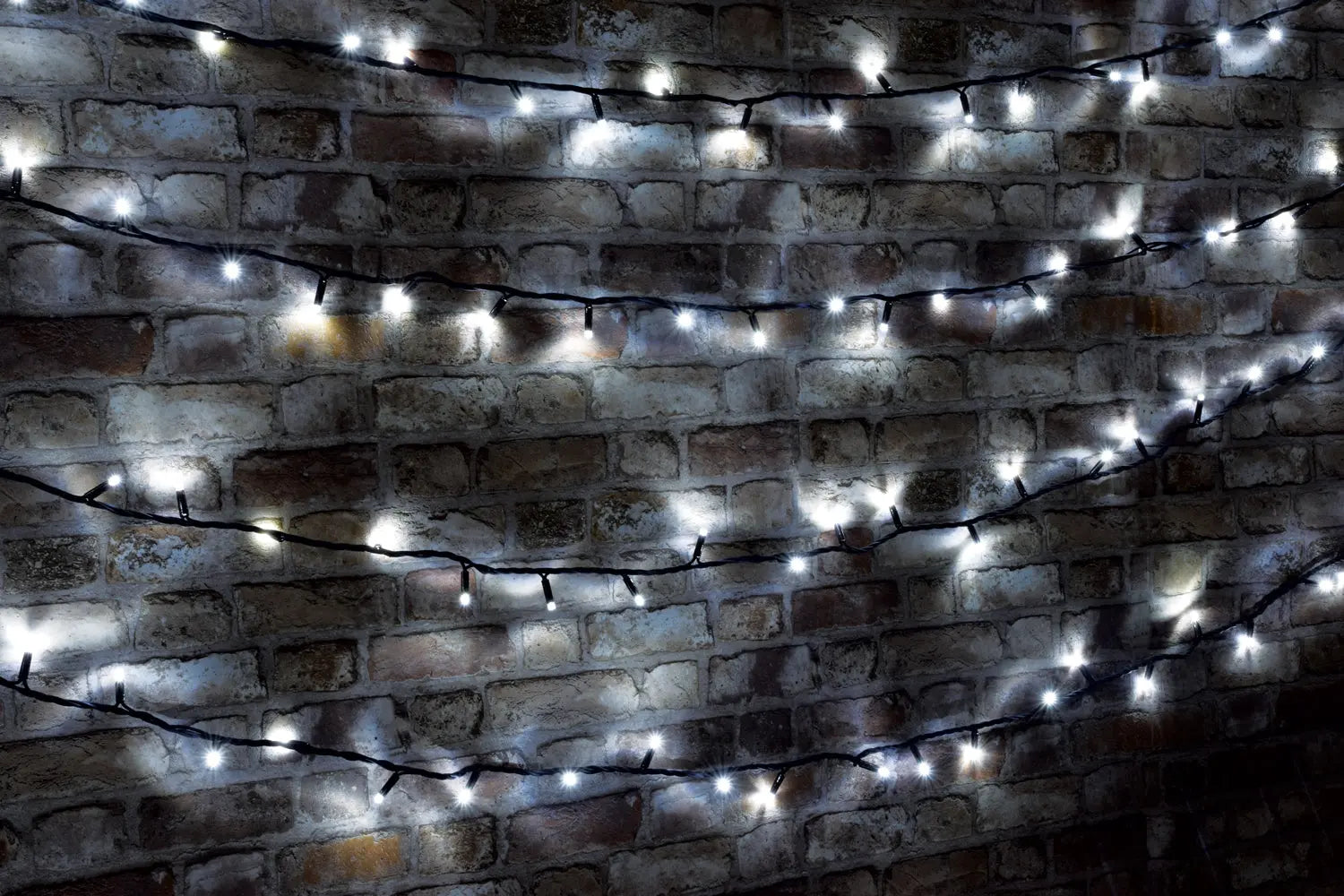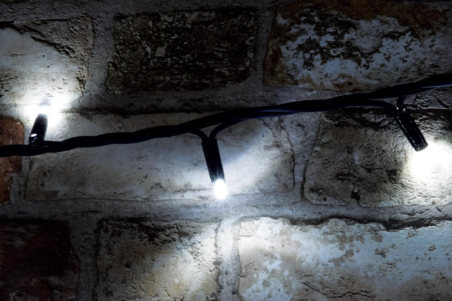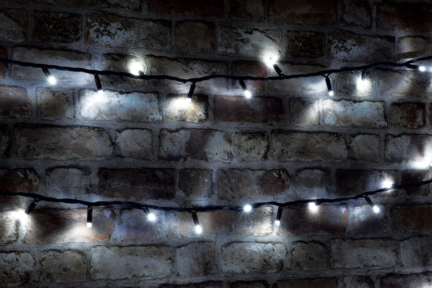 High quality outdoor LED string lights with heavy duty black cable. You may extend the cable from the mains power supply by using our 5m power extension lead. The high quality LEDs have a long lifespan and are energy efficient making them ideal for decorating homes, shops etc.