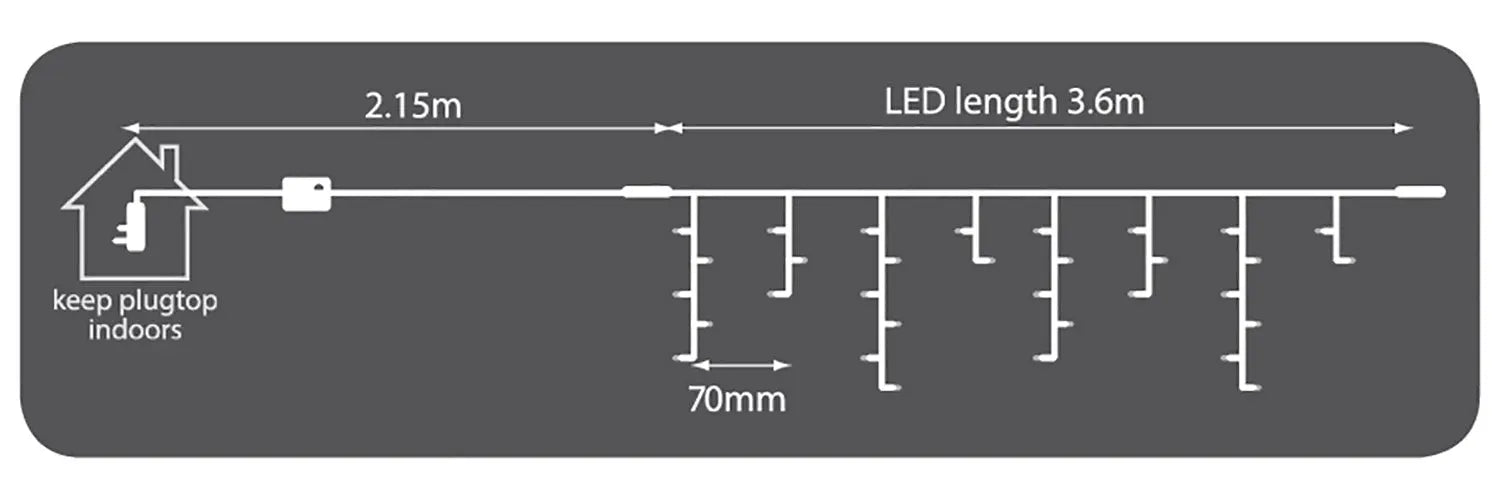 Versatile, icicle-inspired outdoor LED string lights for the festive season, special events and atmospheric evenings all year round. These high-quality lights can be tailored to numerous decorative requirements, with 8 static or sequenced programmes, selectable via the inline controller. The long life, energy efficient LEDs are fitted with concave heads for consistent and uniform brightness at all angles. Ideal for indoor and outdoor use.