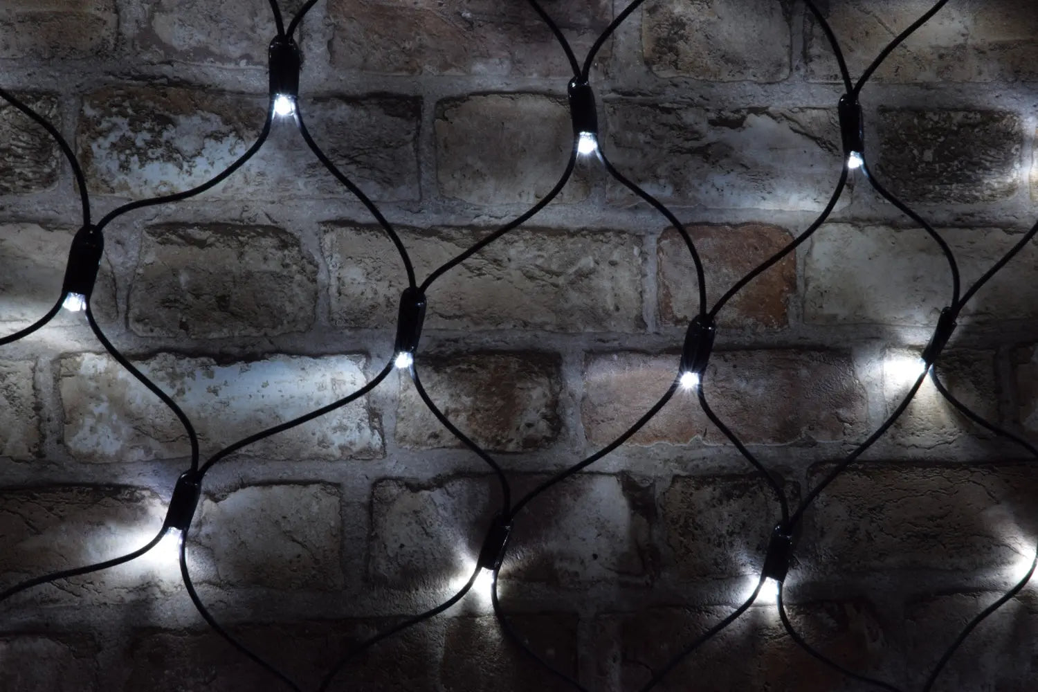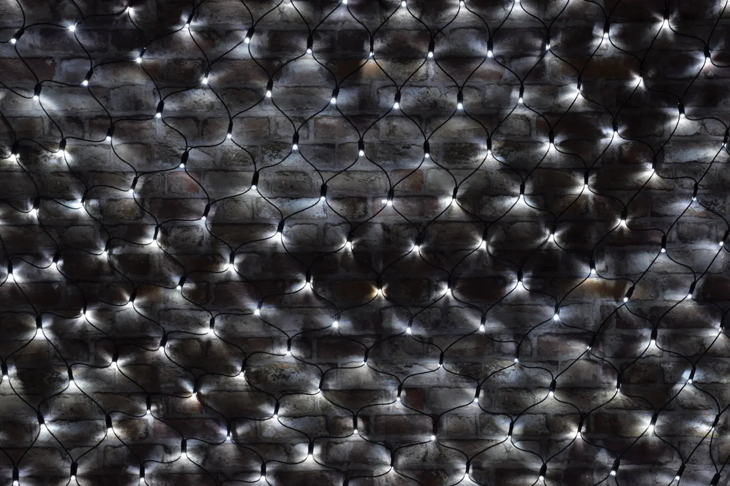 Heavy duty outdoor LED net lights with 8 pre-programmed sequences, ideal for decorating windows, trees and hedges, indoor or outdoor decoration at events, around the home, or for Christmas. The high quality LEDs have a long lifespan and are energy efficient. The net lights are terminated with a male connector, which allows the lights to be extended up to 7 sets from one mains plug.