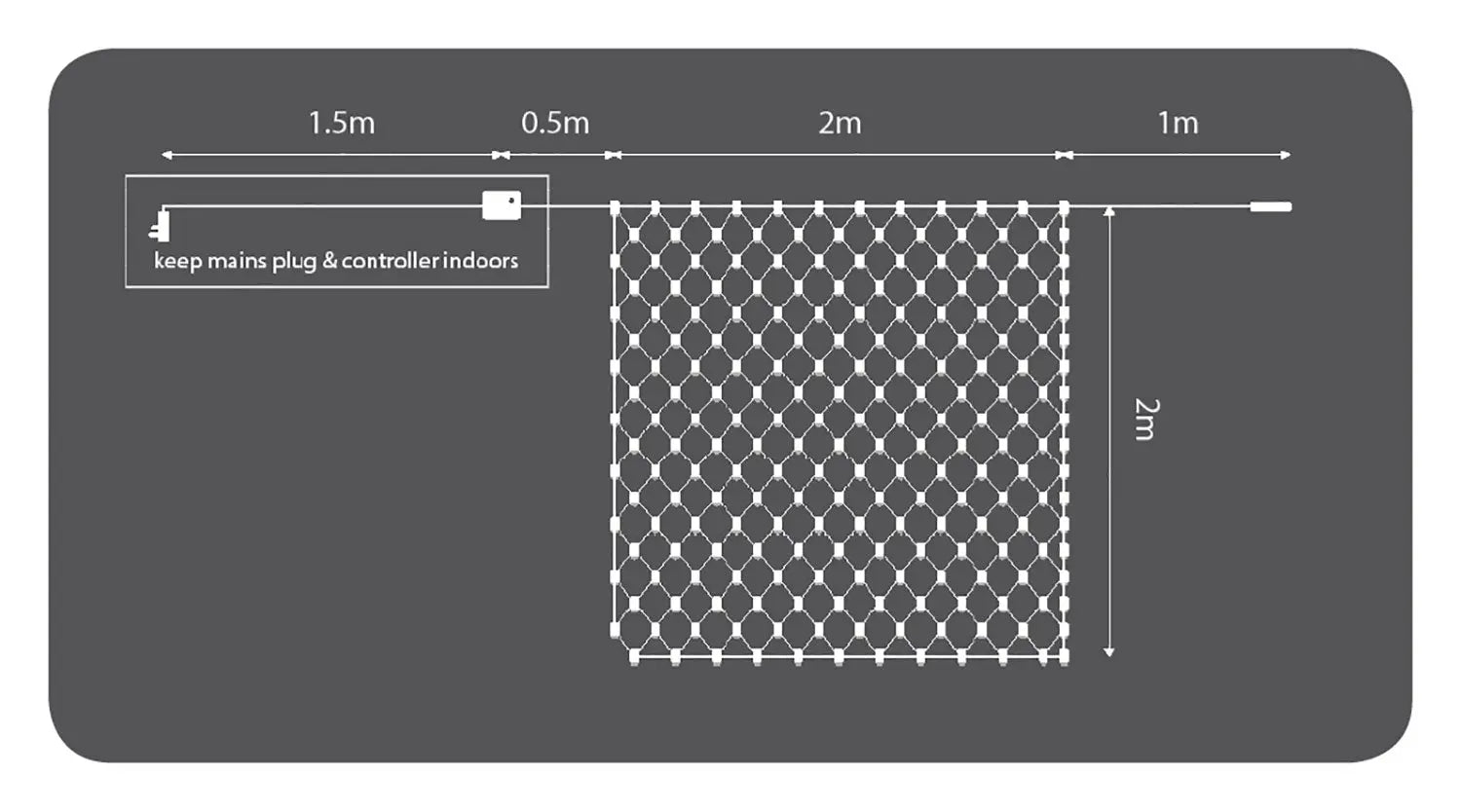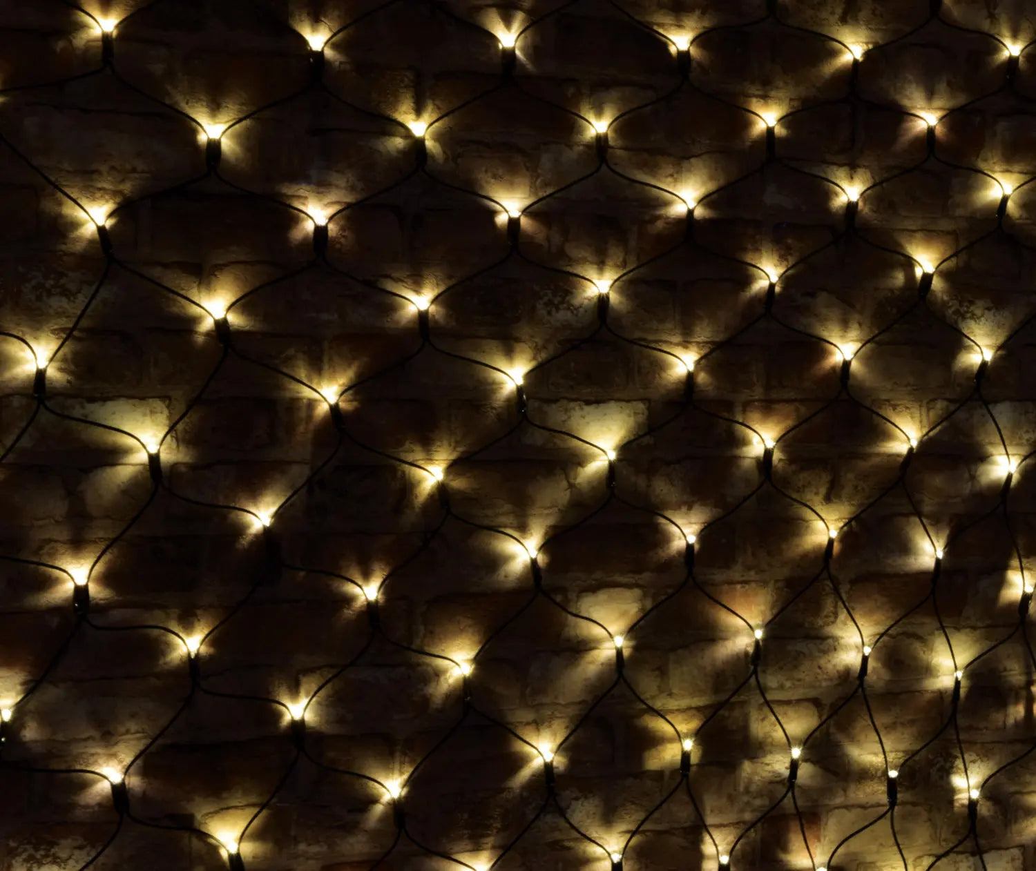 Heavy duty outdoor LED net lights with 8 pre-programmed sequences, ideal for decorating windows, trees and hedges, indoor or outdoor decoration at events, around the home, or for Christmas. The high quality LEDs have a long lifespan and are energy efficient. The net lights are terminated with a male connector, which allows the lights to be extended up to 7 sets from one mains plug.