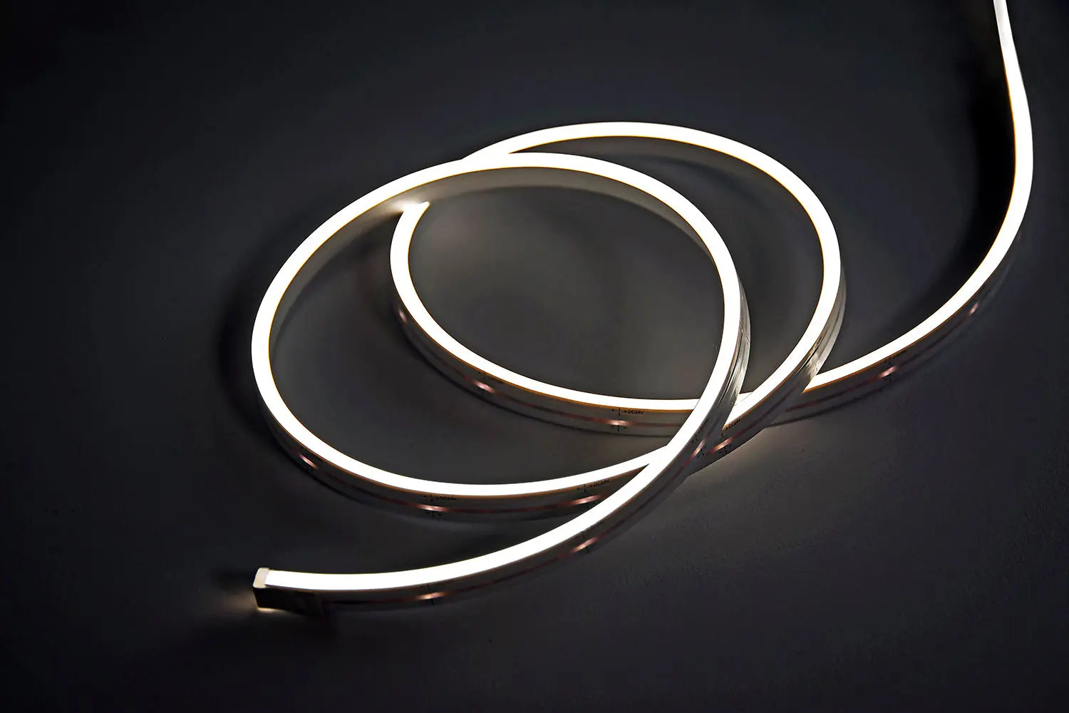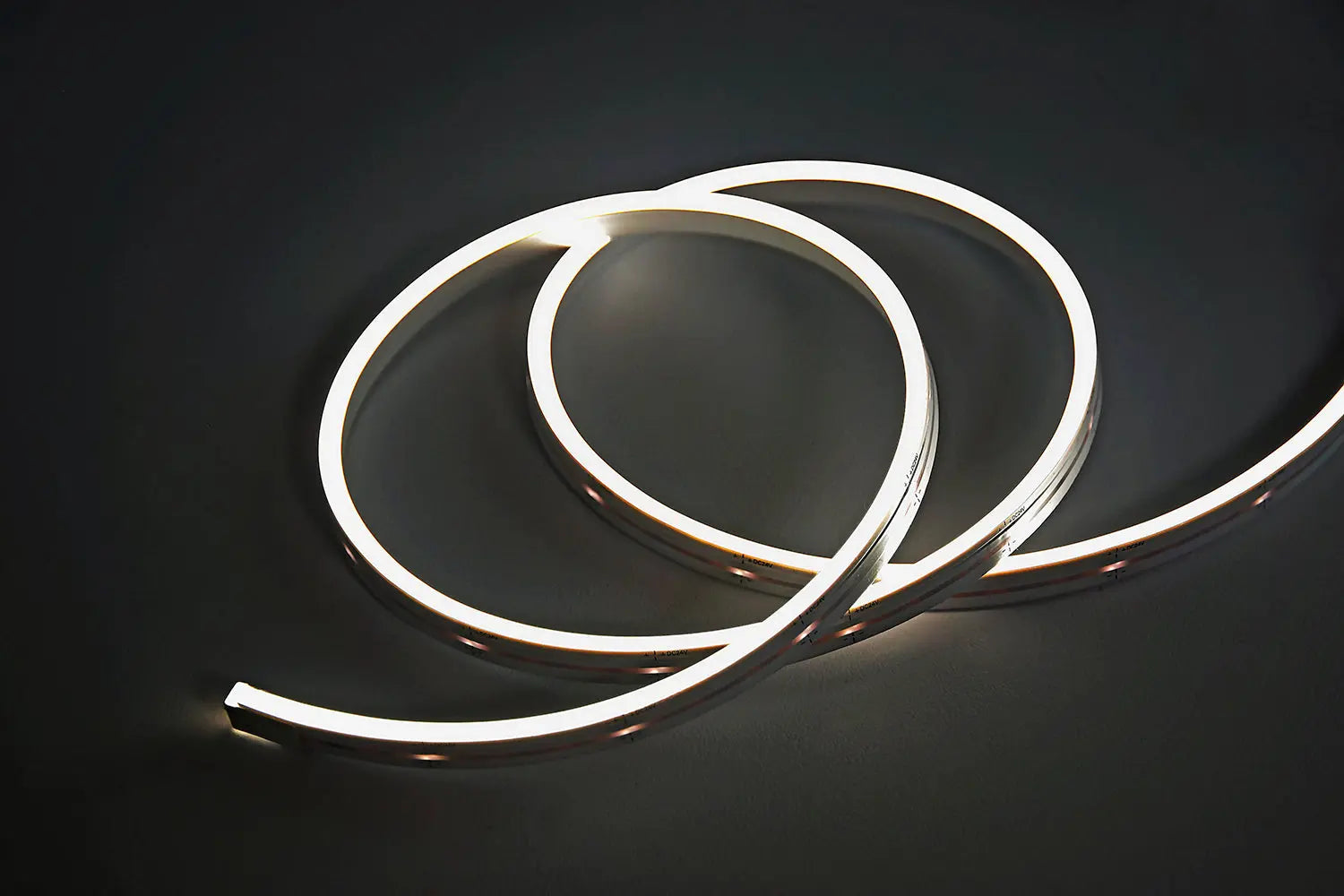 30m of unique tape that is 4mm wide and 8mm tall - designed to bend more easily than traditional LED tape and features a frosted extrusion surface to give a seamless smooth look without the need for a profile. Available in Warm White, Natural White and Cool White, this IP66 rated tape has multiple applications in home and commercial applications. Simply cut to the required length, attach DC cabling and then seal with end caps.